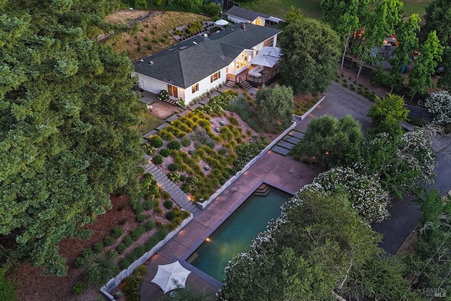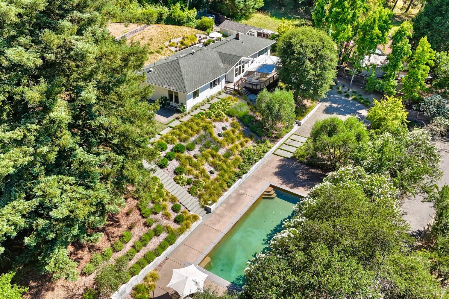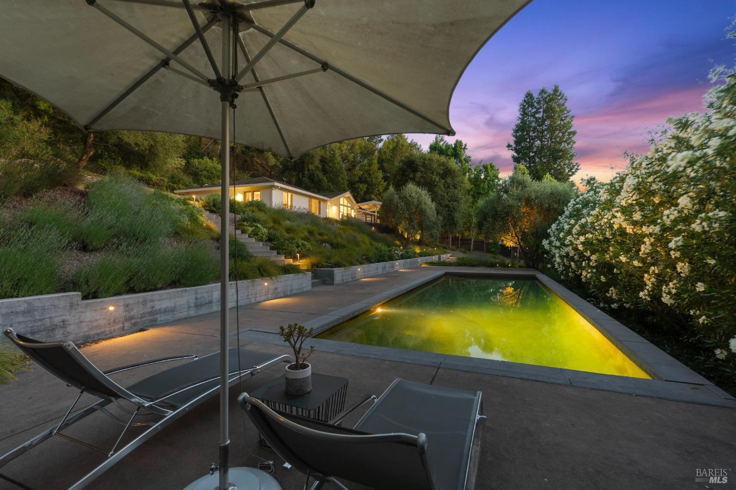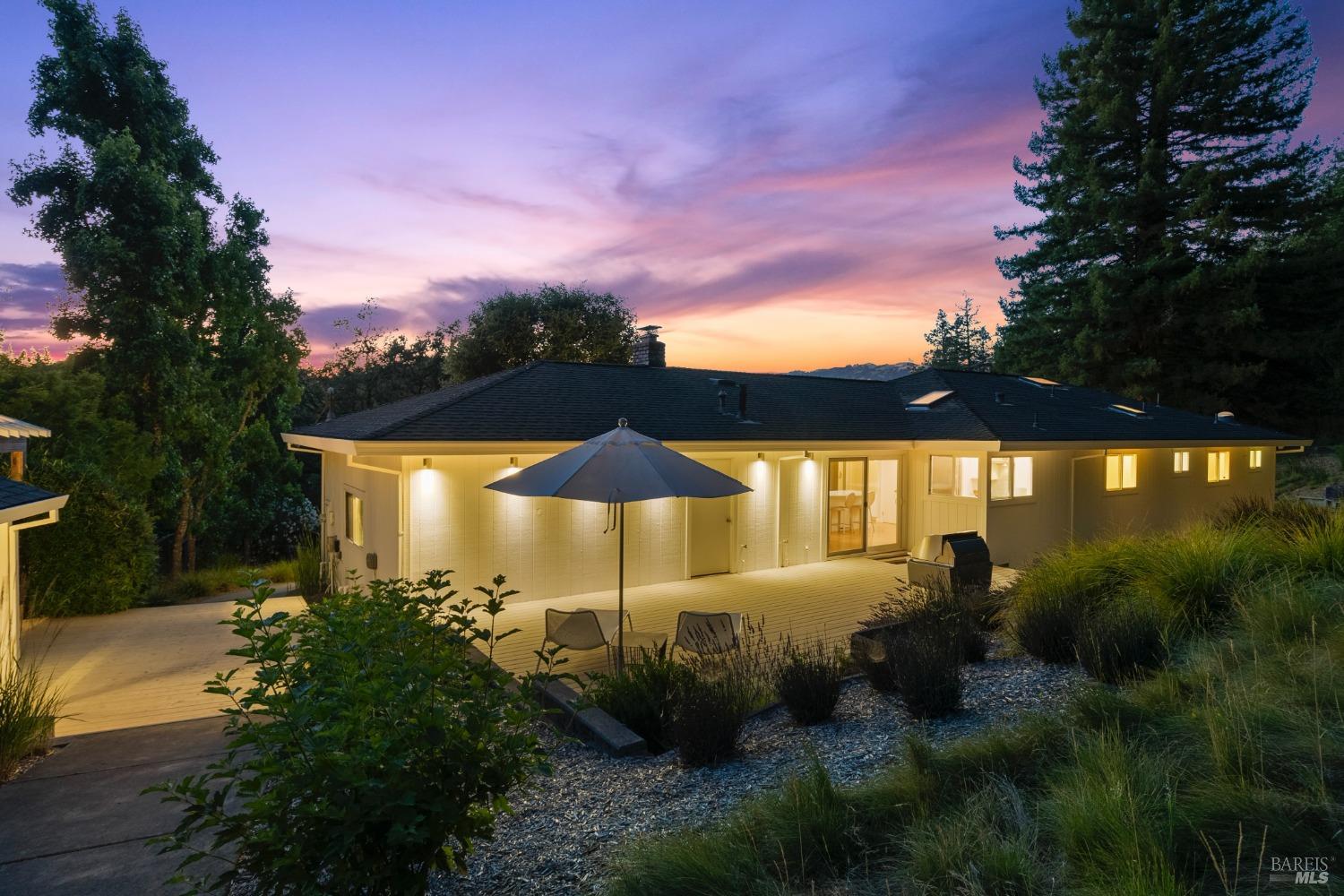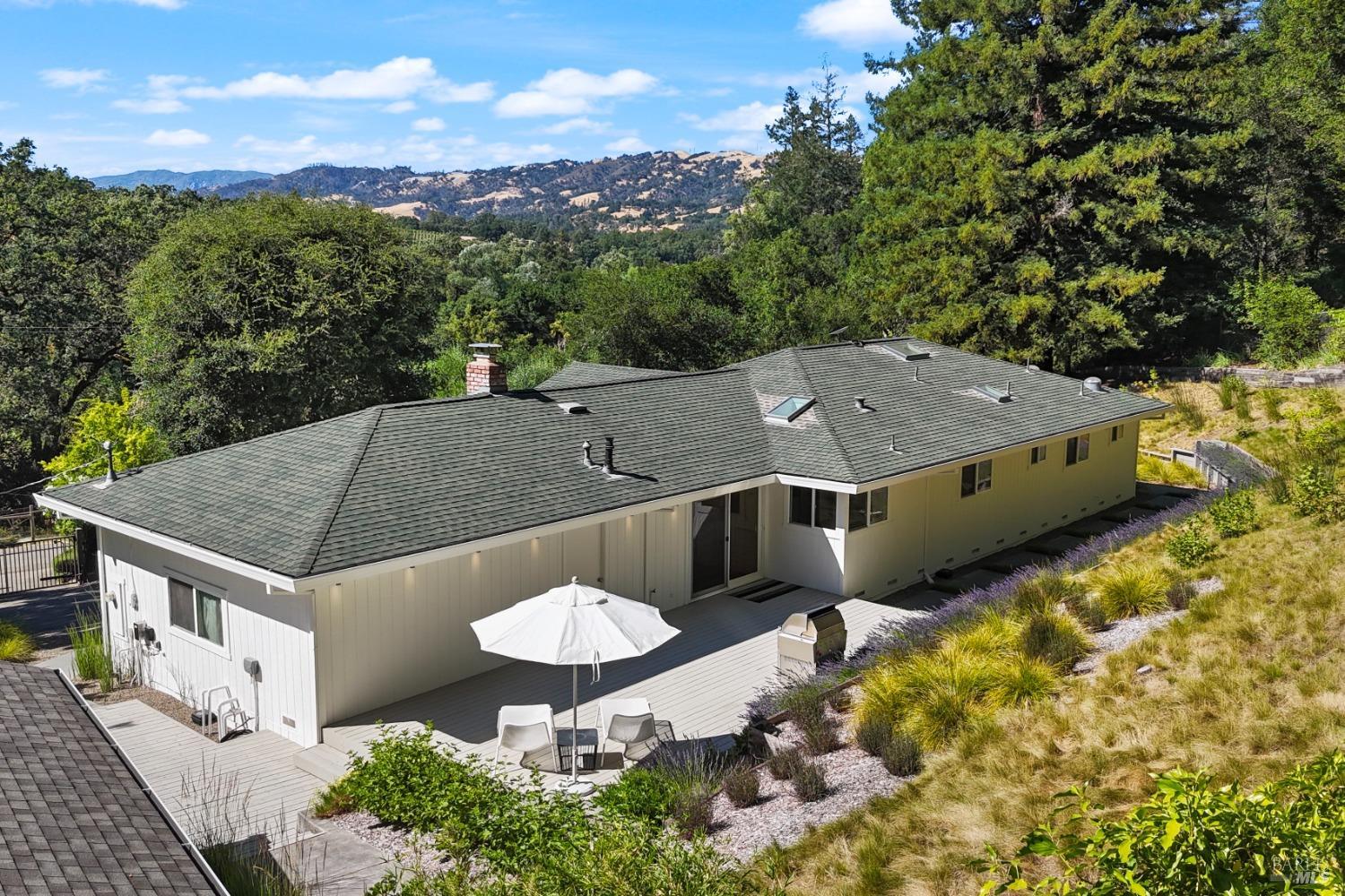 Immerse yourself in the wine country lifestyle with this fabulous, updated single-level abode nestled on over 4 acres. Enjoy tranquil privacy and modern conveniences in the light-filled, open concept home. Savor lovely views of the Mayacamas Mountains and the luxurious swimming pool from the living room. The gourmet kitchen is equipped with a Subzero refrigerator, Thermador cooktop and Miele ovens, making every meal a pleasure to prepare. Unwind in the family room with its inviting wood-burning fireplace and French doors that open to two decks, seamlessly blending indoor and outdoor living. Explore the beautifully landscaped yard with its winding pathways, or cool off with a refreshing swim on a warm summer day, followed by an outdoor shower. The detached bonus space with a full bathroom is ideal for a guest suite, home office, gym or creative studio (included in total square footage). Imagine driving through the picturesque Alexander Valley, with its vineyards and gorgeous vistas, on your way to or from this property. Visit nearby wineries and take in the energetic vibe of the Healdsburg Plaza with its specialty shops and fine dining, then return to your peaceful resort-like property. Whether your primary residence or second home, don't miss out on this exceptional opportunity!