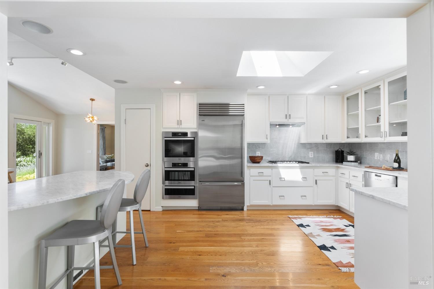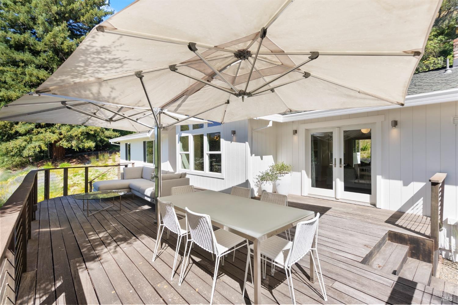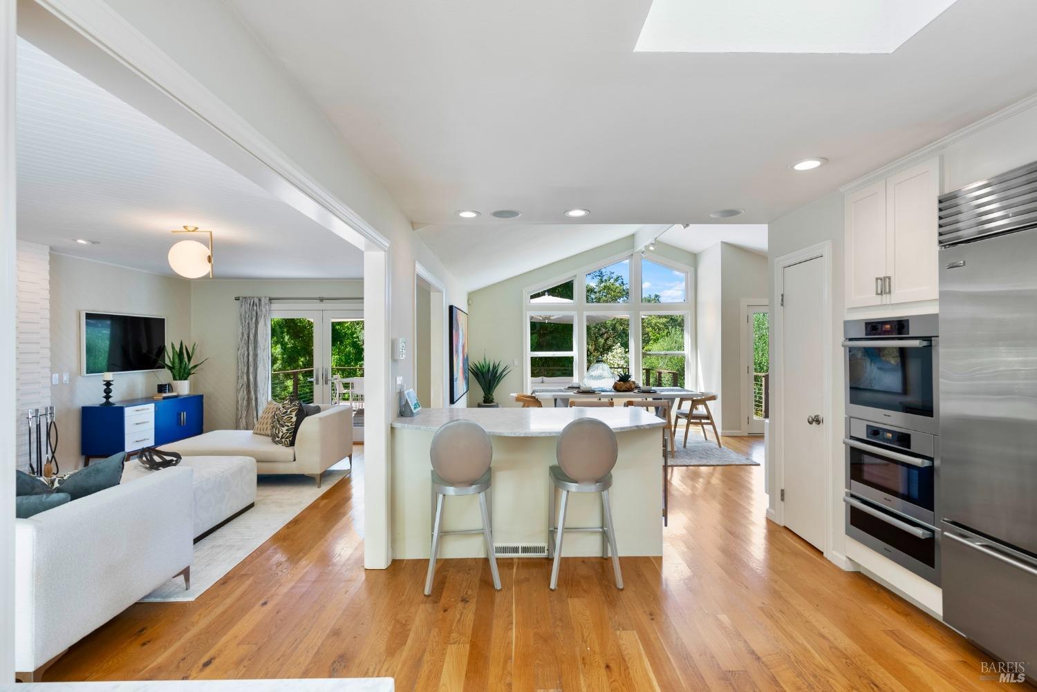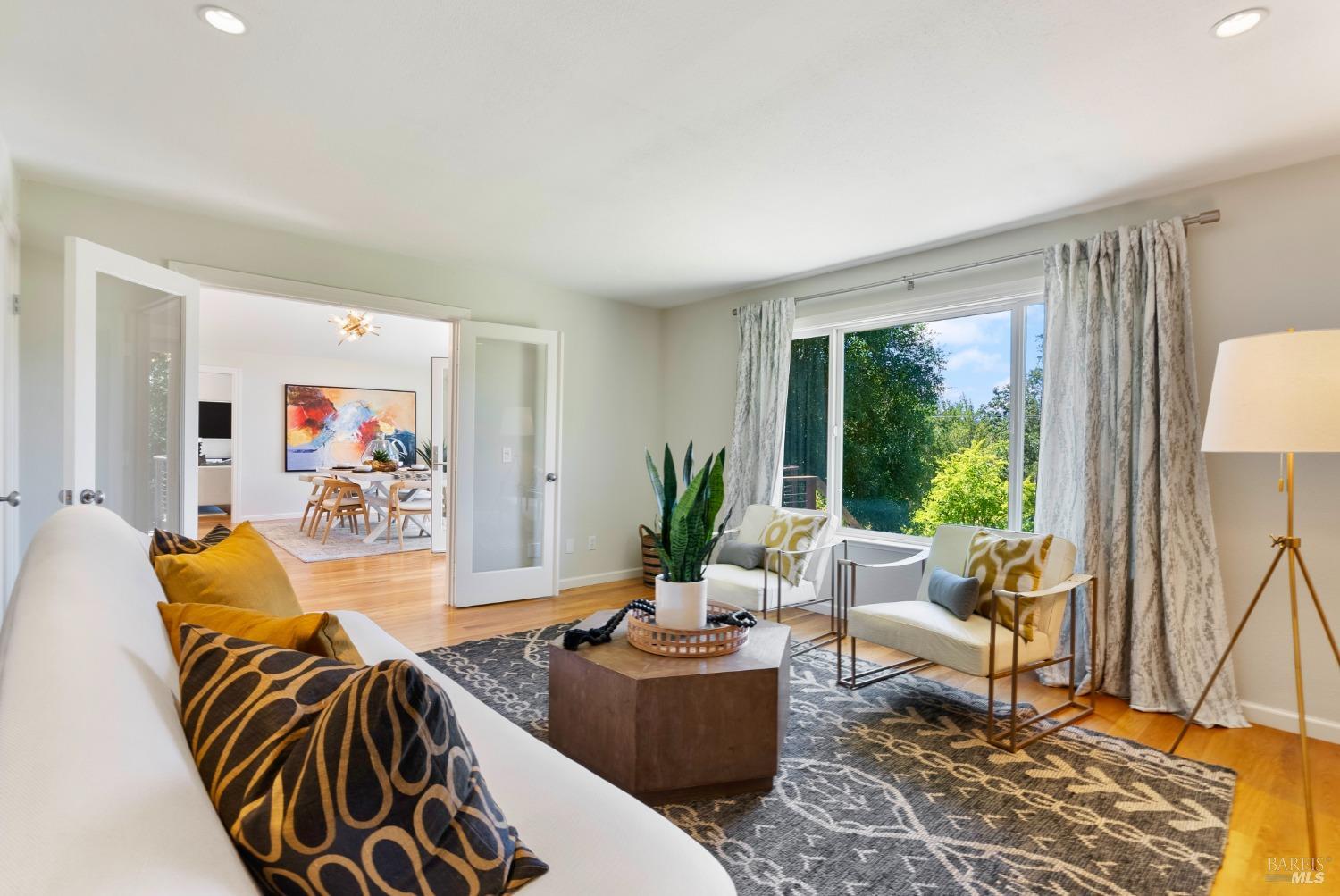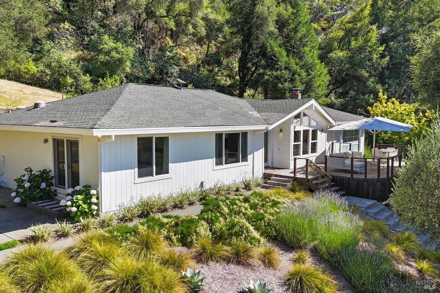 Immerse yourself in the wine country lifestyle with this fabulous, updated single-level abode nestled on over 4 acres. Enjoy tranquil privacy and modern conveniences in the light-filled, open concept home. Savor lovely views of the Mayacamas Mountains and the luxurious swimming pool from the living room. The gourmet kitchen is equipped with a Subzero refrigerator, Thermador cooktop and Miele ovens, making every meal a pleasure to prepare. Unwind in the family room with its inviting wood-burning fireplace and French doors that open to two decks, seamlessly blending indoor and outdoor living. Explore the beautifully landscaped yard with its winding pathways, or cool off with a refreshing swim on a warm summer day, followed by an outdoor shower. The detached bonus space with a full bathroom is ideal for a guest suite, home office, gym or creative studio (included in total square footage). Imagine driving through the picturesque Alexander Valley, with its vineyards and gorgeous vistas, on your way to or from this property. Visit nearby wineries and take in the energetic vibe of the Healdsburg Plaza with its specialty shops and fine dining, then return to your peaceful resort-like property. Whether your primary residence or second home, don't miss out on this exceptional opportunity!