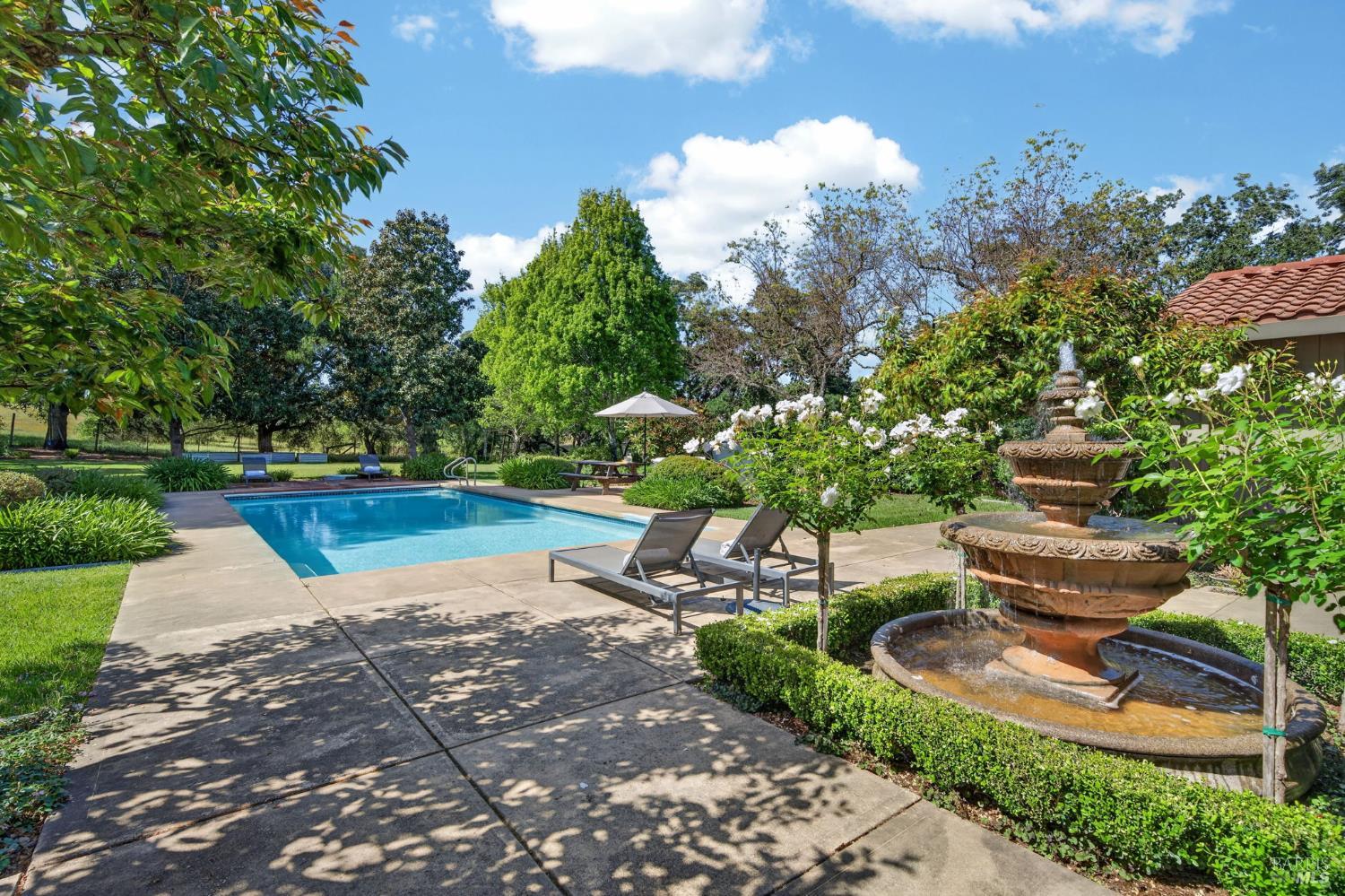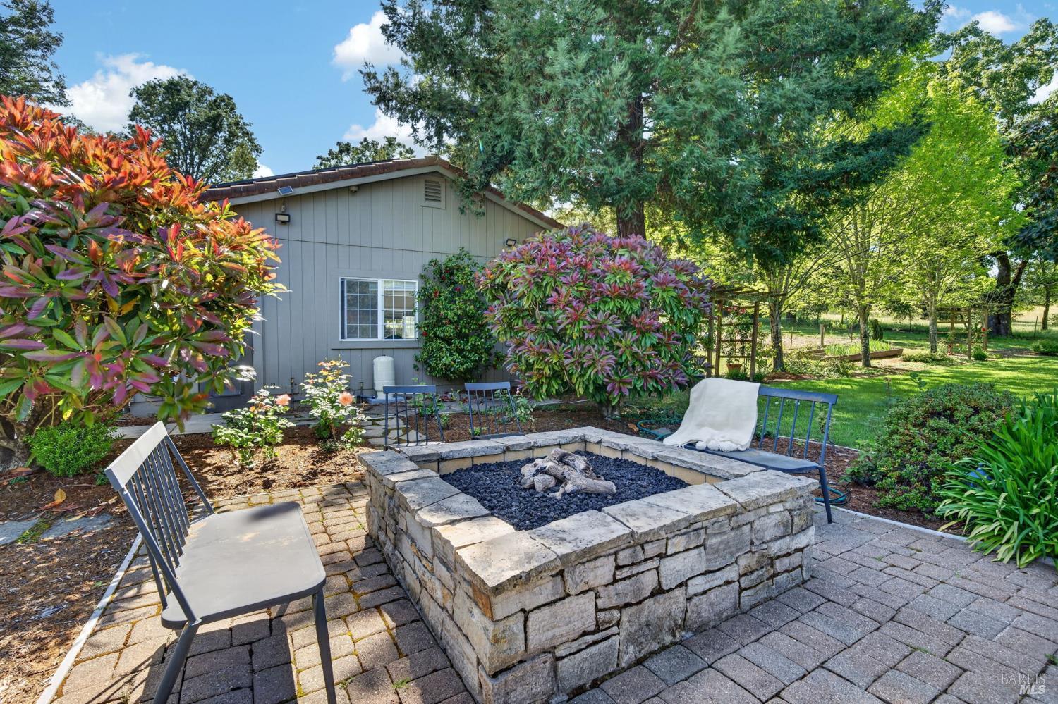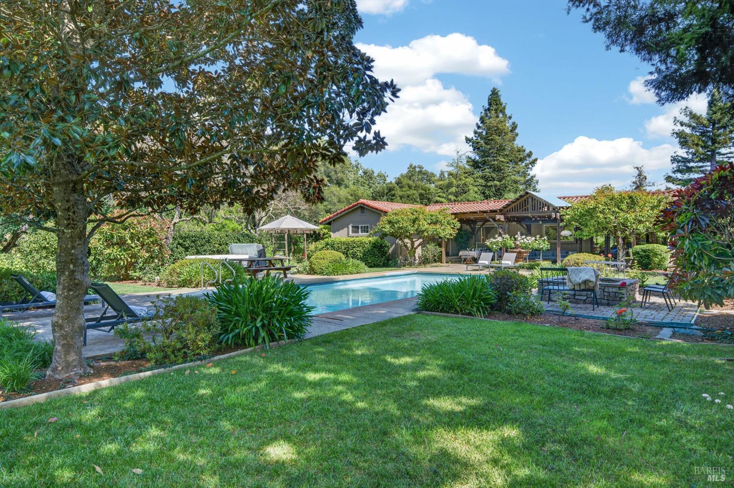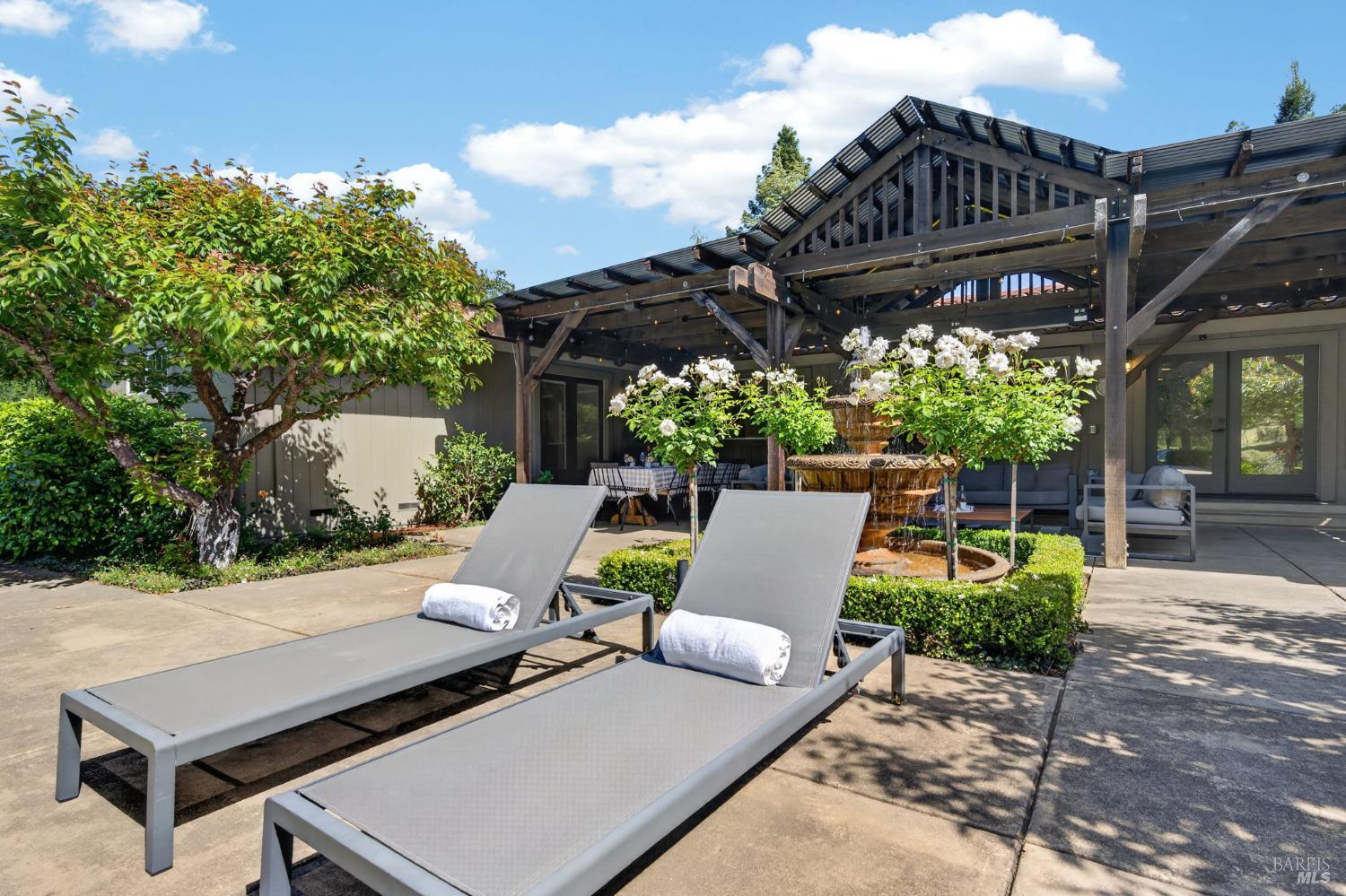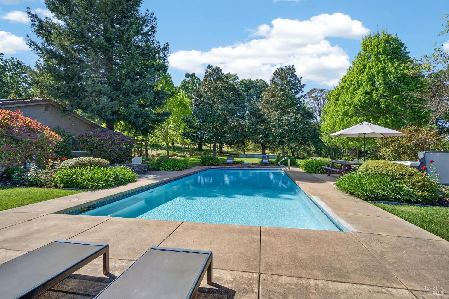 Welcome to Healdsburg! A sprawling single-level home set on 1.4 acres in Healdsburg's coveted Vintage Hills neighborhood. Perfectly marrying the charm of country living with the convenience of city services, all tucked away on a peaceful lane that embodies the best of Wine Country living. This property is as practical as it is beautiful, offering exceptional energy efficiency with an owned solar system and a brand-new 40-gallon-per-minute well, keeping utility costs impressively low. Step inside and discover warm hardwood floors that lead you through the home's thoughtful layout. At its heart, you'll find the formal living room with a cozy gas fireplace and chef's kitchen ideal for entertaining. All 5 bedrooms are privately situated on the east side of the home, with the primary bedroom in the rear and opening to the backyard. The family room, rec room, office, and laundry are on the west wing of the home, also opening to the backyard, creating a harmonious indoor-outdoor flow. Step outside to your resort-like grounds. Gather with family and friends on your covered patio with cooling misters for hot days and ceiling heaters for chilly evenings. Spend your days lounging by the pool, and nights stargazing in the hot tub or circling around the fire pit. A ton of room for recreation with a huge lawn & a driveway spacious enough to set up a pickleball court. The east side of the property borders a seasonal creek and offers the beginning of an abundant homestead, with a chicken coop and an orchard of over 50 fruit trees. Additionally, there is a detached 4-car garage with an overhead door leading to the backyard. All of this and just a short 7-minute drive to the Healdsburg Plaza and 1 hour to the Golden Gate. This is an ideal property for full-time residences or a Wine Country retreat.