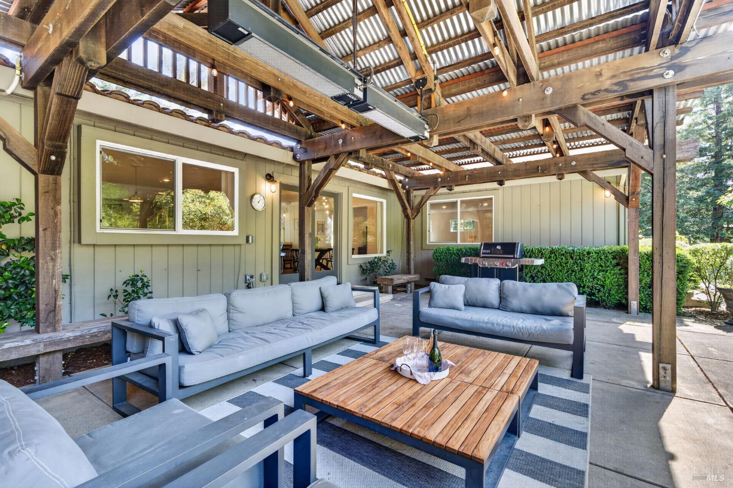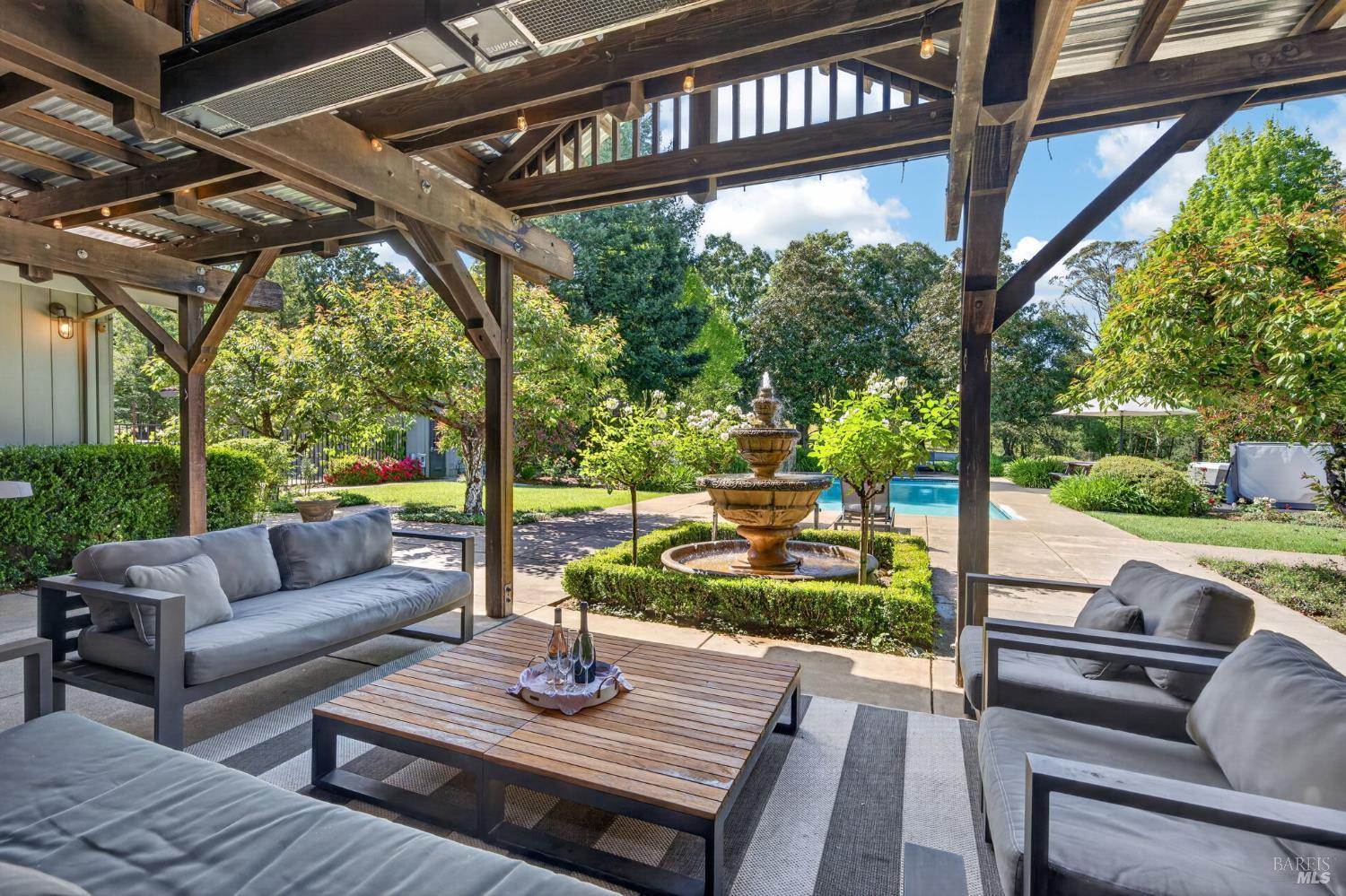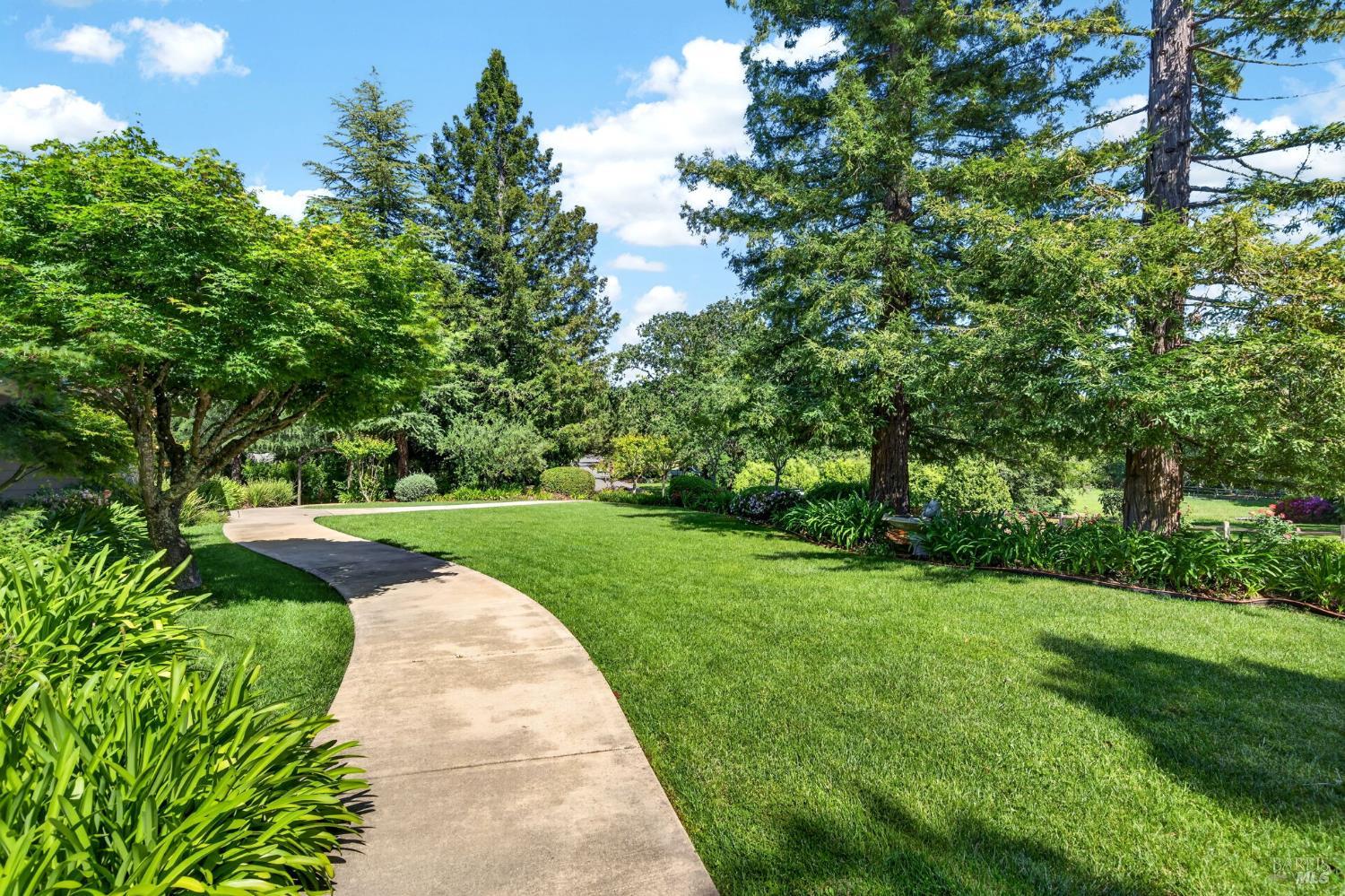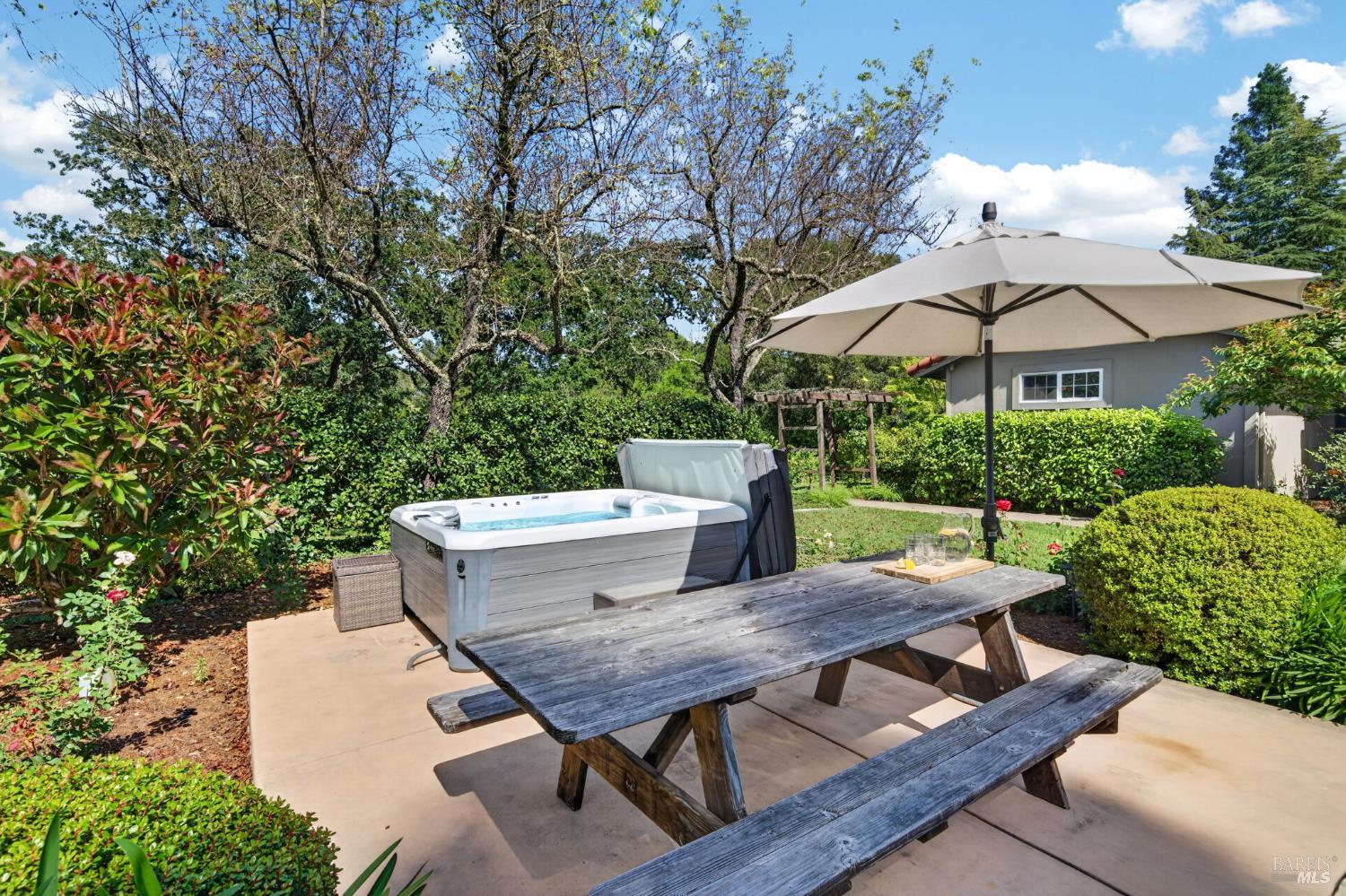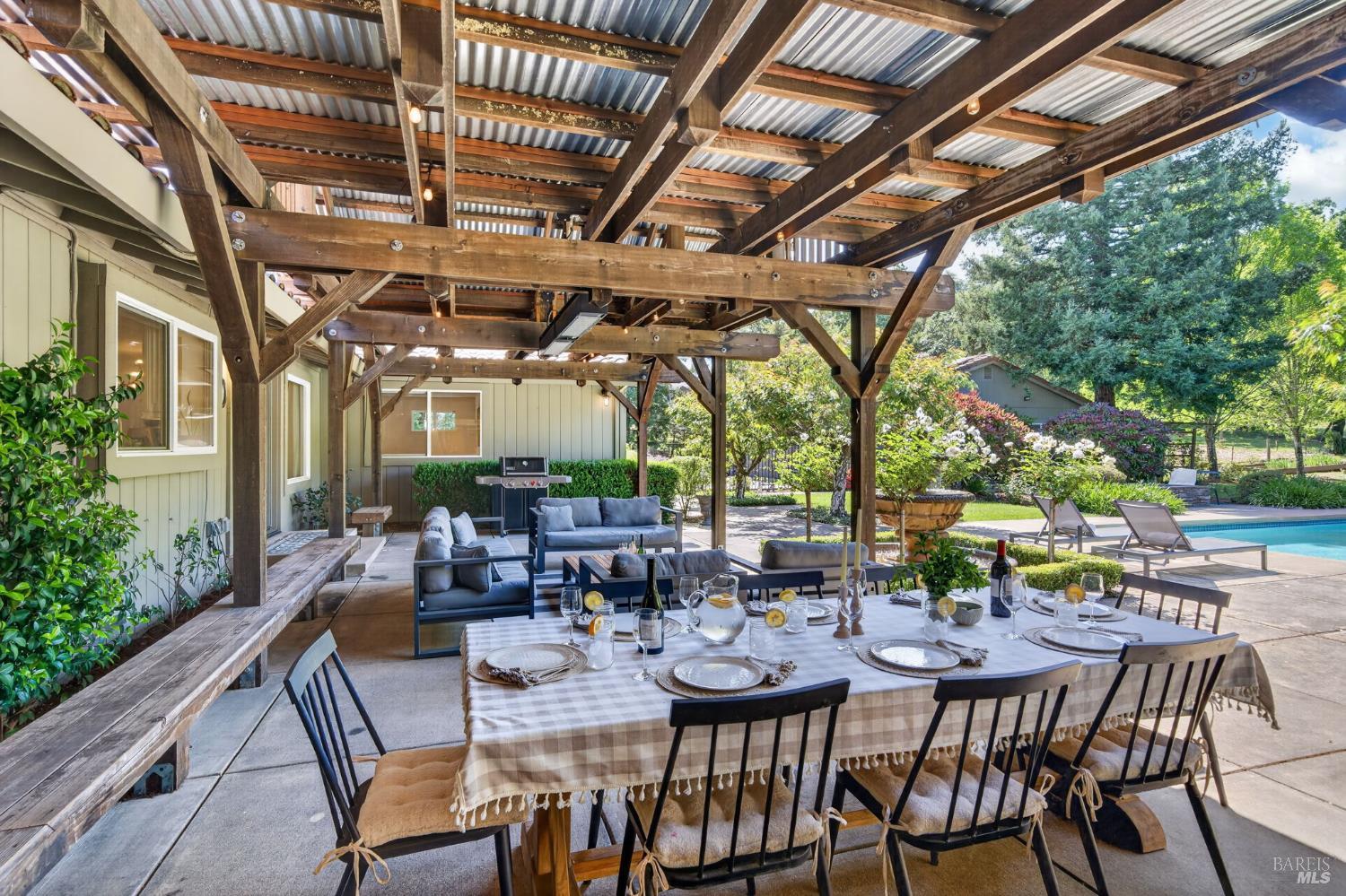 Welcome to Healdsburg! A sprawling single-level home set on 1.4 acres in Healdsburg's coveted Vintage Hills neighborhood. Perfectly marrying the charm of country living with the convenience of city services, all tucked away on a peaceful lane that embodies the best of Wine Country living. This property is as practical as it is beautiful, offering exceptional energy efficiency with an owned solar system and a brand-new 40-gallon-per-minute well, keeping utility costs impressively low. Step inside and discover warm hardwood floors that lead you through the home's thoughtful layout. At its heart, you'll find the formal living room with a cozy gas fireplace and chef's kitchen ideal for entertaining. All 5 bedrooms are privately situated on the east side of the home, with the primary bedroom in the rear and opening to the backyard. The family room, rec room, office, and laundry are on the west wing of the home, also opening to the backyard, creating a harmonious indoor-outdoor flow. Step outside to your resort-like grounds. Gather with family and friends on your covered patio with cooling misters for hot days and ceiling heaters for chilly evenings. Spend your days lounging by the pool, and nights stargazing in the hot tub or circling around the fire pit. A ton of room for recreation with a huge lawn & a driveway spacious enough to set up a pickleball court. The east side of the property borders a seasonal creek and offers the beginning of an abundant homestead, with a chicken coop and an orchard of over 50 fruit trees. Additionally, there is a detached 4-car garage with an overhead door leading to the backyard. All of this and just a short 7-minute drive to the Healdsburg Plaza and 1 hour to the Golden Gate. This is an ideal property for full-time residences or a Wine Country retreat.