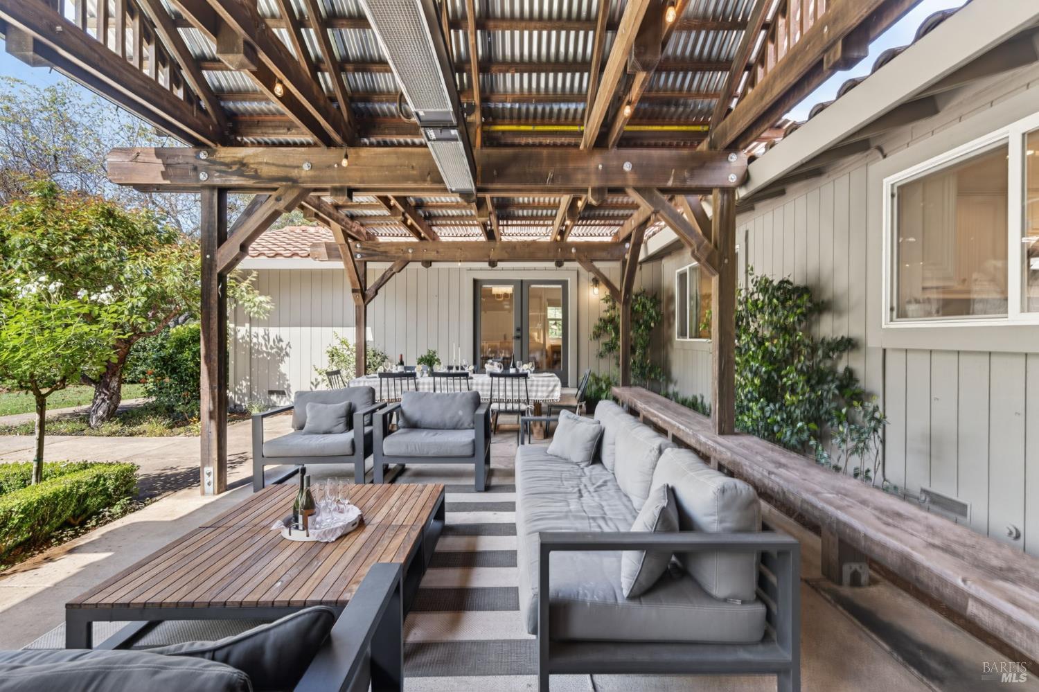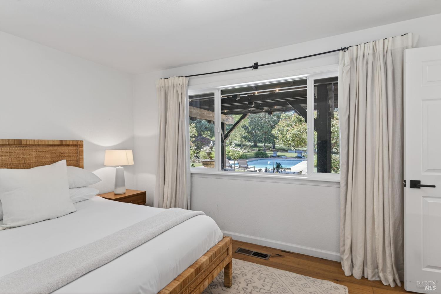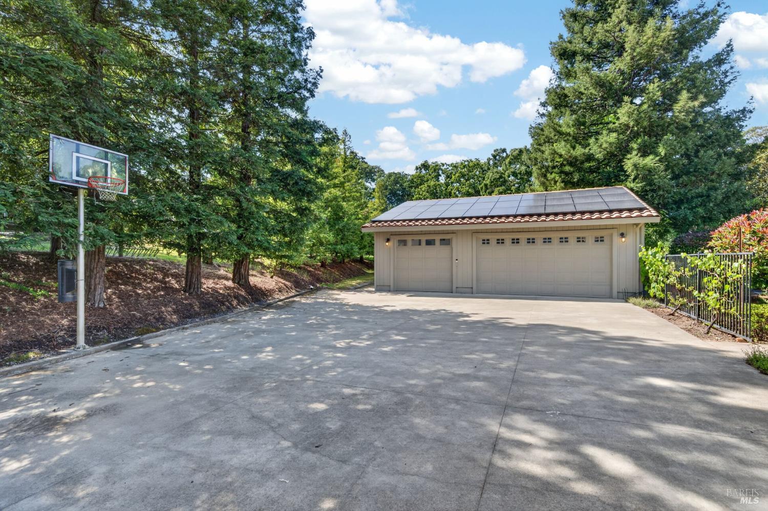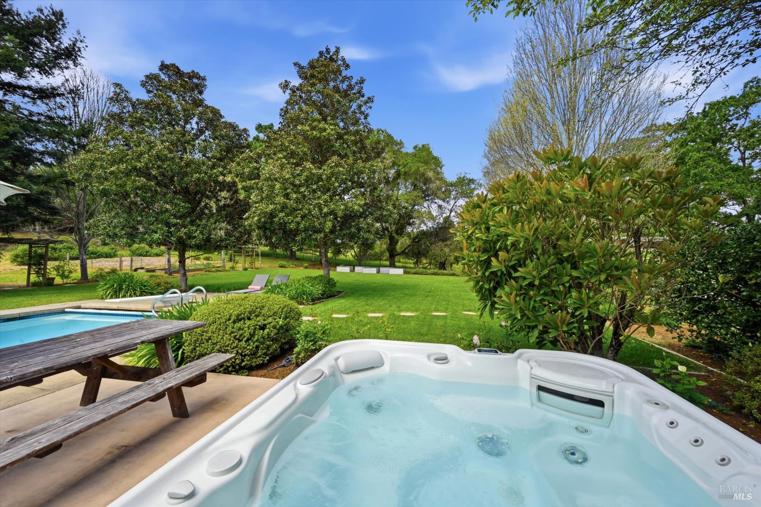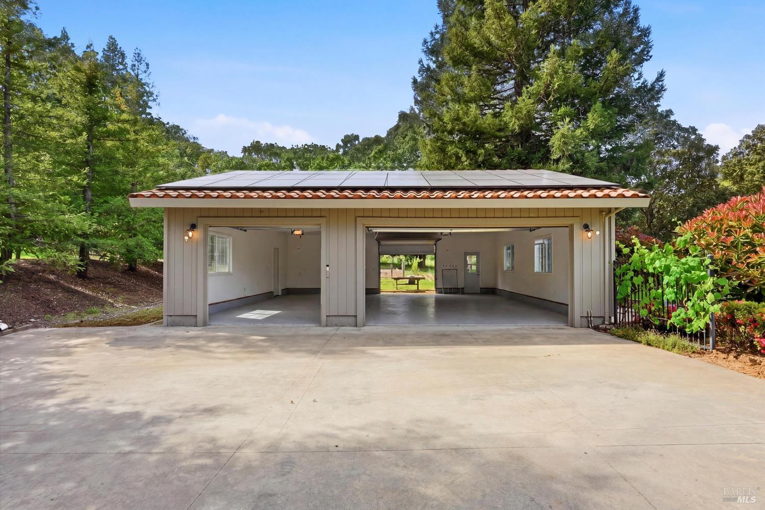 Welcome to Healdsburg! A sprawling single-level home set on 1.4 acres in Healdsburg's coveted Vintage Hills neighborhood. Perfectly marrying the charm of country living with the convenience of city services, all tucked away on a peaceful lane that embodies the best of Wine Country living. This property is as practical as it is beautiful, offering exceptional energy efficiency with an owned solar system and a brand-new 40-gallon-per-minute well, keeping utility costs impressively low. Step inside and discover warm hardwood floors that lead you through the home's thoughtful layout. At its heart, you'll find the formal living room with a cozy gas fireplace and chef's kitchen ideal for entertaining. All 5 bedrooms are privately situated on the east side of the home, with the primary bedroom in the rear and opening to the backyard. The family room, rec room, office, and laundry are on the west wing of the home, also opening to the backyard, creating a harmonious indoor-outdoor flow. Step outside to your resort-like grounds. Gather with family and friends on your covered patio with cooling misters for hot days and ceiling heaters for chilly evenings. Spend your days lounging by the pool, and nights stargazing in the hot tub or circling around the fire pit. A ton of room for recreation with a huge lawn & a driveway spacious enough to set up a pickleball court. The east side of the property borders a seasonal creek and offers the beginning of an abundant homestead, with a chicken coop and an orchard of over 50 fruit trees. Additionally, there is a detached 4-car garage with an overhead door leading to the backyard. All of this and just a short 7-minute drive to the Healdsburg Plaza and 1 hour to the Golden Gate. This is an ideal property for full-time residences or a Wine Country retreat.