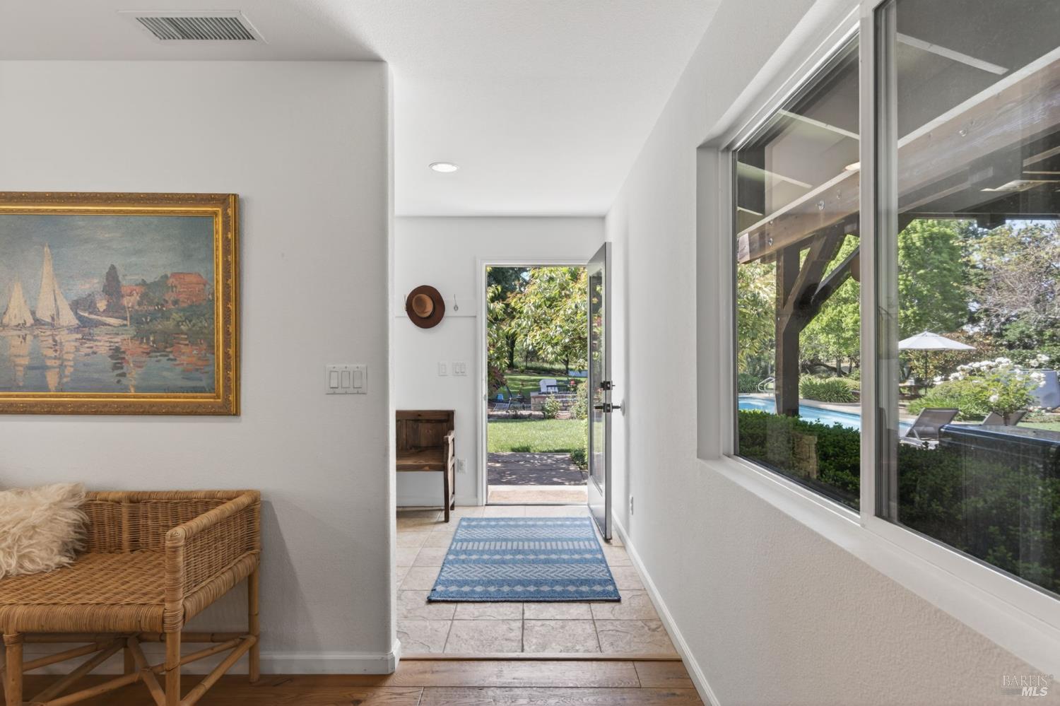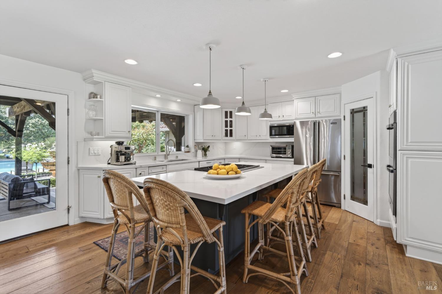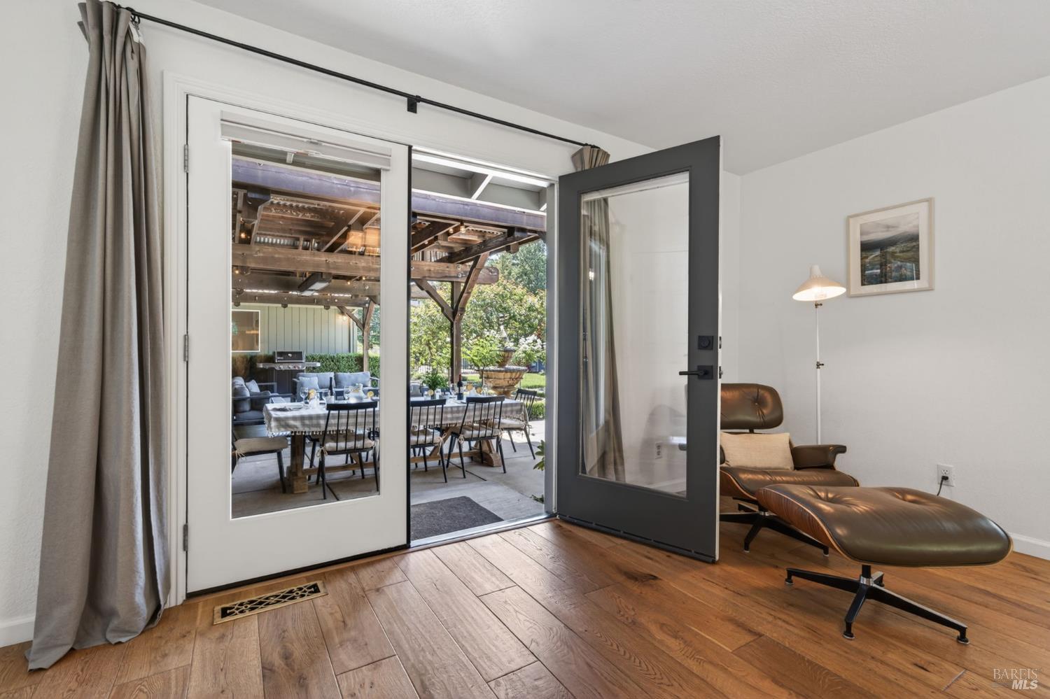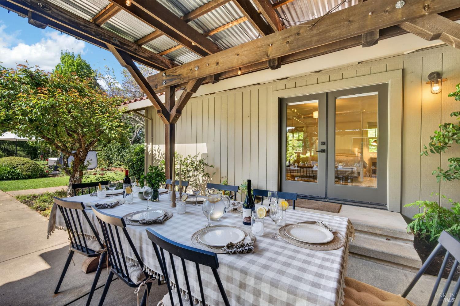Welcome to Healdsburg! A sprawling single-level home set on 1.4 acres in Healdsburg's coveted Vintage Hills neighborhood. Perfectly marrying the charm of country living with the convenience of city services, all tucked away on a peaceful lane that embodies the best of Wine Country living. This property is as practical as it is beautiful, offering exceptional energy efficiency with an owned solar system and a brand-new 40-gallon-per-minute well, keeping utility costs impressively low. Step inside and discover warm hardwood floors that lead you through the home's thoughtful layout. At its heart, you'll find the formal living room with a cozy gas fireplace and chef's kitchen ideal for entertaining. All 5 bedrooms are privately situated on the east side of the home, with the primary bedroom in the rear and opening to the backyard. The family room, rec room, office, and laundry are on the west wing of the home, also opening to the backyard, creating a harmonious indoor-outdoor flow. Step outside to your resort-like grounds. Gather with family and friends on your covered patio with cooling misters for hot days and ceiling heaters for chilly evenings. Spend your days lounging by the pool, and nights stargazing in the hot tub or circling around the fire pit. A ton of room for recreation with a huge lawn & a driveway spacious enough to set up a pickleball court. The east side of the property borders a seasonal creek and offers the beginning of an abundant homestead, with a chicken coop and an orchard of over 50 fruit trees. Additionally, there is a detached 4-car garage with an overhead door leading to the backyard. All of this and just a short 7-minute drive to the Healdsburg Plaza and 1 hour to the Golden Gate. This is an ideal property for full-time residences or a Wine Country retreat.