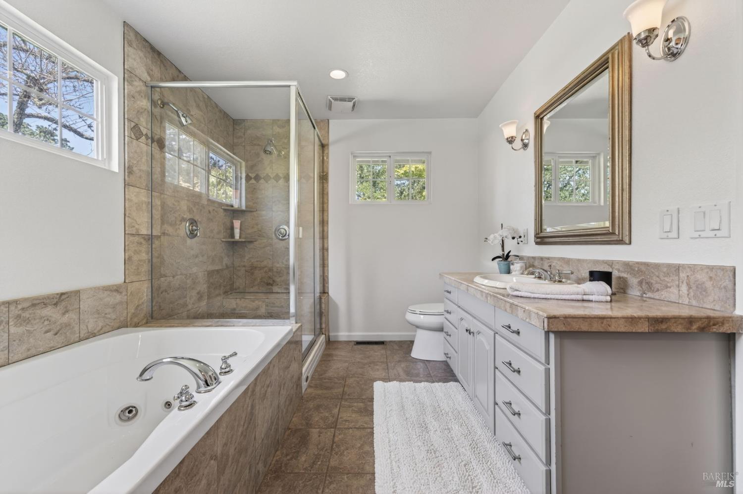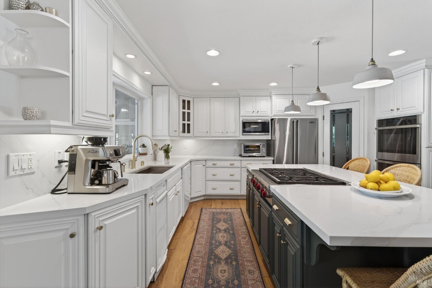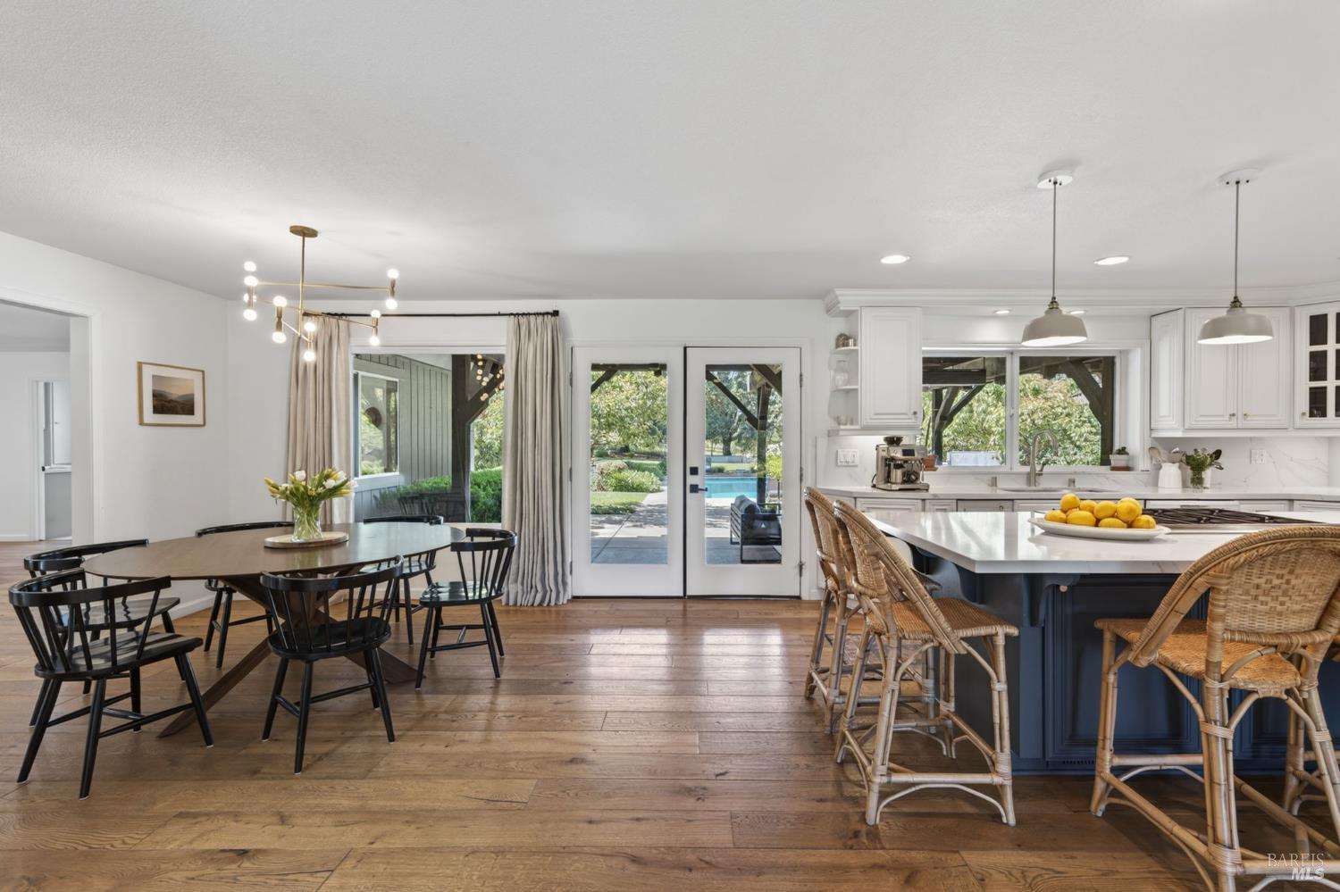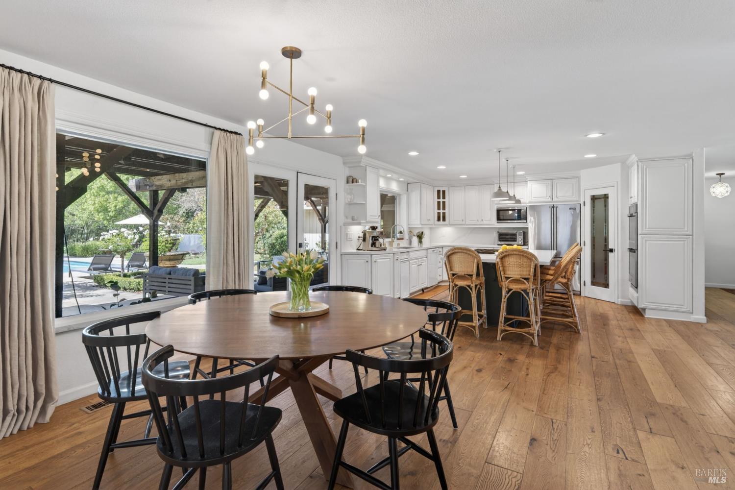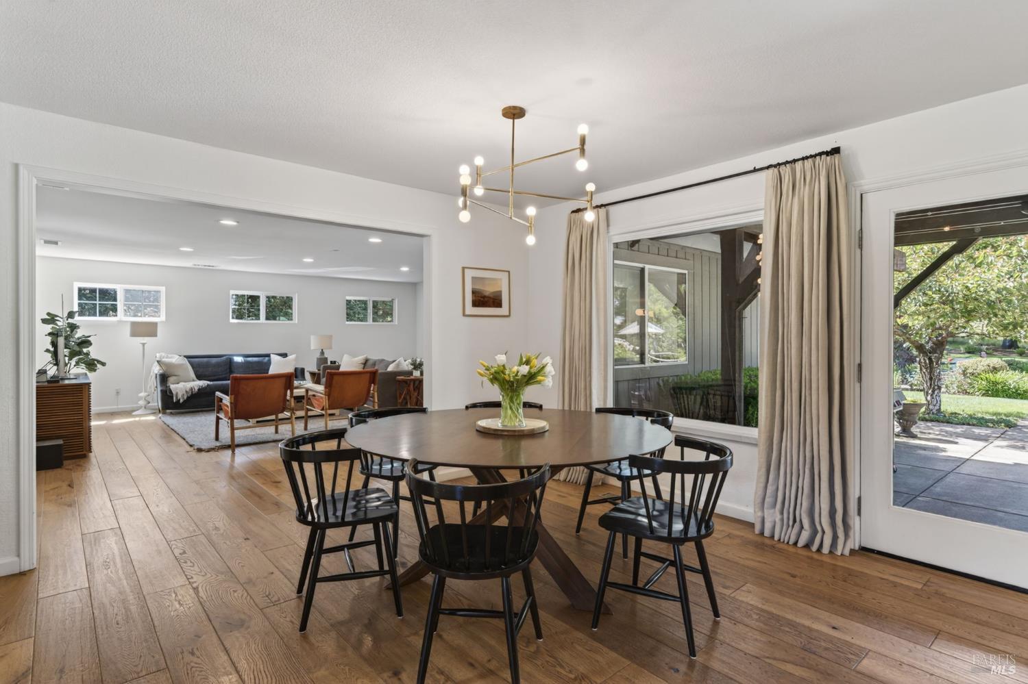 Welcome to Healdsburg! A sprawling single-level home set on 1.4 acres in Healdsburg's coveted Vintage Hills neighborhood. Perfectly marrying the charm of country living with the convenience of city services, all tucked away on a peaceful lane that embodies the best of Wine Country living. This property is as practical as it is beautiful, offering exceptional energy efficiency with an owned solar system and a brand-new 40-gallon-per-minute well, keeping utility costs impressively low. Step inside and discover warm hardwood floors that lead you through the home's thoughtful layout. At its heart, you'll find the formal living room with a cozy gas fireplace and chef's kitchen ideal for entertaining. All 5 bedrooms are privately situated on the east side of the home, with the primary bedroom in the rear and opening to the backyard. The family room, rec room, office, and laundry are on the west wing of the home, also opening to the backyard, creating a harmonious indoor-outdoor flow. Step outside to your resort-like grounds. Gather with family and friends on your covered patio with cooling misters for hot days and ceiling heaters for chilly evenings. Spend your days lounging by the pool, and nights stargazing in the hot tub or circling around the fire pit. A ton of room for recreation with a huge lawn & a driveway spacious enough to set up a pickleball court. The east side of the property borders a seasonal creek and offers the beginning of an abundant homestead, with a chicken coop and an orchard of over 50 fruit trees. Additionally, there is a detached 4-car garage with an overhead door leading to the backyard. All of this and just a short 7-minute drive to the Healdsburg Plaza and 1 hour to the Golden Gate. This is an ideal property for full-time residences or a Wine Country retreat.