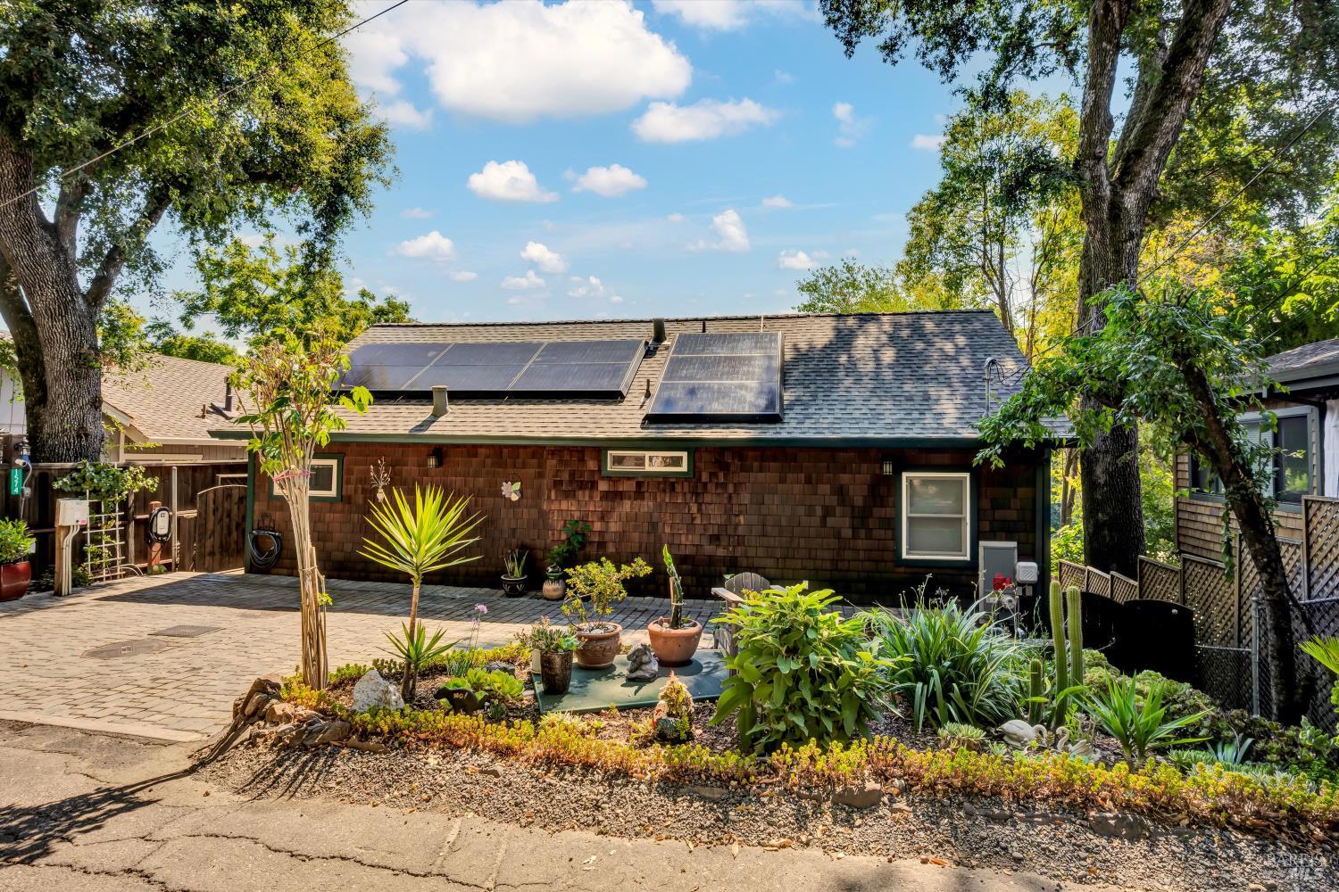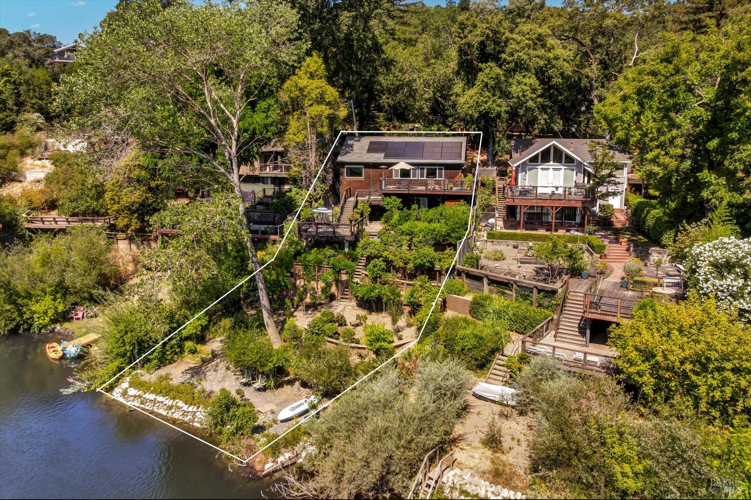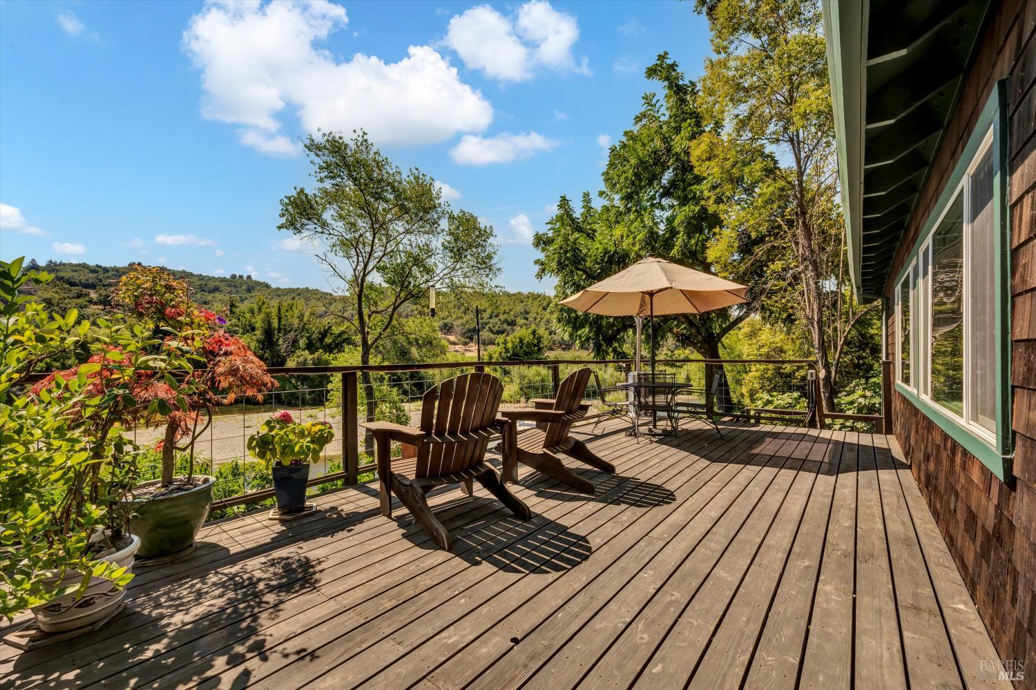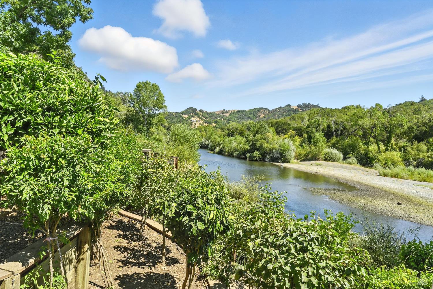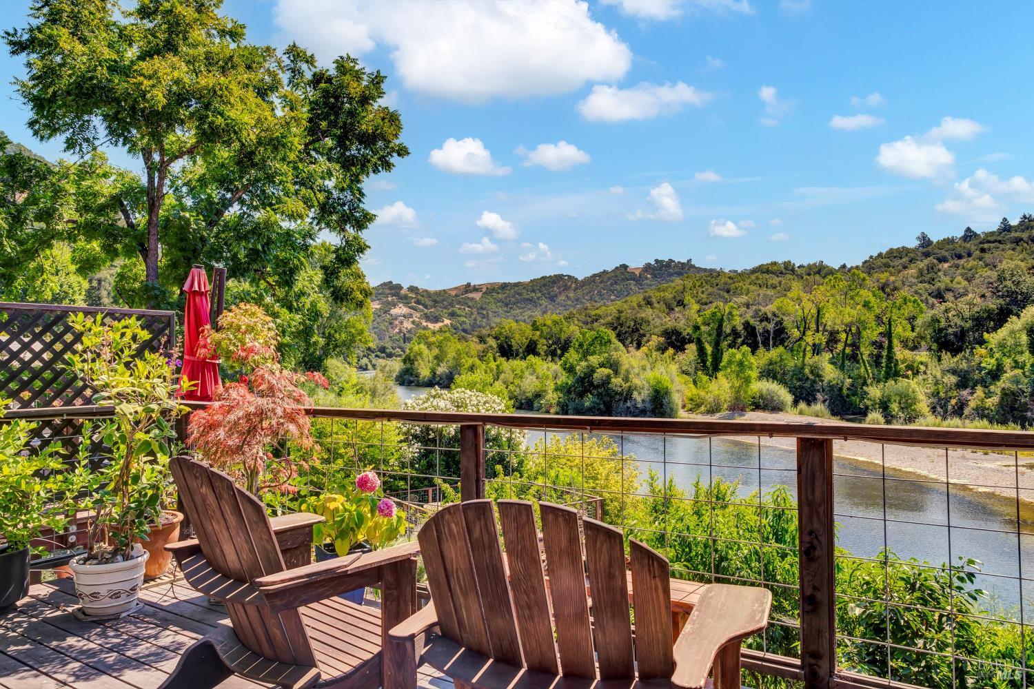 A mesmerizing riverfront oasis in desirable Healdsburg! This completely updated and remodeled 2BD/1BA home comes with unparalleled views & private access to Healdsburg's Russian River. Be welcomed by an open floor plan, high vaulted ceilings & hardwood floors throughout. Large dual-pane windows bring the outside in, highlighting the expansive kitchen with granite counters, stainless steel appliances & plenty of storage. Excellent all-day sun on multiple-tiered decks off the back of the home to enjoy the Wine Country lifestyle! This property is a gardener's dream. Walk through a tiered food forest with exotic fruit trees, flowers, and vegetable gardens. Superb river access for swimming, fishing, and kayaking. Additionally, on the lower level, the home has a full 900sf basement /workshop and a separate space for guests. Located on a quiet lane off the main road, parking for 3-4 cars, and a short distance from the downtown plaza. Powered by an owned solar system & price includes a restful sauna and Murphy bed in second bedroom. This is a rare find along the Russian River in sought-after Healdsburg, and an ideal place to live your life in Sonoma County's bucolic Wine Country.