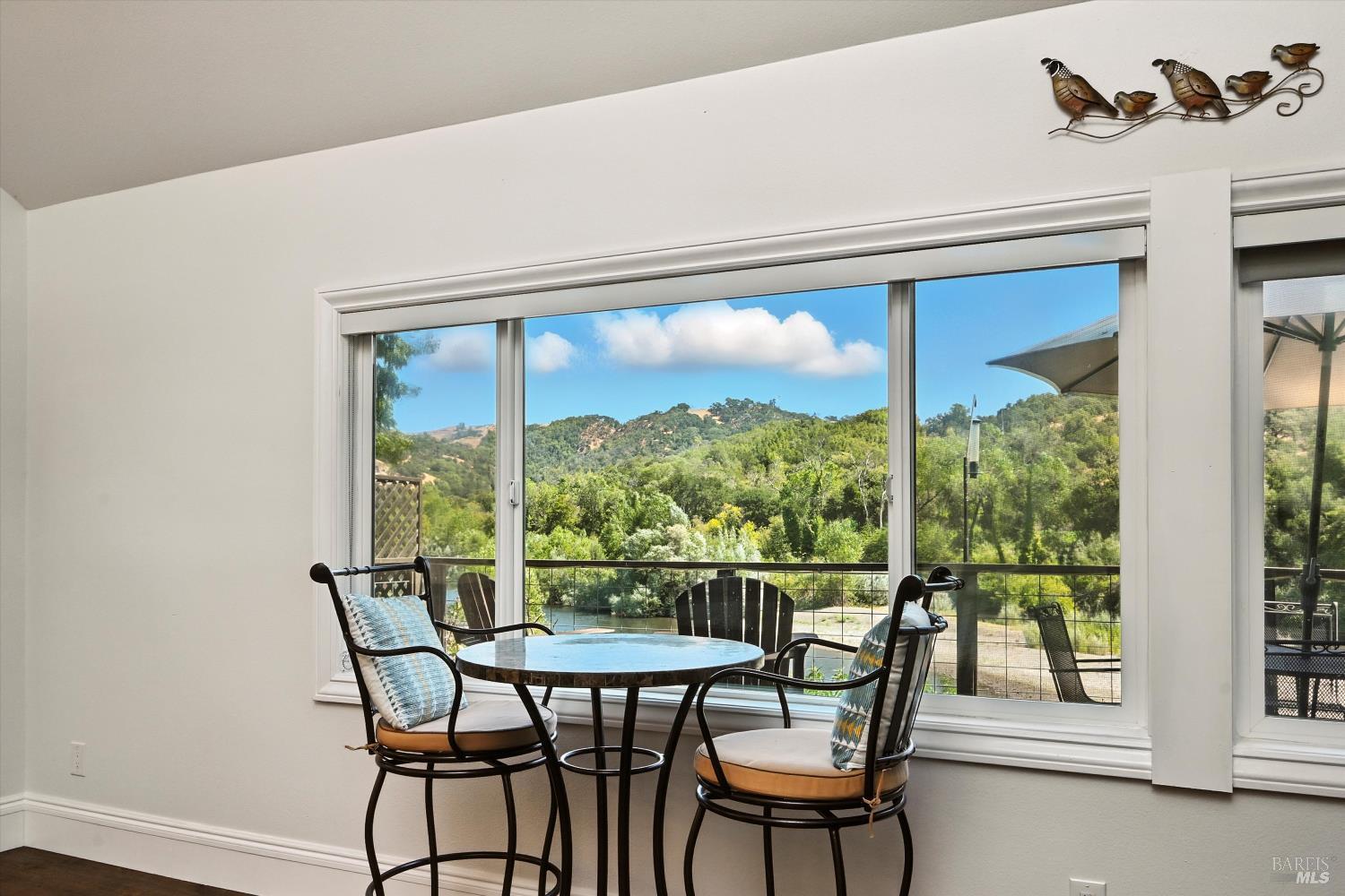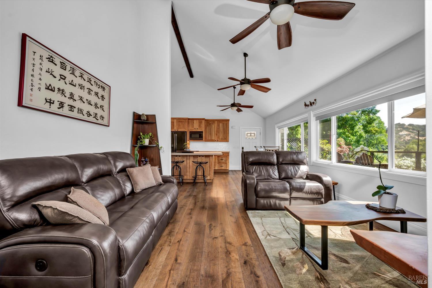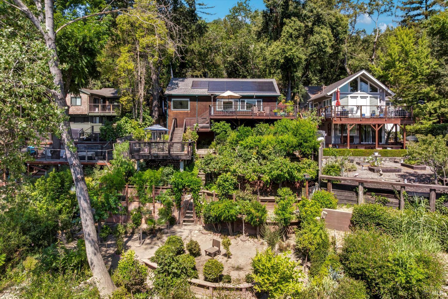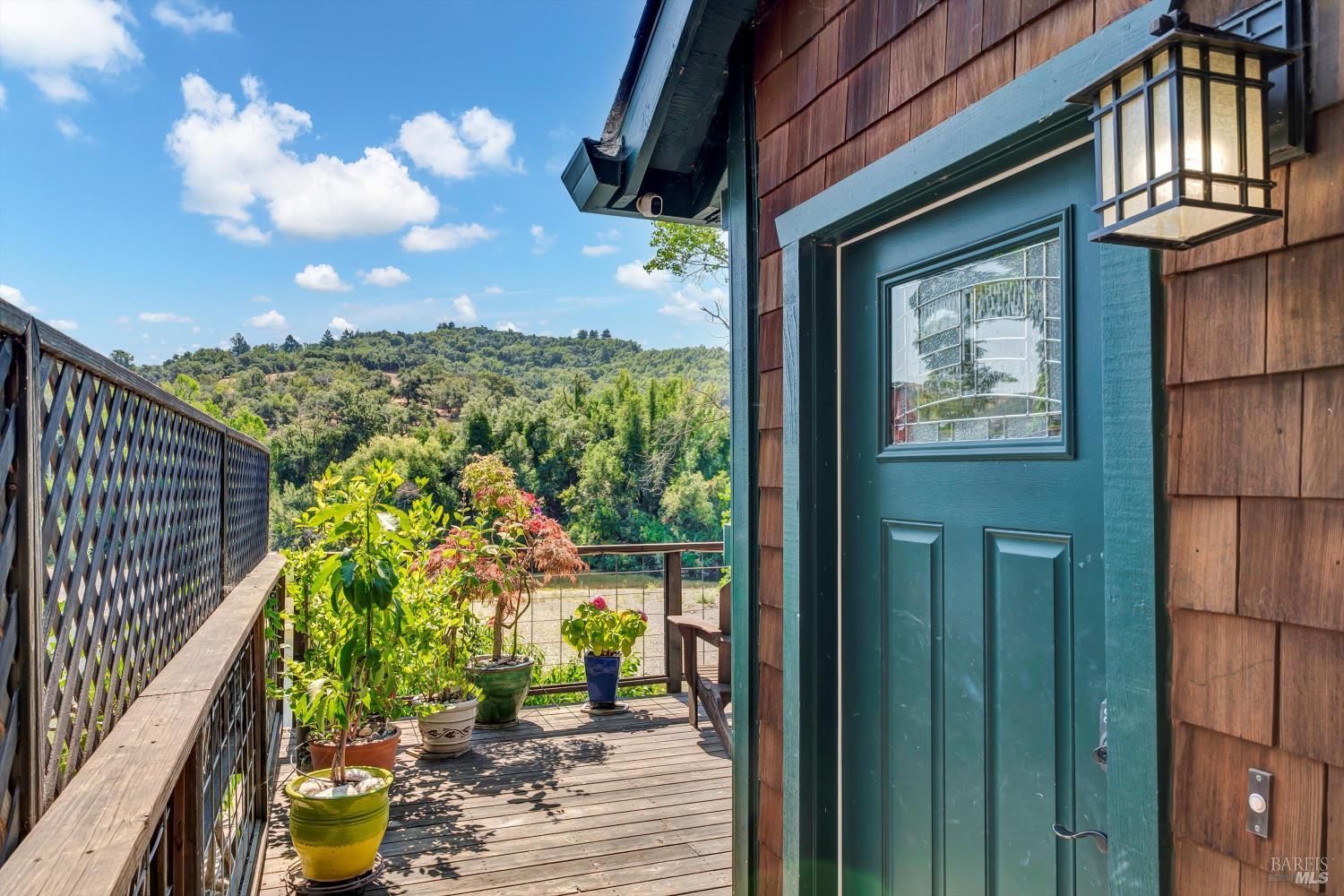 A mesmerizing riverfront oasis in desirable Healdsburg! This completely updated and remodeled 2BD/1BA home comes with unparalleled views & private access to Healdsburg's Russian River. Be welcomed by an open floor plan, high vaulted ceilings & hardwood floors throughout. Large dual-pane windows bring the outside in, highlighting the expansive kitchen with granite counters, stainless steel appliances & plenty of storage. Excellent all-day sun on multiple-tiered decks off the back of the home to enjoy the Wine Country lifestyle! This property is a gardener's dream. Walk through a tiered food forest with exotic fruit trees, flowers, and vegetable gardens. Superb river access for swimming, fishing, and kayaking. Additionally, on the lower level, the home has a full 900sf basement /workshop and a separate space for guests. Located on a quiet lane off the main road, parking for 3-4 cars, and a short distance from the downtown plaza. Powered by an owned solar system & price includes a restful sauna and Murphy bed in second bedroom. This is a rare find along the Russian River in sought-after Healdsburg, and an ideal place to live your life in Sonoma County's bucolic Wine Country.