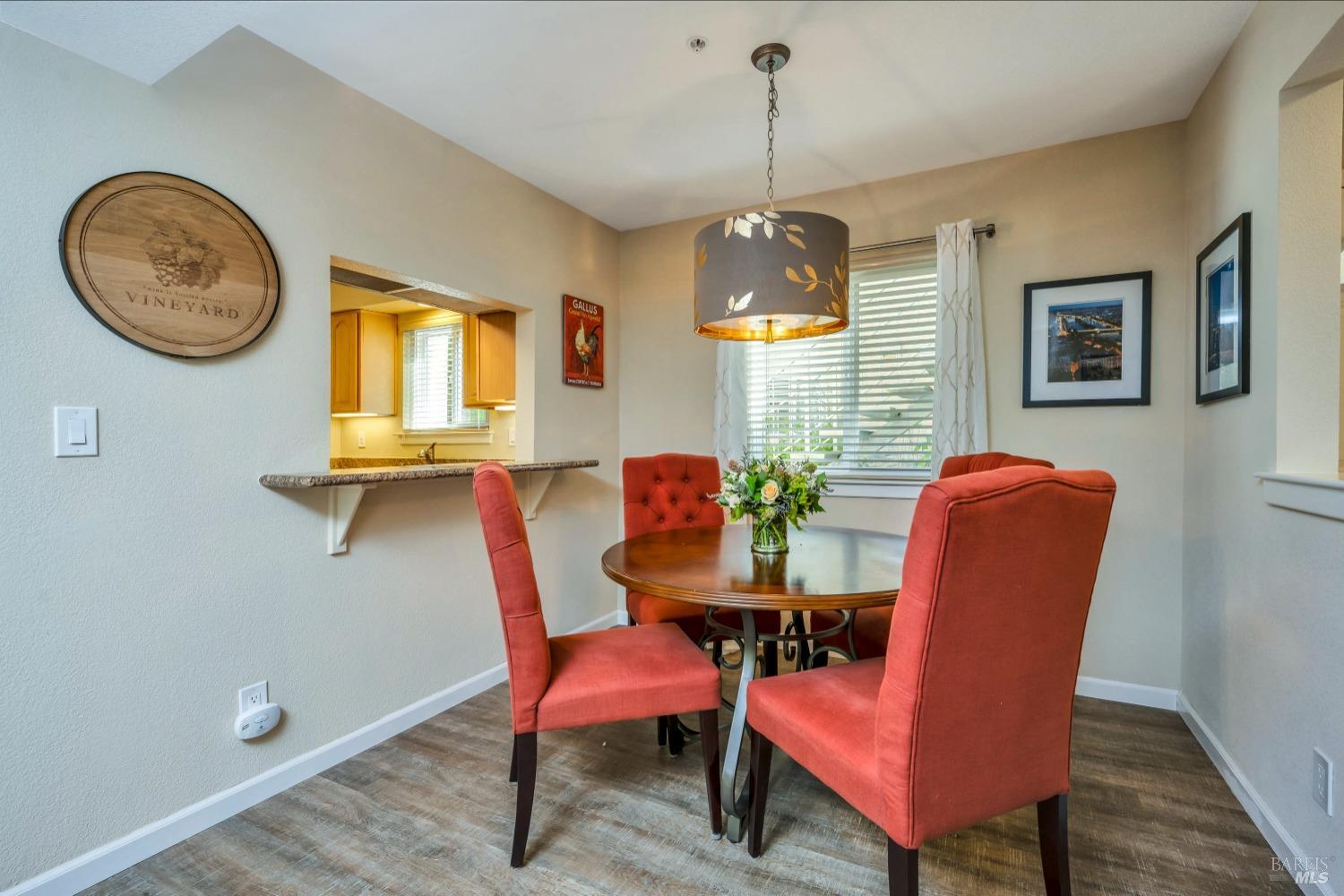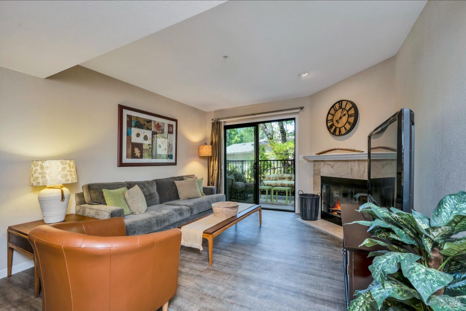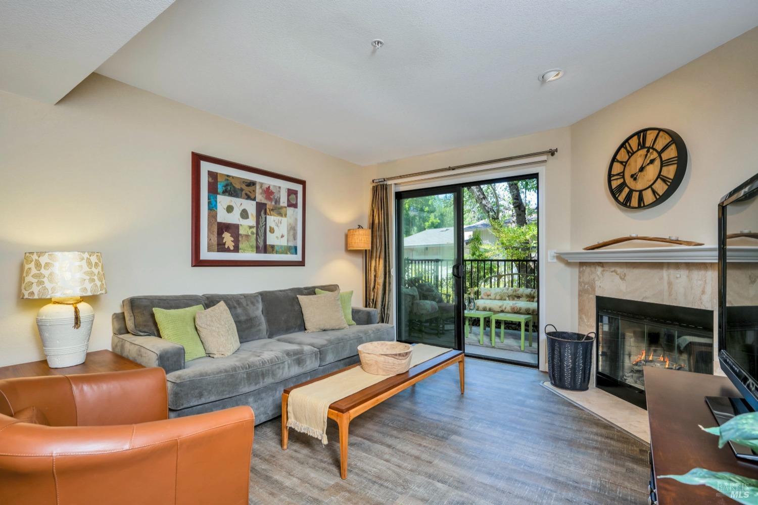 Welcome to Foss Creek Villas! A perfect low-maintenance lock-and-go property blocks from the Healdsburg Plaza. This peaceful and private 2 bd 2ba single-level end unit condo with a detached garage exudes wine country charm. The home features luxury plank vinyl flooring, a wood-burning fireplace for cozy nights in & a covered outdoor patio for entertaining guests. The kitchen has a breakfast bar opening to the dining area, a new stainless steel refrigerator, energy efficient dishwasher, and a stacked washer/dryer laundry closet. The bedrooms have newer carpeting and custom up/down blinds, The primary bedroom sits on the east side of the home w/an ensuite bathroom. The secondary bedroom sits on the west side of the home with excellent evening light. Enjoy the community clubhouse, heated swimming pool, dog run, and beautifully maintained grounds. Structural insurance included in HOA. Live the good life in Healdsburg - Fill your weekends with 5-star restaurants and world class wineries. Spend your days boating on Lake Sonoma, paddling the Russian River, cycling through the vineyards, and hiking nearby ridge trails.Your Wine Country dreams start here.