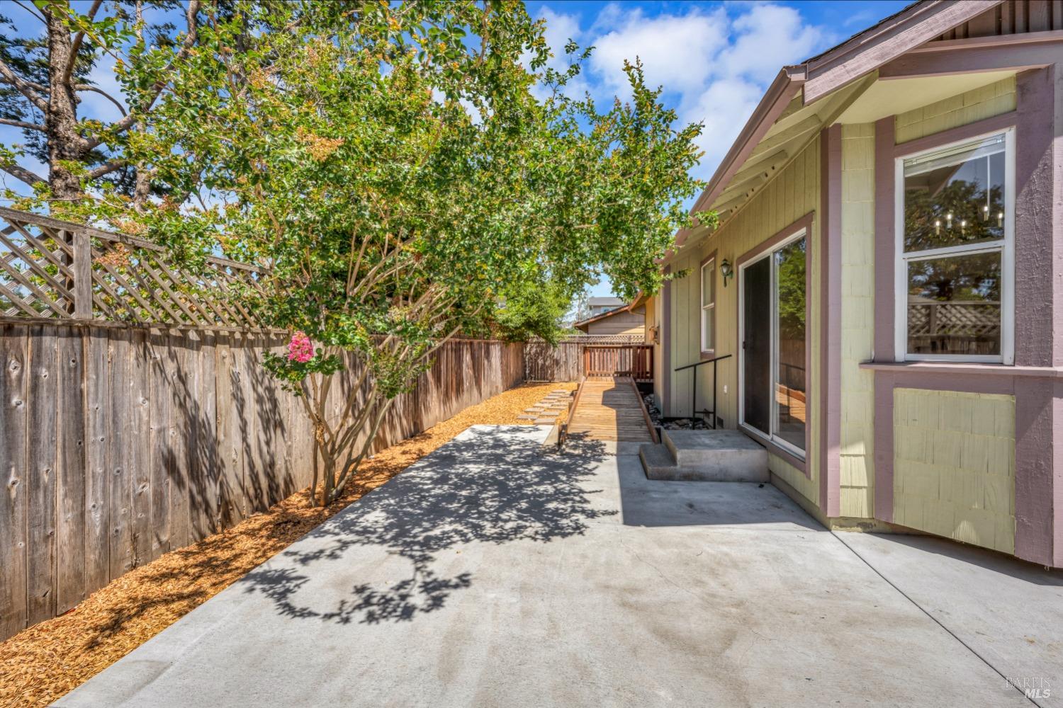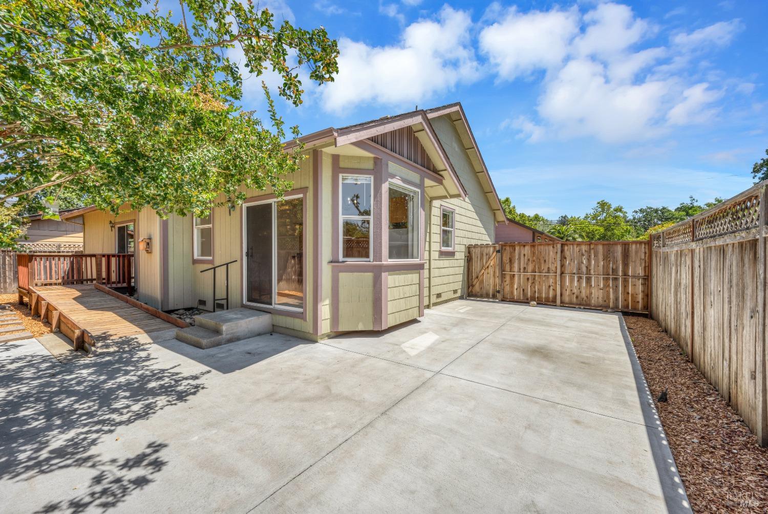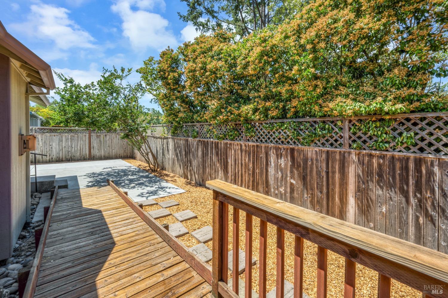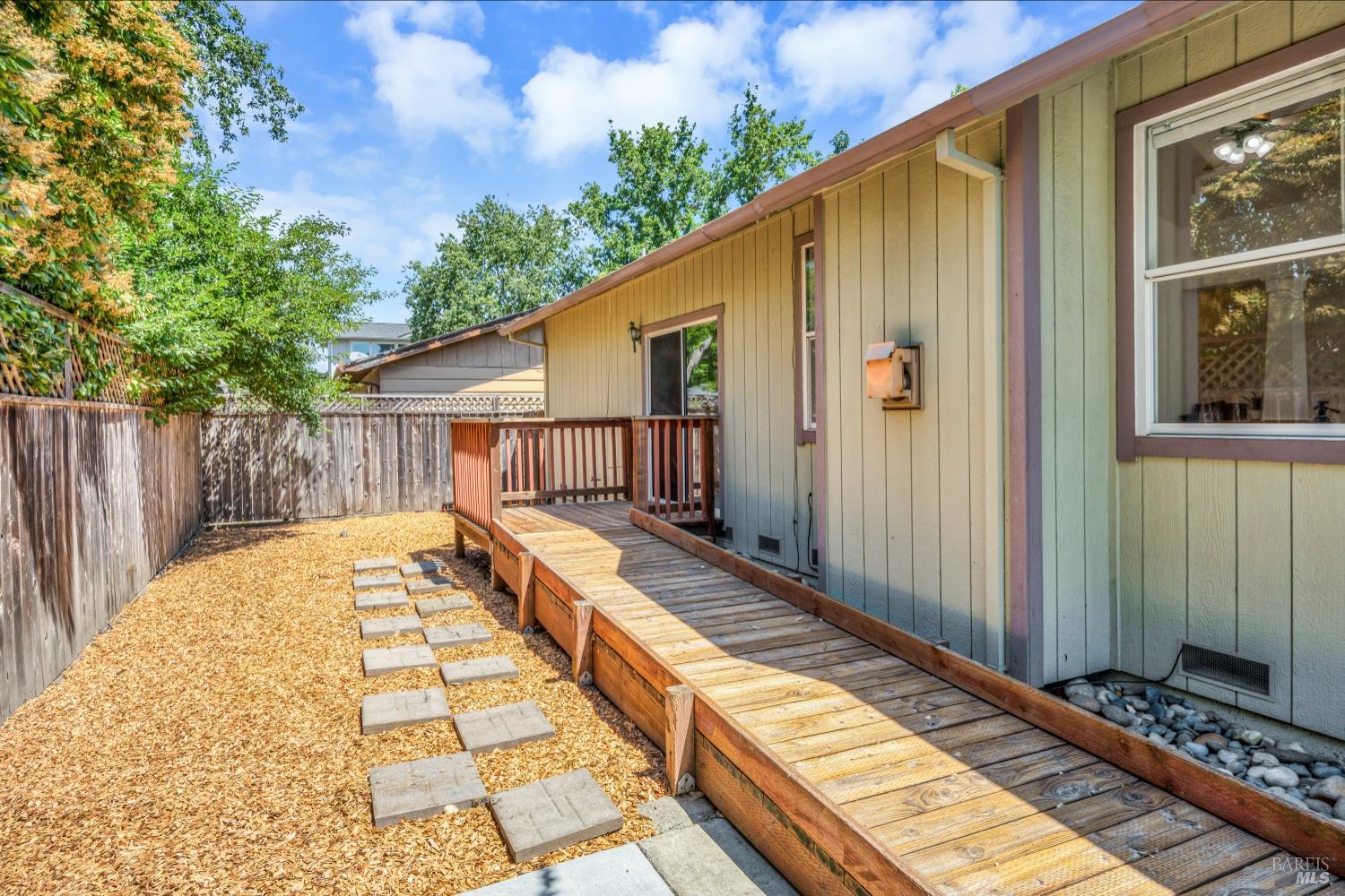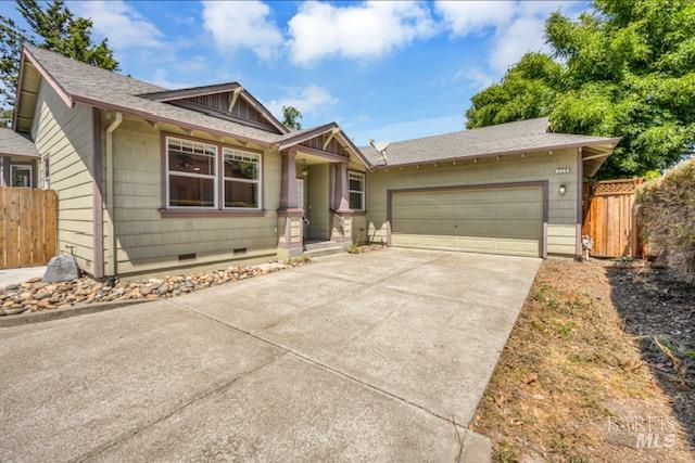 Contemporary Craftsman style single-level home in peaceful Rincon Valley, privately situated in a court off Middle Rincon Rd. Step inside the light-filled home and be welcomed by high vaulted ceilings and an abundance of windows. The spacious living room features durable laminate wood flooring and a gas-burning fireplace. The kitchen opens to the living room with an island breakfast bar, & dining area with bay windows with a glass slider leading to the backyard. An additional space could function as formal dining room or a family room. The primary bedroom has a spacious bath with a large soaking tub, shower stall & double sinks. As well as a large walk-in closet and a glass slider opening to a backyard deck with an access ramp. Two secondary bedrooms, a laundry room, and a two-car garage complete this sweet home. Fresh paint throughout, new carpeting in the bedrooms & tray ceilings are additional perks. The sun-filled backyard awaits your vision with a large wrap-around patio, separate dog run, and plenty of space to create your backyard dreams! All of this, and close to miles of creekside walking paths, Oliver's market, delicious restaurants, and the sought-after Rincon Valley schools.