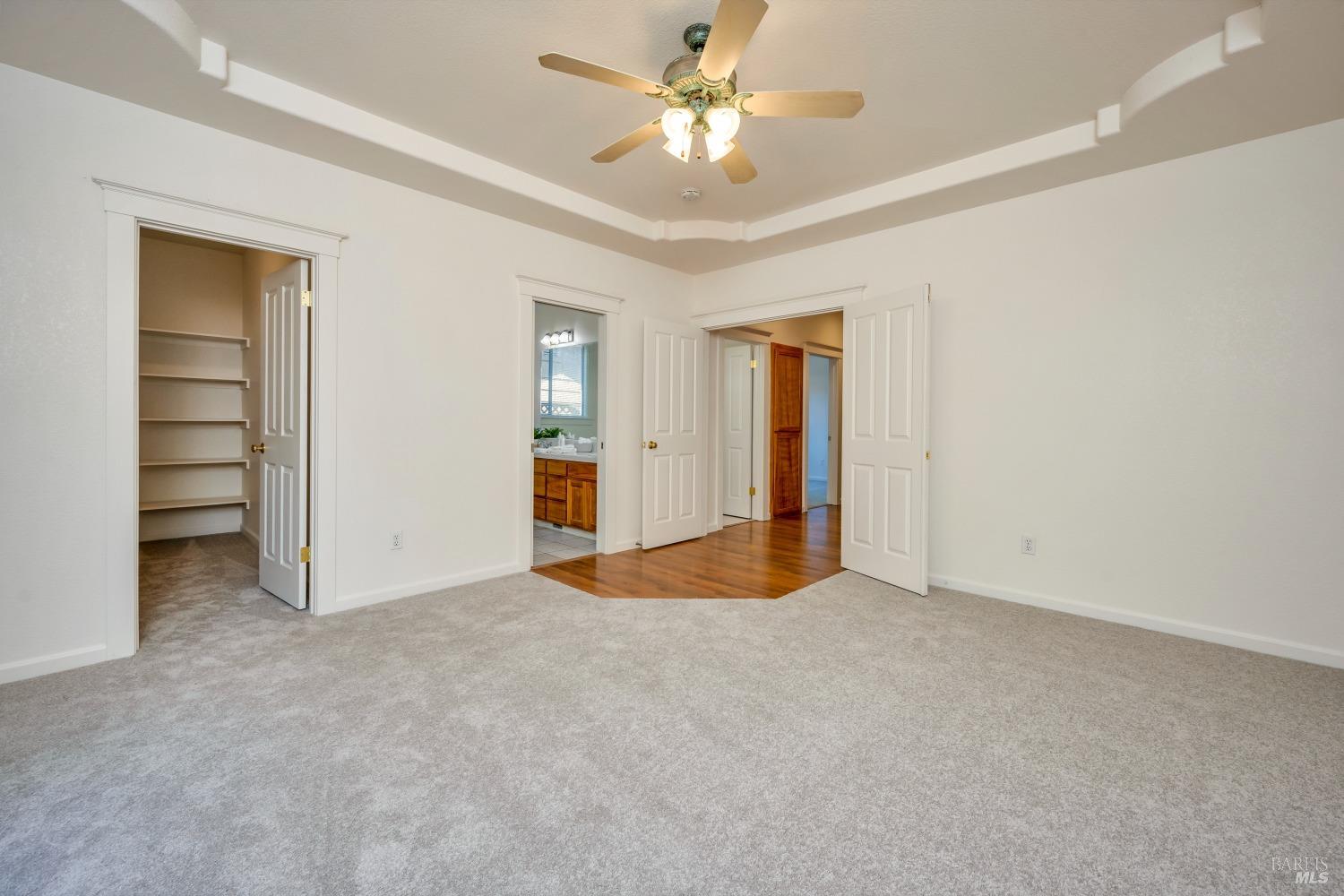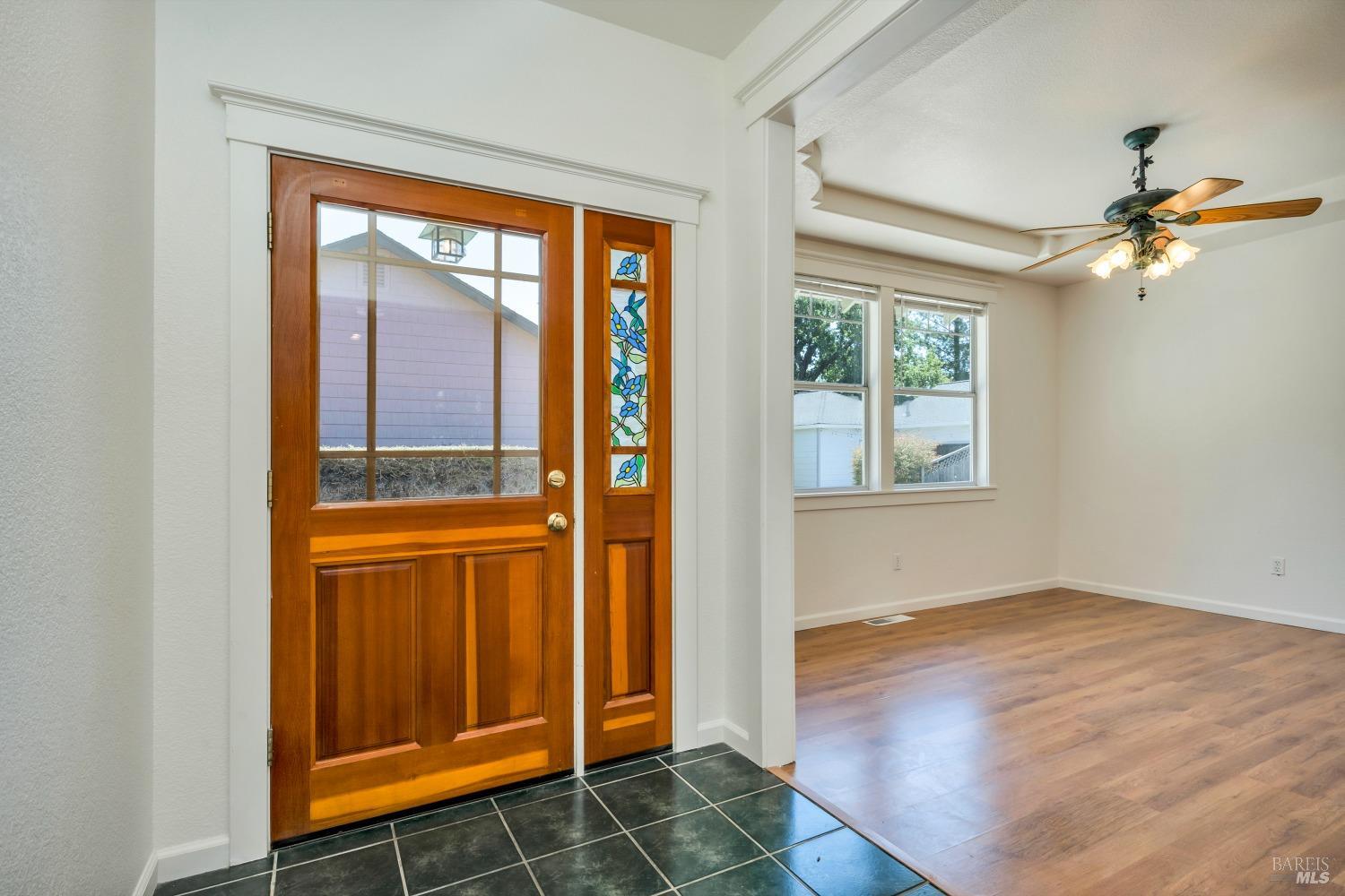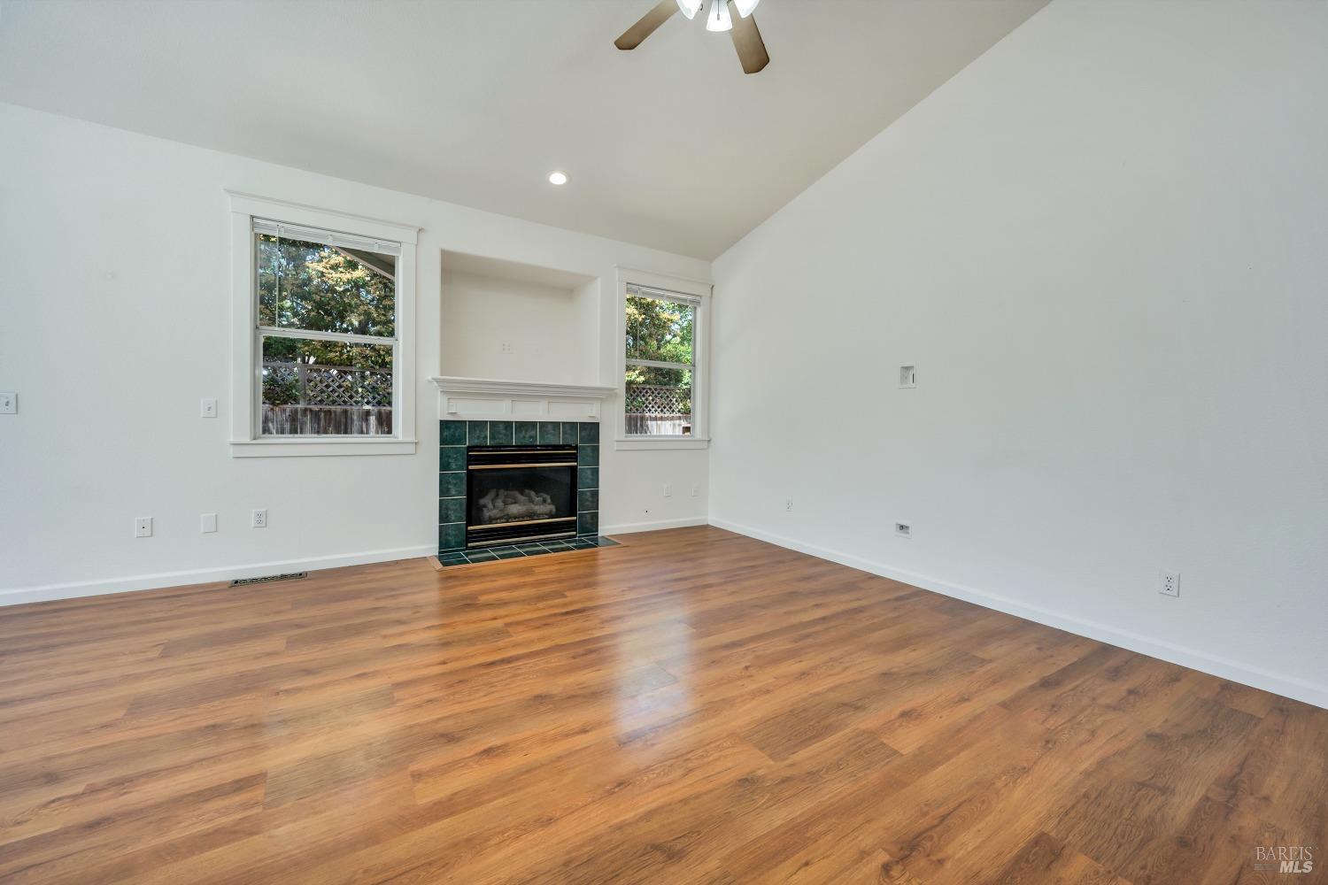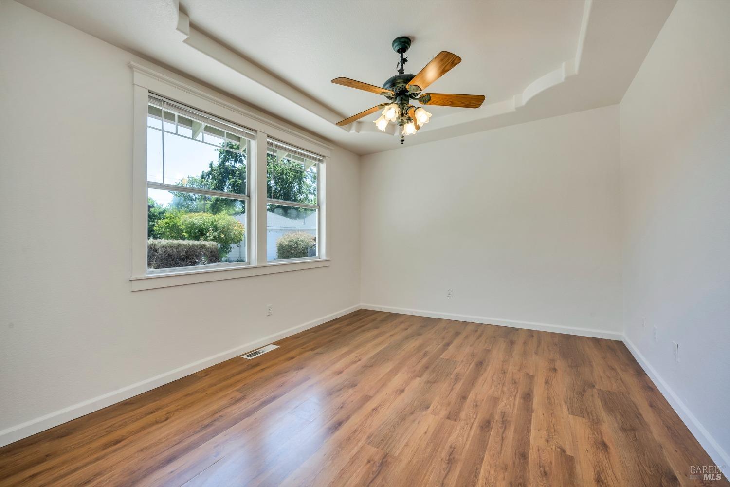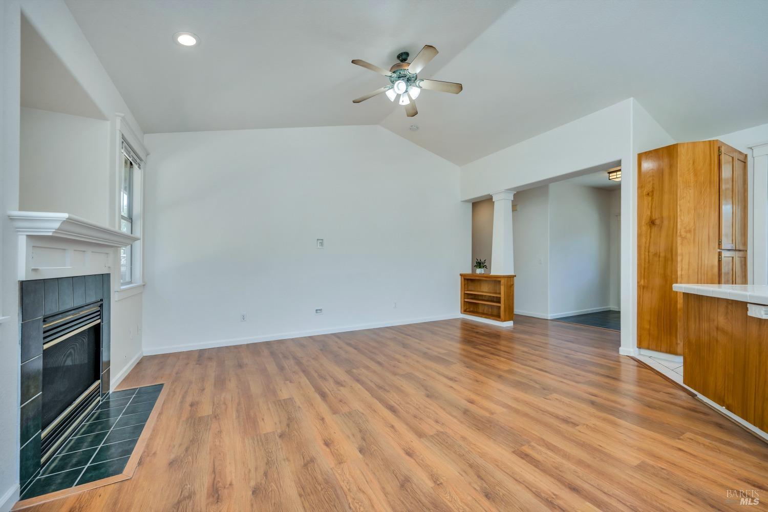 Contemporary Craftsman style single-level home in peaceful Rincon Valley, privately situated in a court off Middle Rincon Rd. Step inside the light-filled home and be welcomed by high vaulted ceilings and an abundance of windows. The spacious living room features durable laminate wood flooring and a gas-burning fireplace. The kitchen opens to the living room with an island breakfast bar, & dining area with bay windows with a glass slider leading to the backyard. An additional space could function as formal dining room or a family room. The primary bedroom has a spacious bath with a large soaking tub, shower stall & double sinks. As well as a large walk-in closet and a glass slider opening to a backyard deck with an access ramp. Two secondary bedrooms, a laundry room, and a two-car garage complete this sweet home. Fresh paint throughout, new carpeting in the bedrooms & tray ceilings are additional perks. The sun-filled backyard awaits your vision with a large wrap-around patio, separate dog run, and plenty of space to create your backyard dreams! All of this, and close to miles of creekside walking paths, Oliver's market, delicious restaurants, and the sought-after Rincon Valley schools.