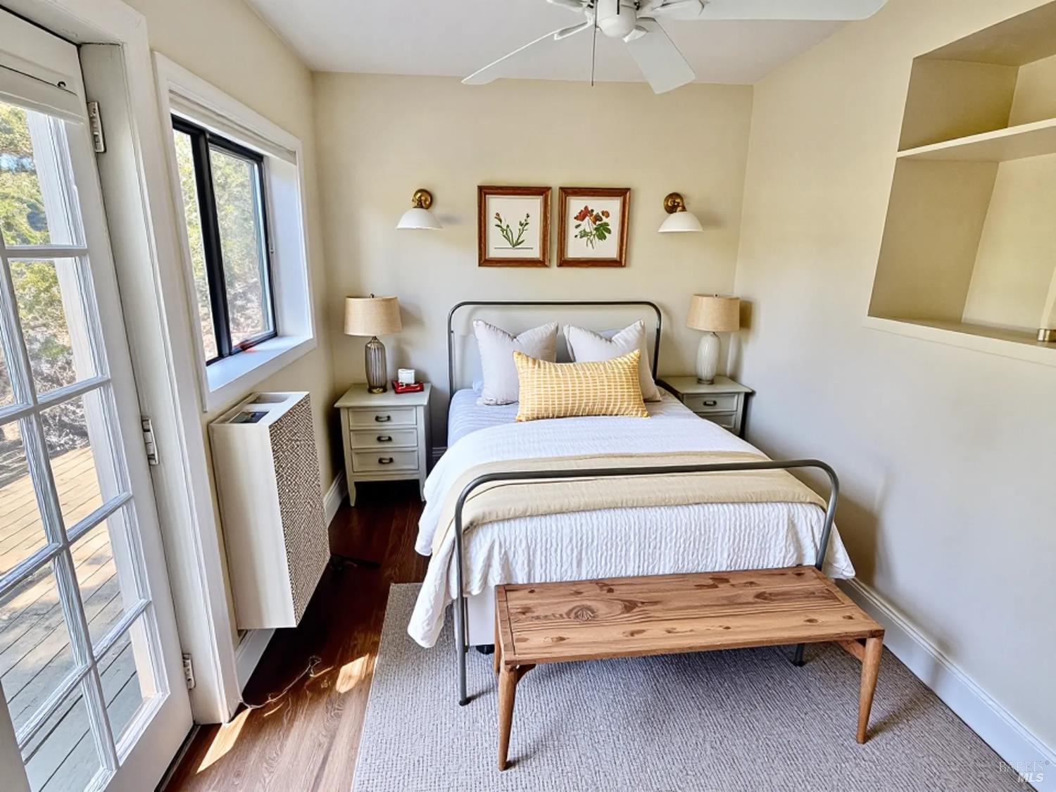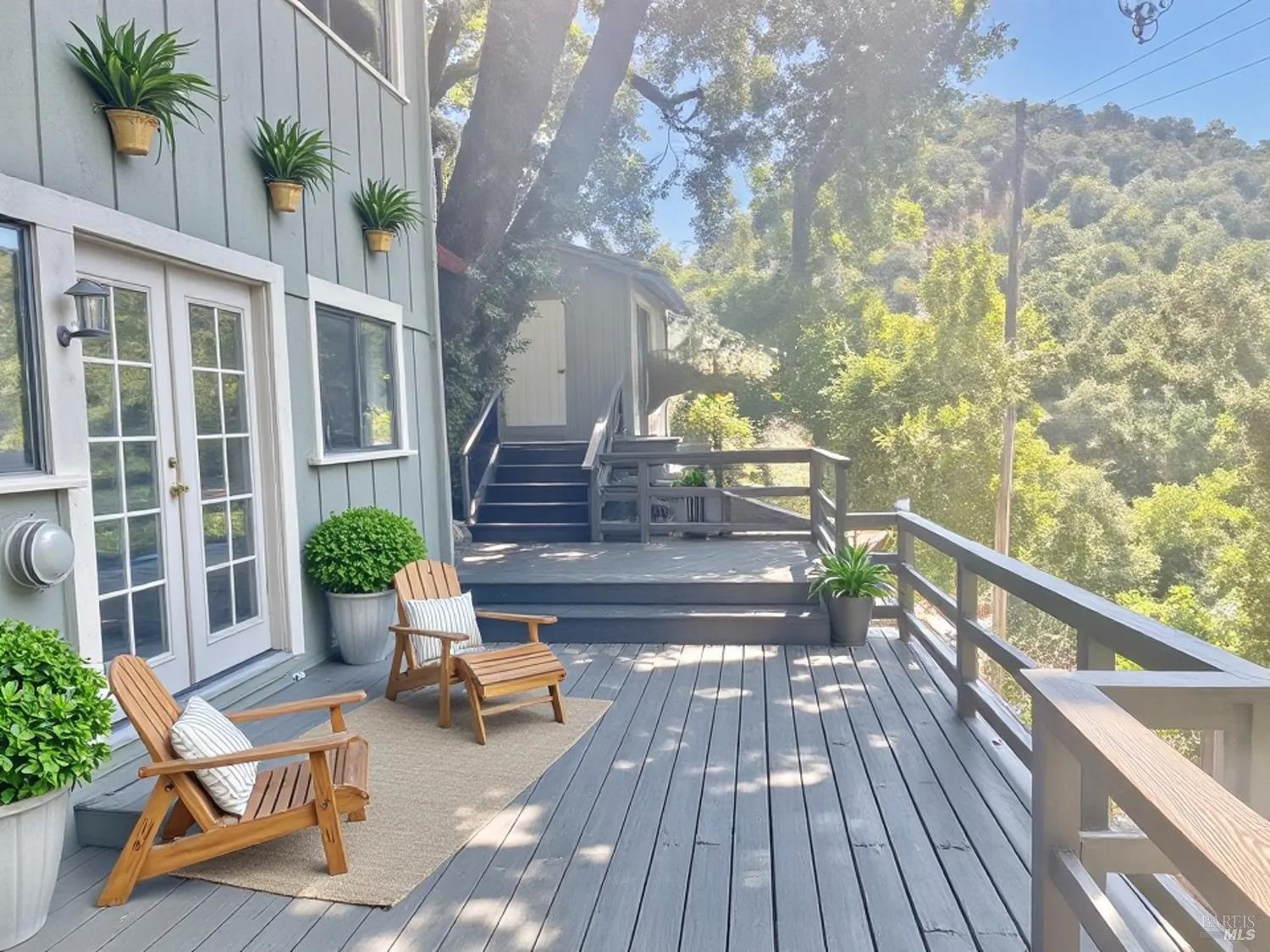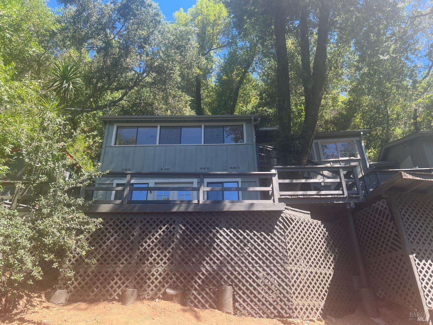 Above the Russian River, this 2-bedroom, 2-bath home nestled among the trees offers bright, airy living spaces and thoughtfully separated sleeping quarters for maximum privacy. Three expansive deck stwo with sweeping vistas create the perfect setting for outdoor living and peaceful relaxation. The main level features a cozy bedroom, a window-filled living room, and an open kitchen and dining area. Downstairs, a private suite with a full bathroom provides flexible space for guests, hobby room, or quiet retreat. The property also offers convenient parking, making daily living and entertaining effortless. Just 5 minutes from Healdsburg Plaza and close to scenic river beaches, this home perfectly balances tranquility and convenience. With possible seller financing potential, this is an exceptional opportunity.