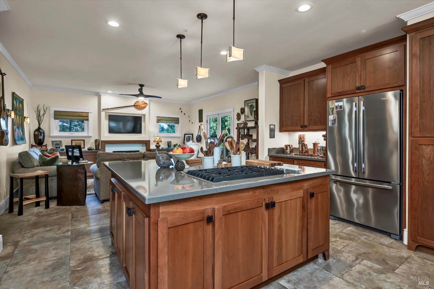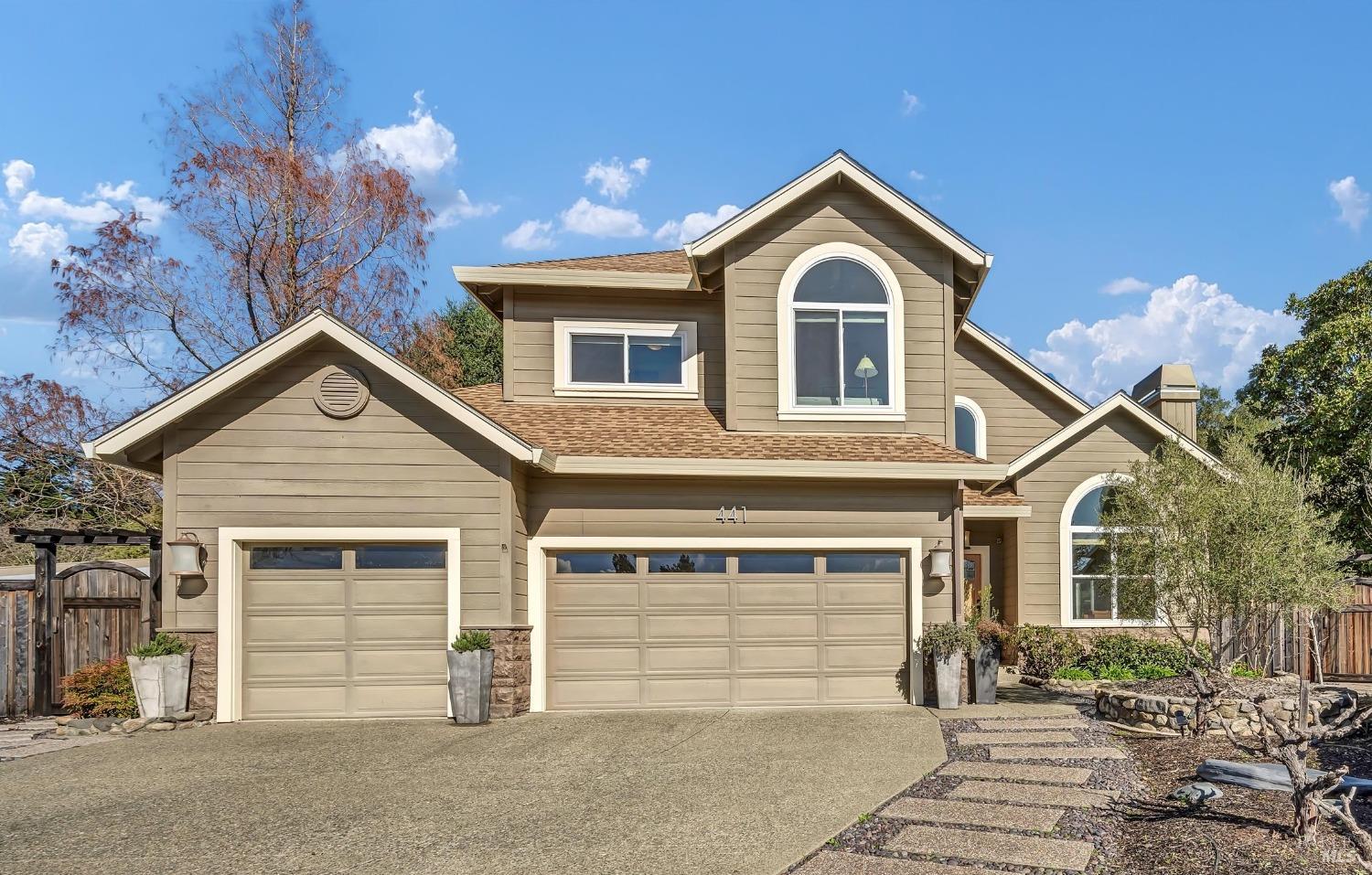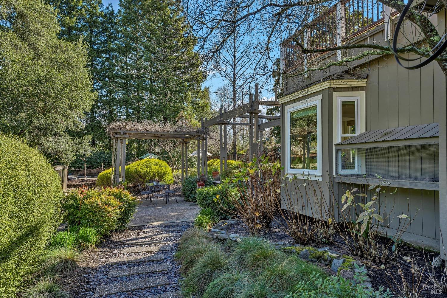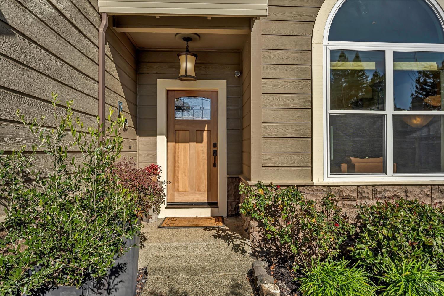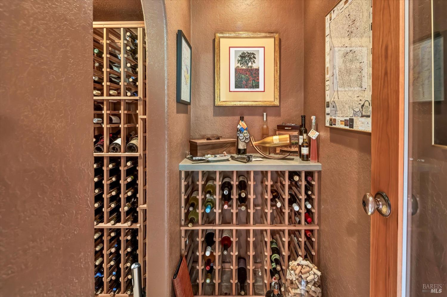 Welcome to Healdsburg Greens, 8 blocks from the Plaza. This exquisite home is nestled on a serene .48 acre in a quiet cul-de-sac, minutes from downtown. Meticulously crafted details include custom woodwork, elegant light fixtures, & breathtaking landscaping. The chef's kitchen features high-end Jenn-Air appliances, a buffet counter, & an oversized island w/ cherrywood cabinetry & Cambria countertops. Enjoy a temp-controlled wine cellar & seamless outdoor access through multiple French doors. Custom fixtures & cherrywood built-ins accentuate the gas fireplaces in the living and family rooms. A main-level ensuite offers direct access to the west yard. Upstairs, the primary suite includes a sitting area, rooftop balcony & gym space. The luxurious bath has dual sinks, a soaking tub, & walk-in closet. Two additional bedrooms enjoy southern light, complemented by a full bath & laundry room. The backyard is a paradise w/ tiered patios, pergolas & diverse landscaping. An in ground pool & spa are nestled among a zinfandel hobby vineyard, fruit trees, & redwoods. Additional features include a 3-car garage, new windows, solar panels, water storage tanks, & pedestrian gate access to public land. This property offers the perfect blend of proximity & privacy, epitomizing Wine Country living.