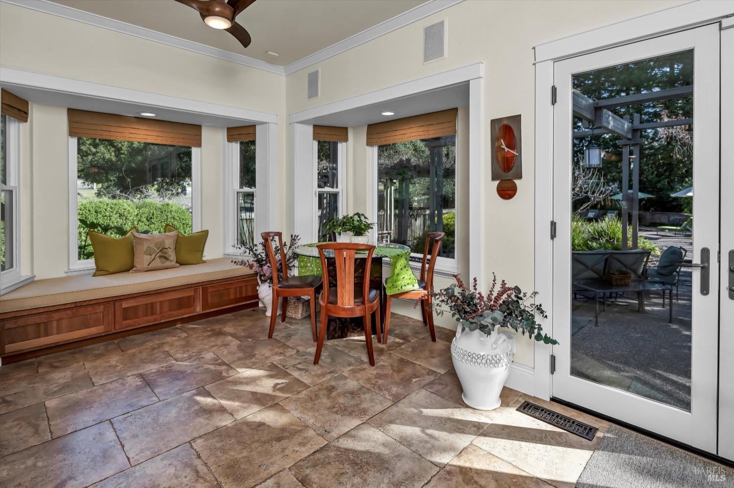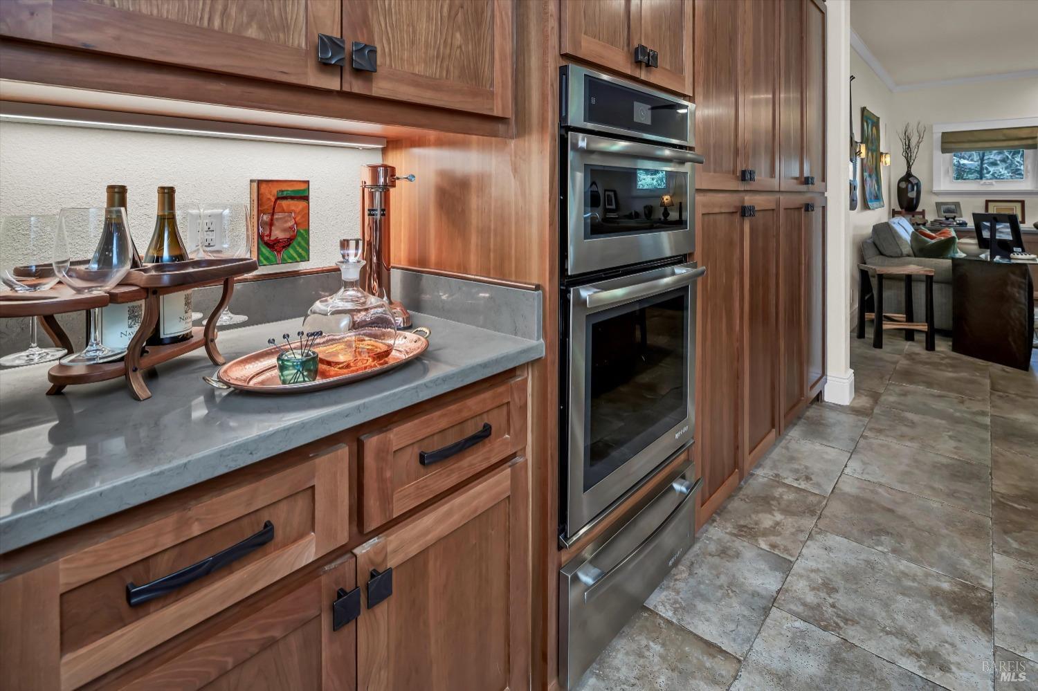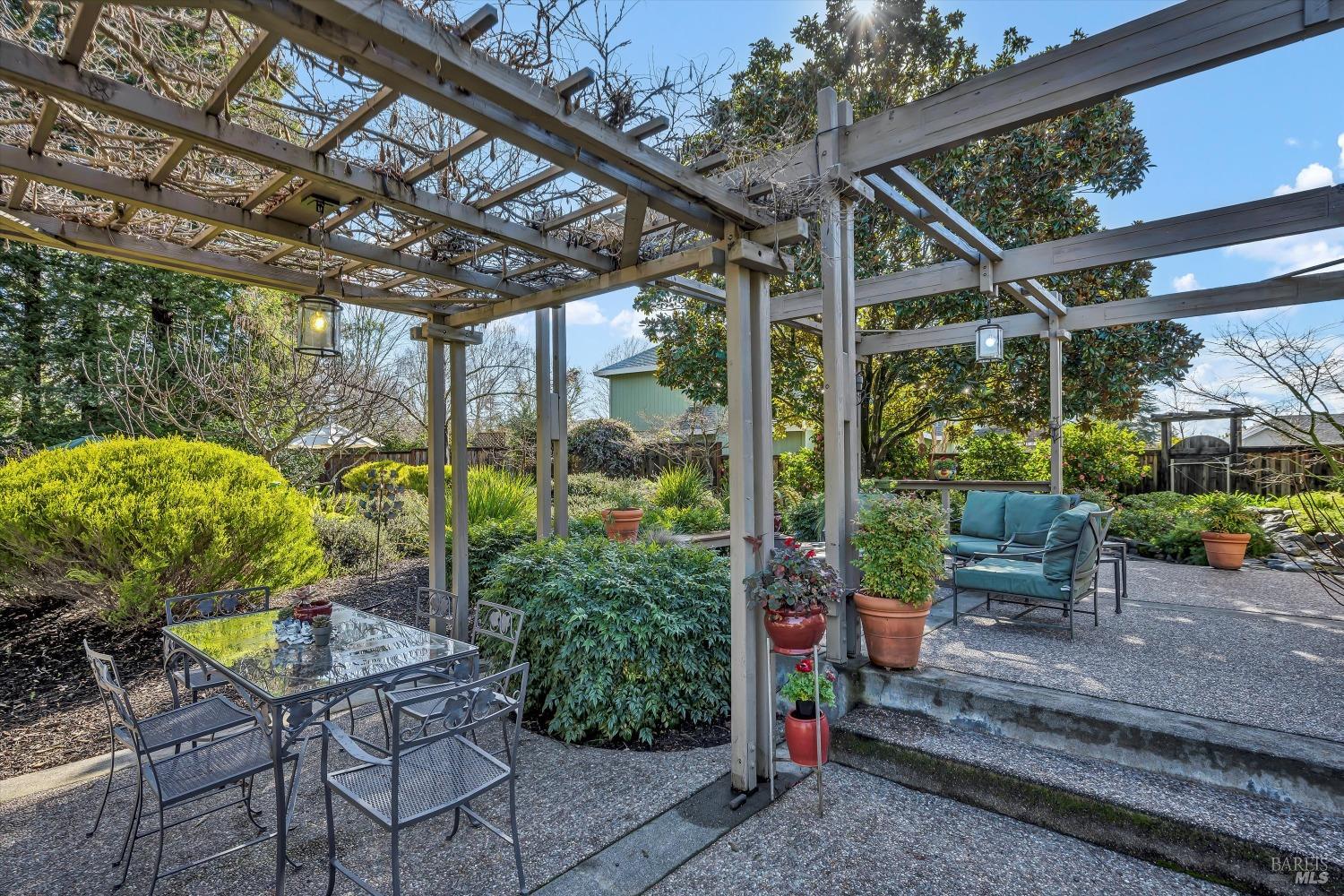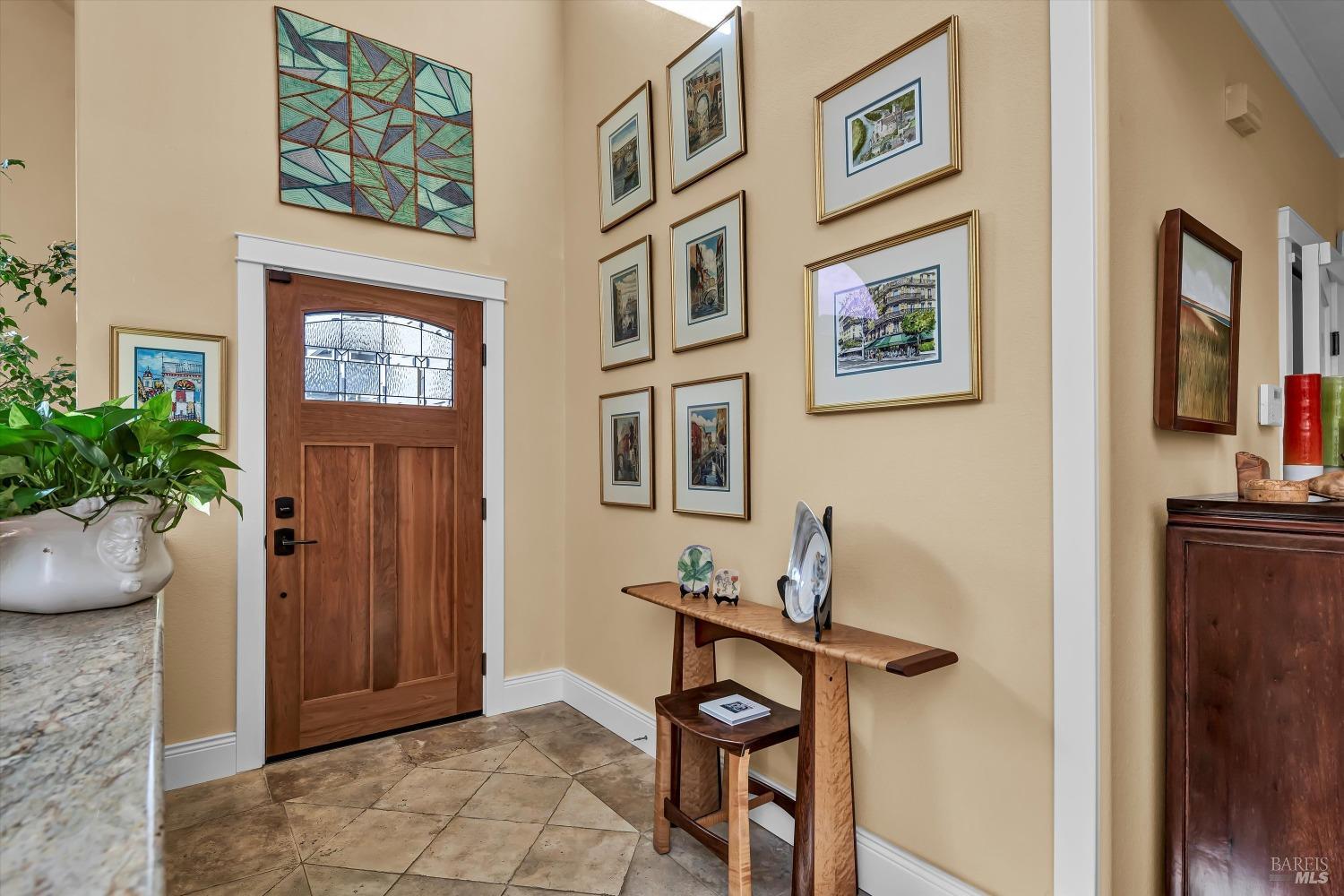 Welcome to Healdsburg Greens, 8 blocks from the Plaza. This exquisite home is nestled on a serene .48 acre in a quiet cul-de-sac, minutes from downtown. Meticulously crafted details include custom woodwork, elegant light fixtures, & breathtaking landscaping. The chef's kitchen features high-end Jenn-Air appliances, a buffet counter, & an oversized island w/ cherrywood cabinetry & Cambria countertops. Enjoy a temp-controlled wine cellar & seamless outdoor access through multiple French doors. Custom fixtures & cherrywood built-ins accentuate the gas fireplaces in the living and family rooms. A main-level ensuite offers direct access to the west yard. Upstairs, the primary suite includes a sitting area, rooftop balcony & gym space. The luxurious bath has dual sinks, a soaking tub, & walk-in closet. Two additional bedrooms enjoy southern light, complemented by a full bath & laundry room. The backyard is a paradise w/ tiered patios, pergolas & diverse landscaping. An in ground pool & spa are nestled among a zinfandel hobby vineyard, fruit trees, & redwoods. Additional features include a 3-car garage, new windows, solar panels, water storage tanks, & pedestrian gate access to public land. This property offers the perfect blend of proximity & privacy, epitomizing Wine Country living.