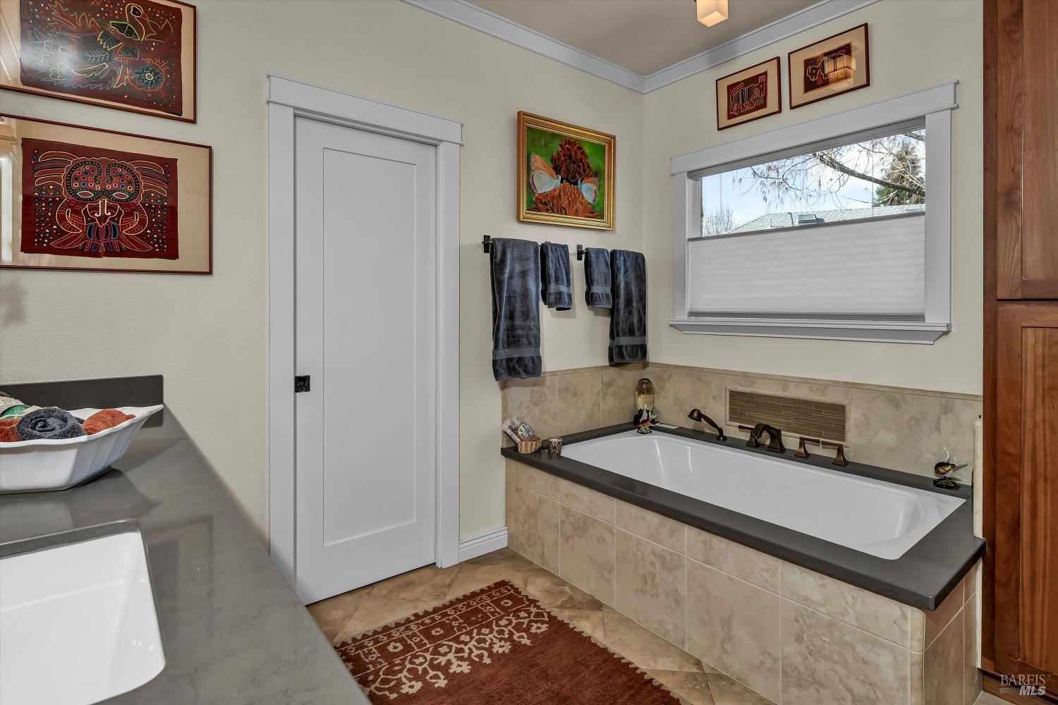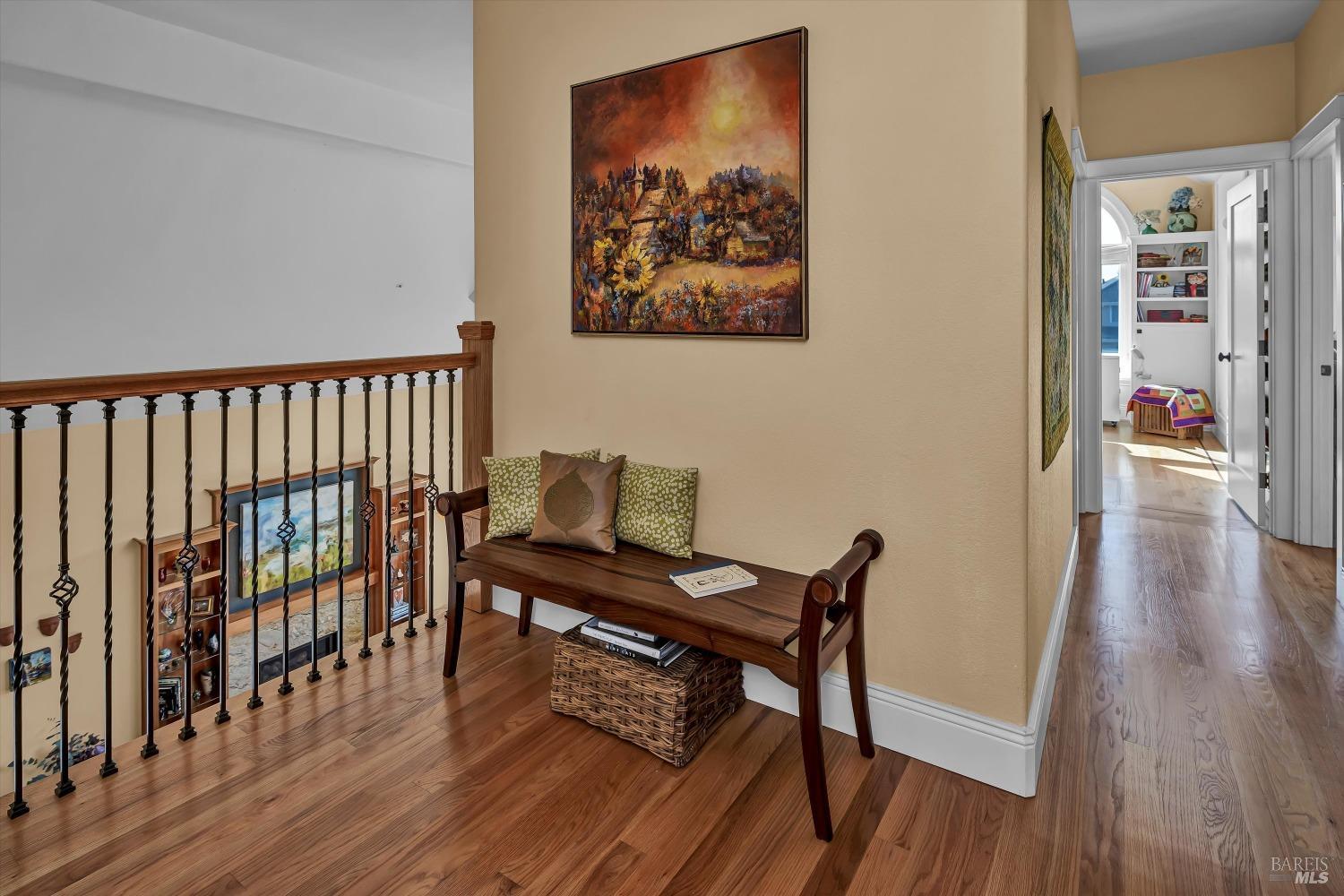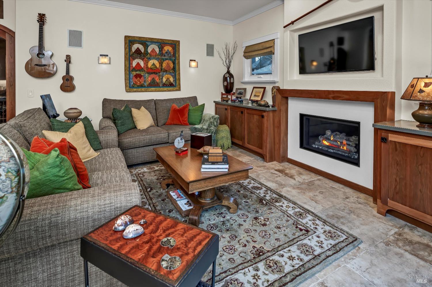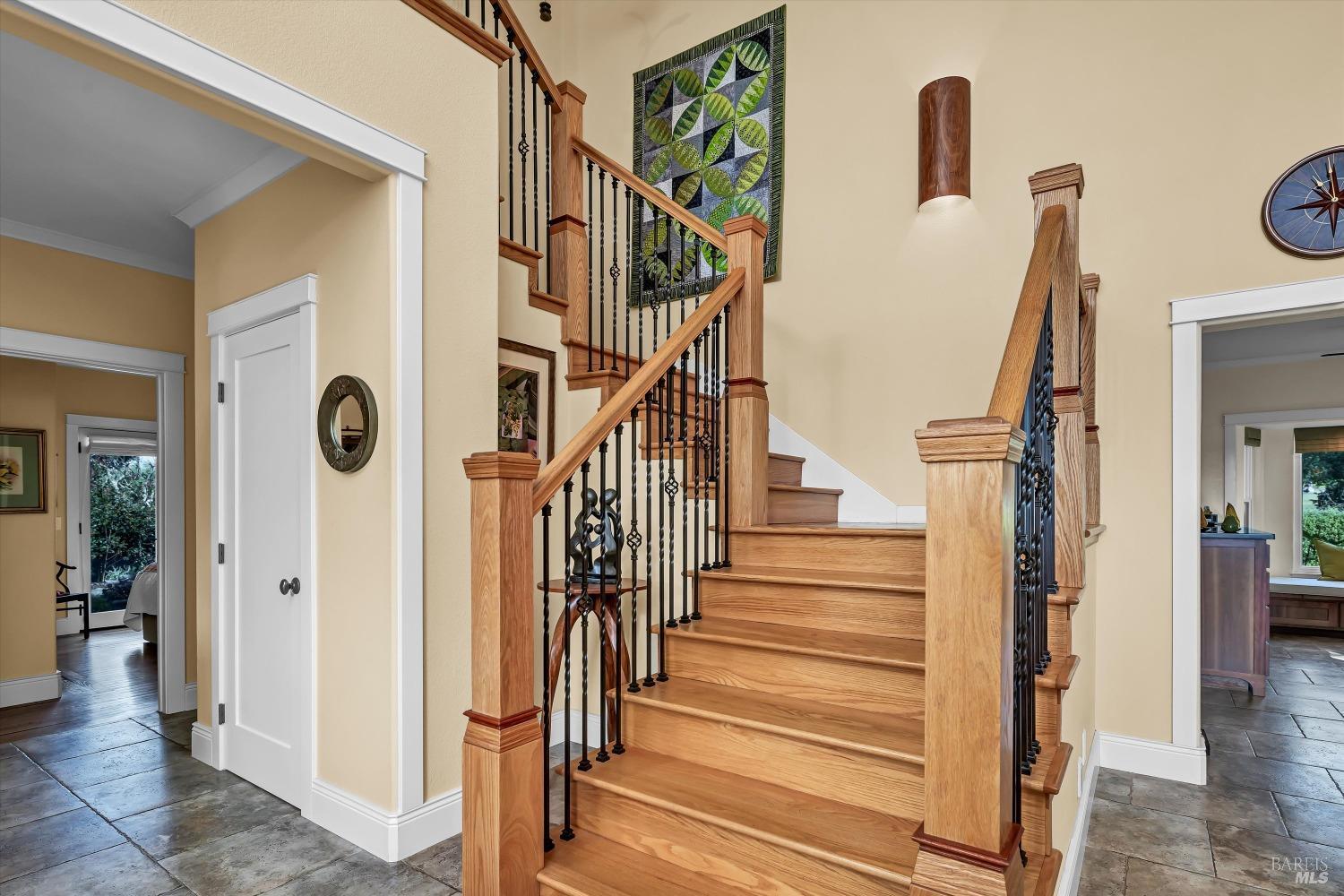 Welcome to Healdsburg Greens, 8 blocks from the Plaza. This exquisite home is nestled on a serene .48 acre in a quiet cul-de-sac, minutes from downtown. Meticulously crafted details include custom woodwork, elegant light fixtures, & breathtaking landscaping. The chef's kitchen features high-end Jenn-Air appliances, a buffet counter, & an oversized island w/ cherrywood cabinetry & Cambria countertops. Enjoy a temp-controlled wine cellar & seamless outdoor access through multiple French doors. Custom fixtures & cherrywood built-ins accentuate the gas fireplaces in the living and family rooms. A main-level ensuite offers direct access to the west yard. Upstairs, the primary suite includes a sitting area, rooftop balcony & gym space. The luxurious bath has dual sinks, a soaking tub, & walk-in closet. Two additional bedrooms enjoy southern light, complemented by a full bath & laundry room. The backyard is a paradise w/ tiered patios, pergolas & diverse landscaping. An in ground pool & spa are nestled among a zinfandel hobby vineyard, fruit trees, & redwoods. Additional features include a 3-car garage, new windows, solar panels, water storage tanks, & pedestrian gate access to public land. This property offers the perfect blend of proximity & privacy, epitomizing Wine Country living.