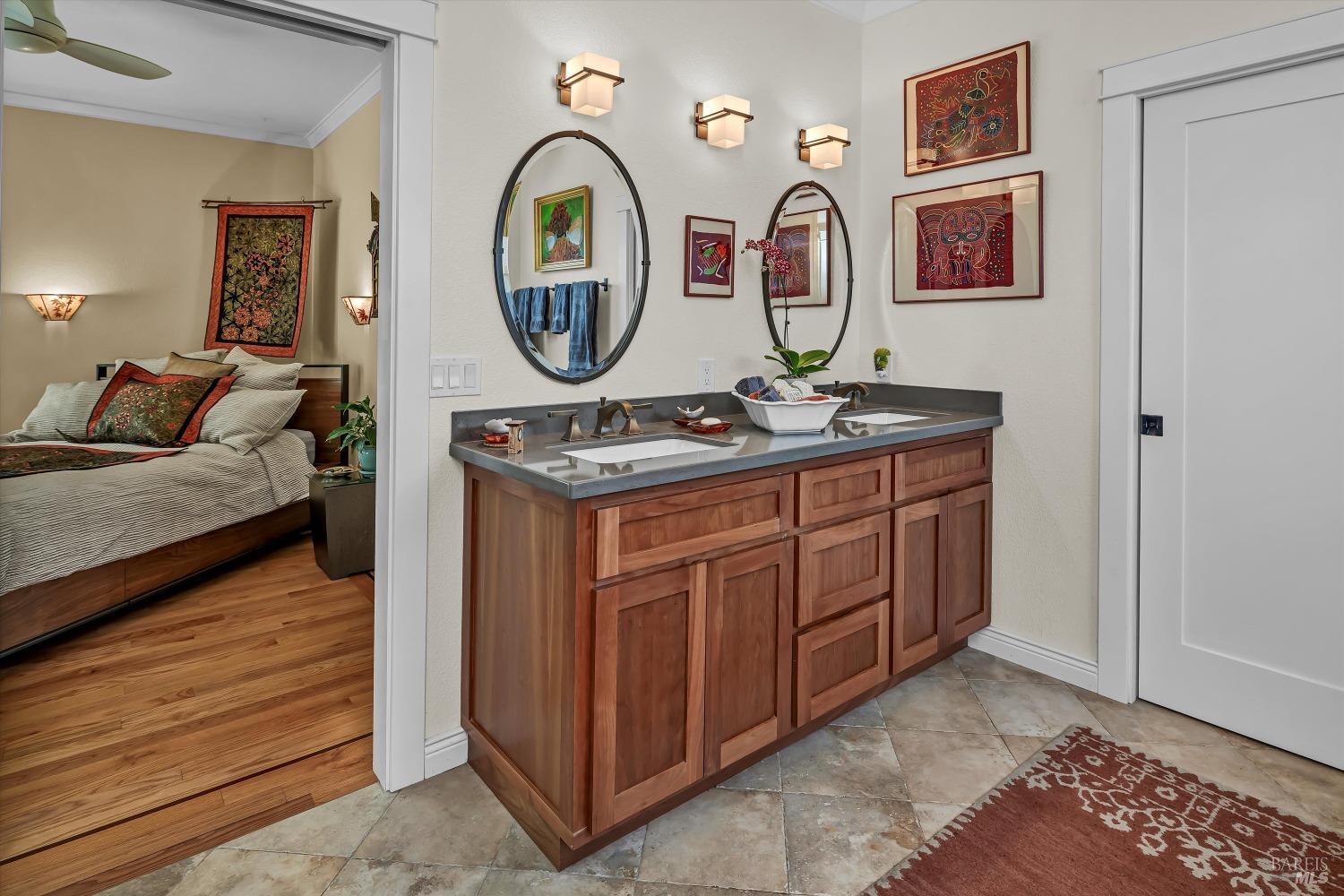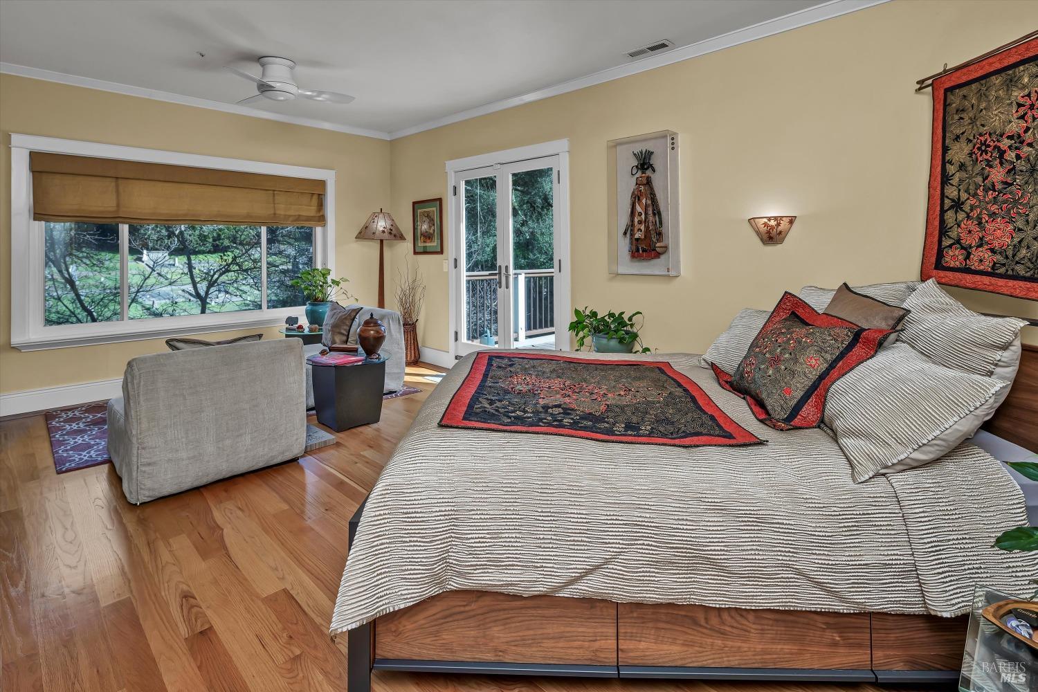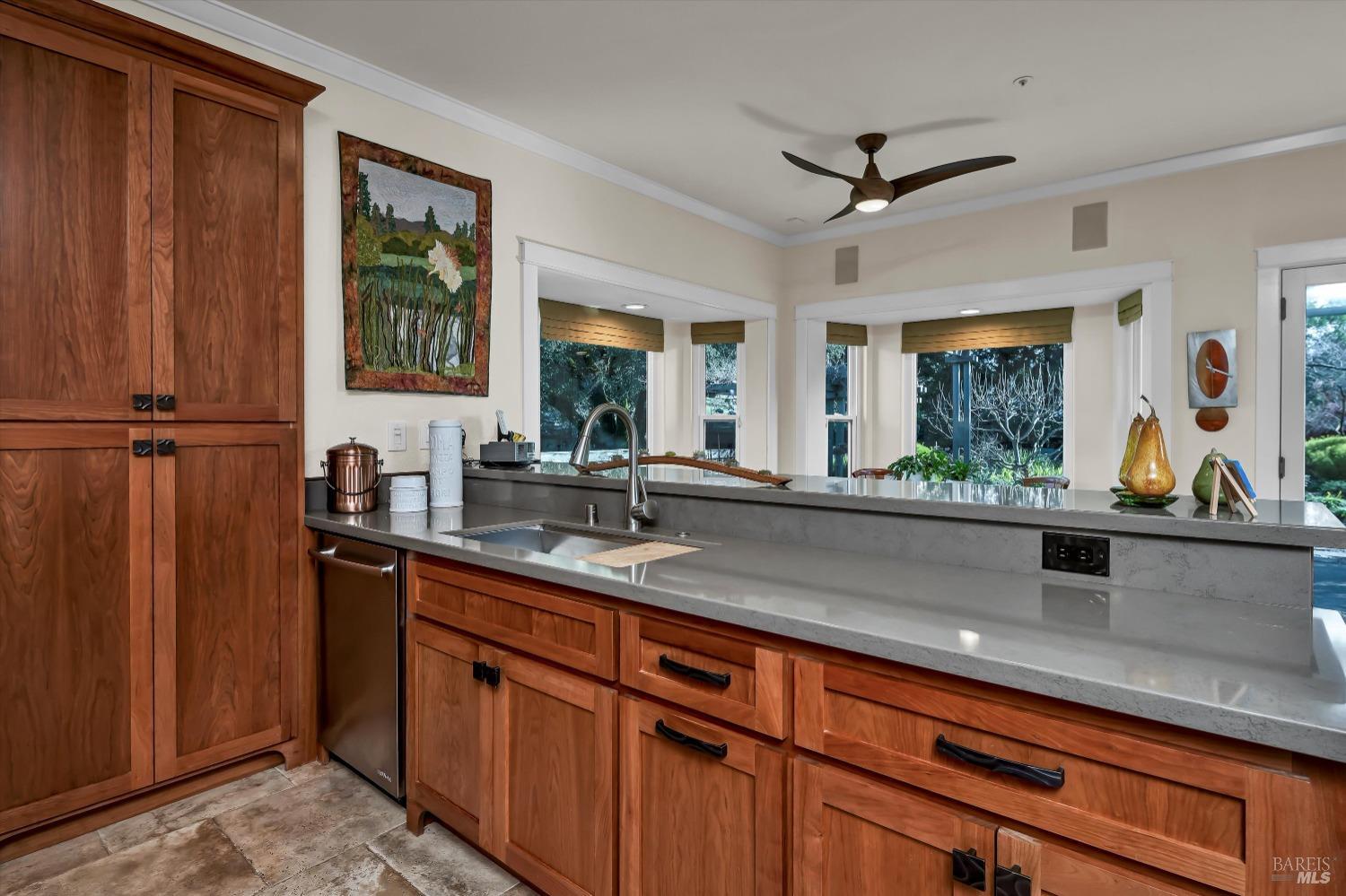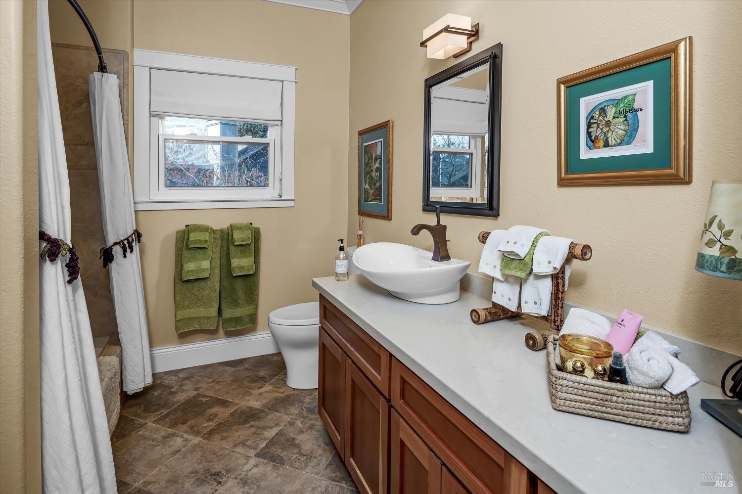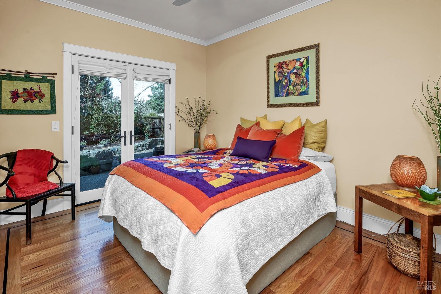 Welcome to Healdsburg Greens, 8 blocks from the Plaza. This exquisite home is nestled on a serene .48 acre in a quiet cul-de-sac, minutes from downtown. Meticulously crafted details include custom woodwork, elegant light fixtures, & breathtaking landscaping. The chef's kitchen features high-end Jenn-Air appliances, a buffet counter, & an oversized island w/ cherrywood cabinetry & Cambria countertops. Enjoy a temp-controlled wine cellar & seamless outdoor access through multiple French doors. Custom fixtures & cherrywood built-ins accentuate the gas fireplaces in the living and family rooms. A main-level ensuite offers direct access to the west yard. Upstairs, the primary suite includes a sitting area, rooftop balcony & gym space. The luxurious bath has dual sinks, a soaking tub, & walk-in closet. Two additional bedrooms enjoy southern light, complemented by a full bath & laundry room. The backyard is a paradise w/ tiered patios, pergolas & diverse landscaping. An in ground pool & spa are nestled among a zinfandel hobby vineyard, fruit trees, & redwoods. Additional features include a 3-car garage, new windows, solar panels, water storage tanks, & pedestrian gate access to public land. This property offers the perfect blend of proximity & privacy, epitomizing Wine Country living.