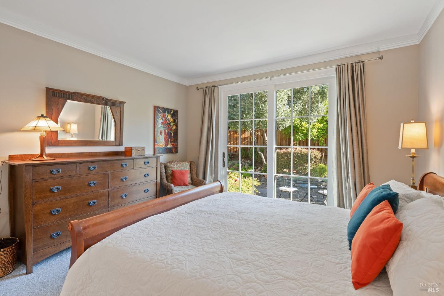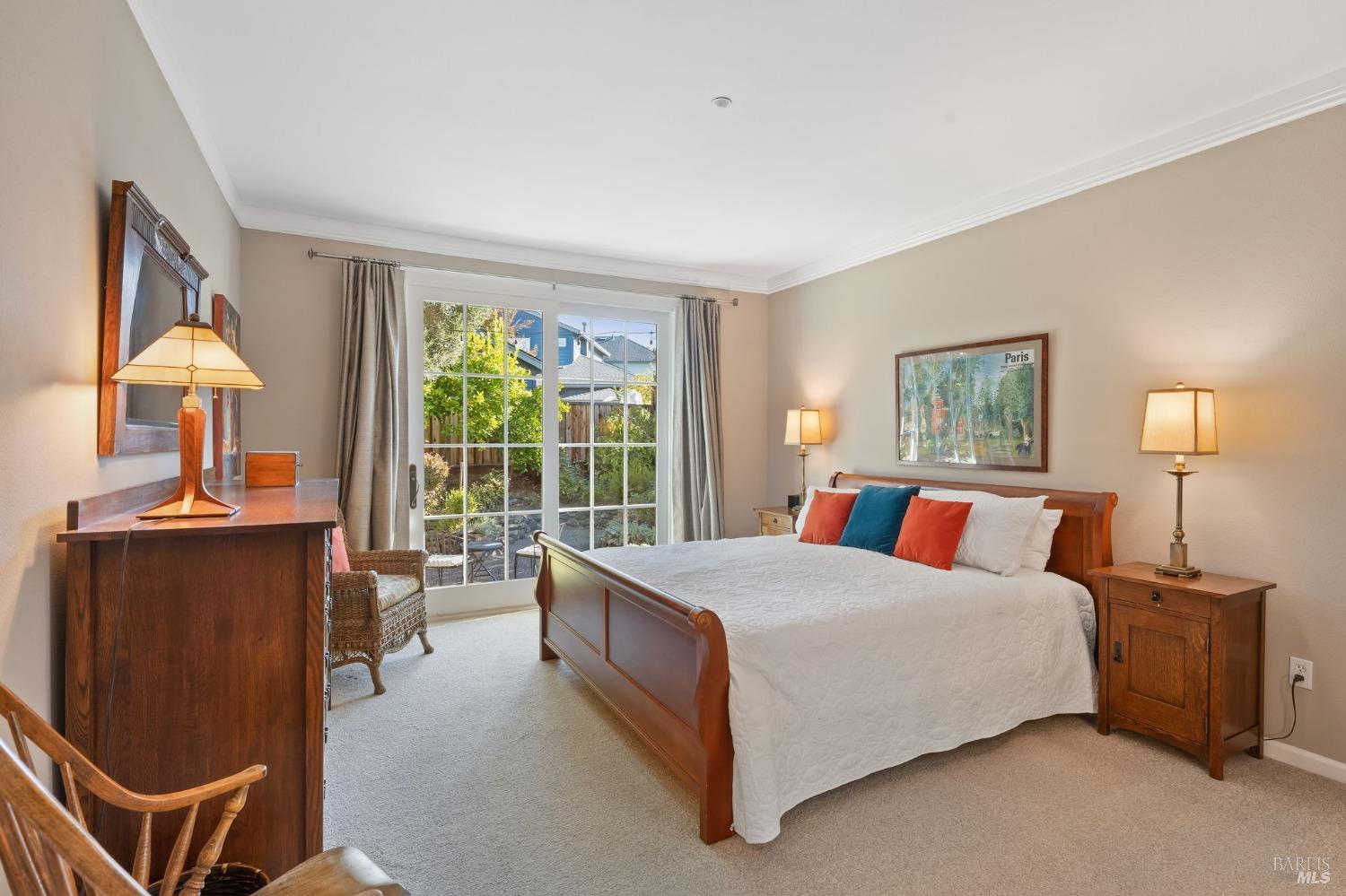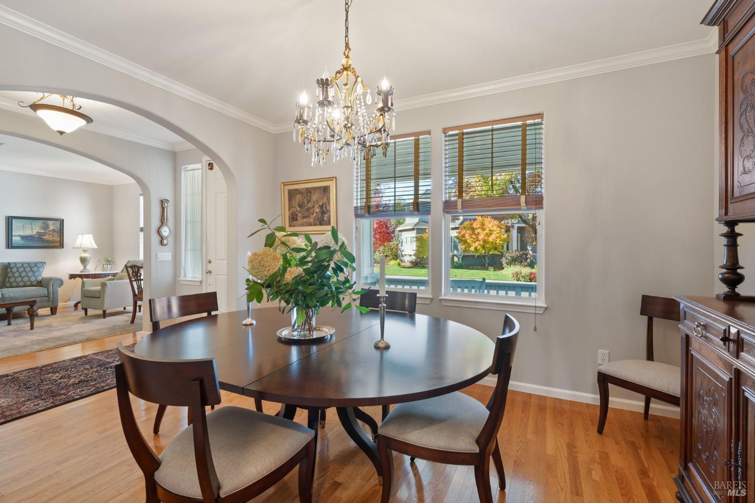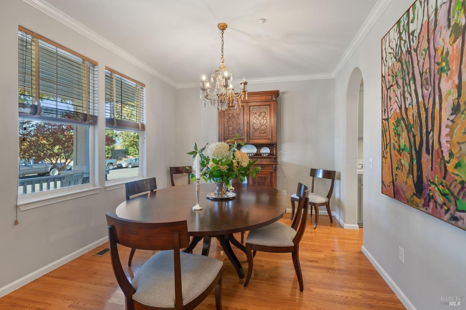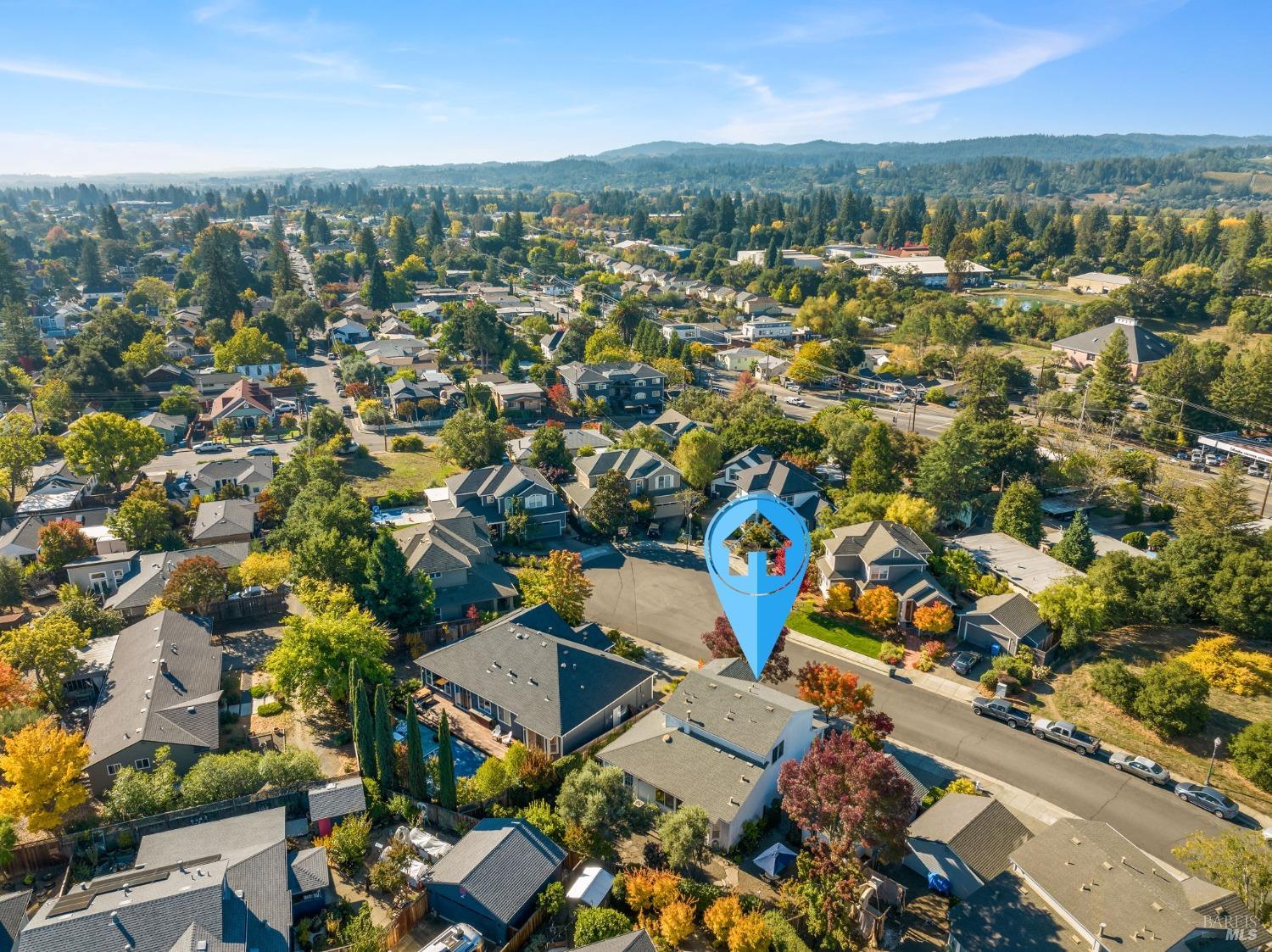 Charming 4-bedroom residence in the desirable Piedmont Terrace. Upon entering, you'll be welcomed by an open and inviting floor plan with hardwood flooring, and crown moulding. Entertain in the formal dining and living areas, or gather in the spacious kitchen, featuring an island, butler's pantry w/ sink, ample storage, and a delightful breakfast nook. Seamlessly connected to the kitchen is the den area, creating an inviting living space, enhanced by a cozy fireplace and access to the outdoors. The primary bedroom, located on the main floor, offers a retreat with access to the backyard. Pamper yourself in the spa-like bathroom, showcasing a sunken tub, walk-in shower, and a generously-sized walk-in closet. Upstairs are three additional bedrooms, including an en-suite, and a well-appointed full bath. One of the bedrooms is well-suited to serve as an ideal home office. The thoughtful design extends to the professionally landscaped grounds, featuring drought-tolerant plants, uplighting, and space for a potential pool. Situated on the rear side of the detached two-car garage, there is a covered space serving as a perfect potting shed. This property's prime location provides access to all the amenities that Healdsburg has to offer.