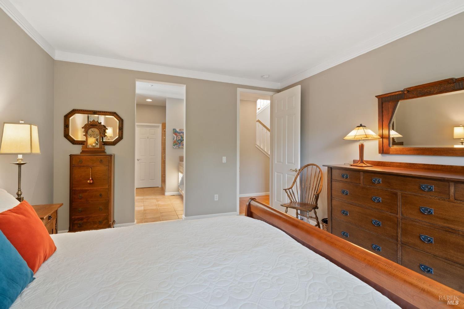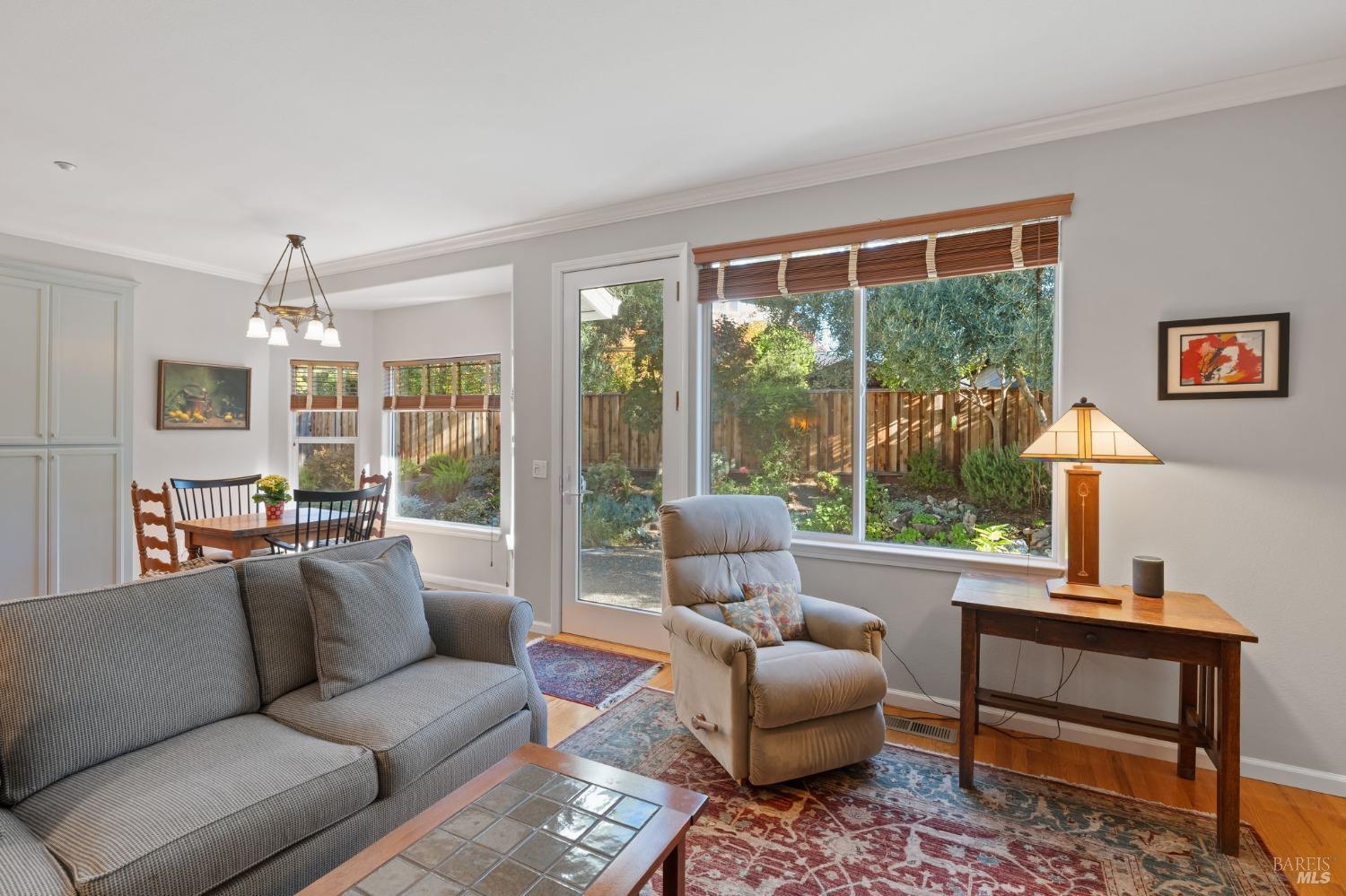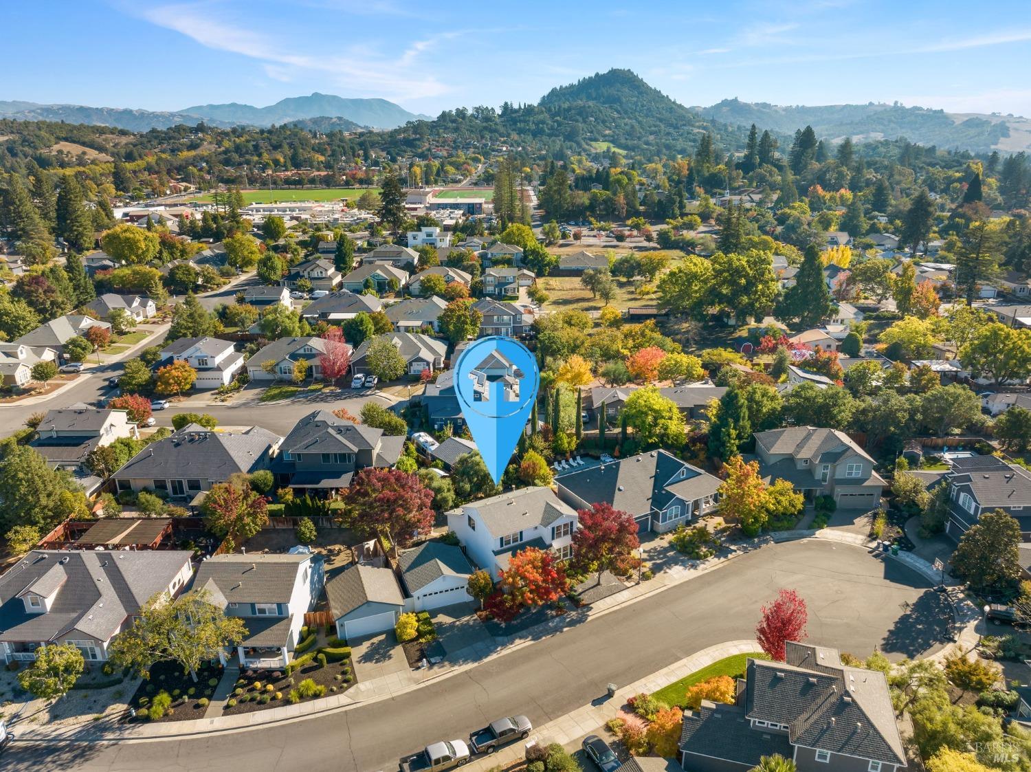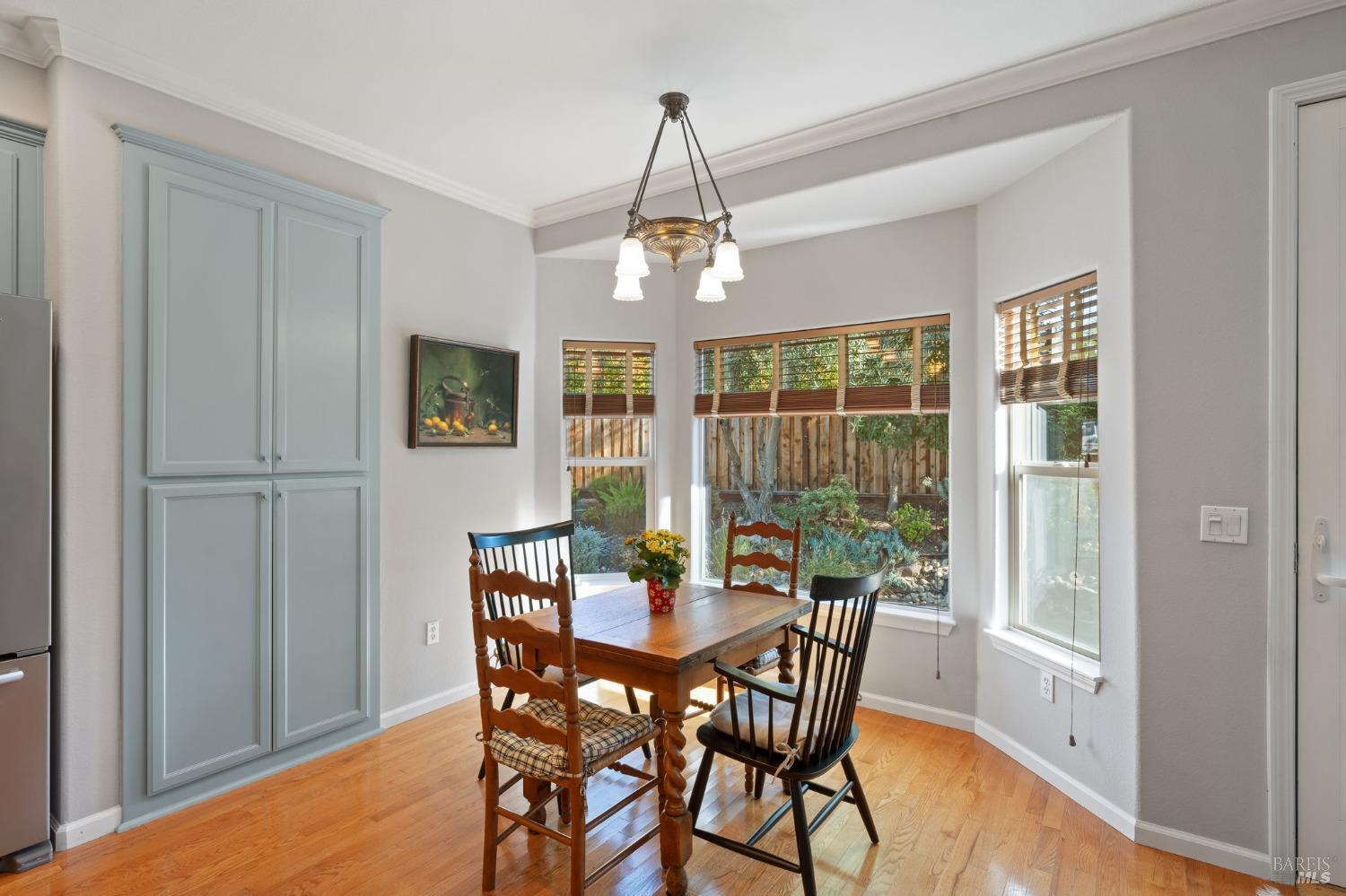 Charming 4-bedroom residence in the desirable Piedmont Terrace. Upon entering, you'll be welcomed by an open and inviting floor plan with hardwood flooring, and crown moulding. Entertain in the formal dining and living areas, or gather in the spacious kitchen, featuring an island, butler's pantry w/ sink, ample storage, and a delightful breakfast nook. Seamlessly connected to the kitchen is the den area, creating an inviting living space, enhanced by a cozy fireplace and access to the outdoors. The primary bedroom, located on the main floor, offers a retreat with access to the backyard. Pamper yourself in the spa-like bathroom, showcasing a sunken tub, walk-in shower, and a generously-sized walk-in closet. Upstairs are three additional bedrooms, including an en-suite, and a well-appointed full bath. One of the bedrooms is well-suited to serve as an ideal home office. The thoughtful design extends to the professionally landscaped grounds, featuring drought-tolerant plants, uplighting, and space for a potential pool. Situated on the rear side of the detached two-car garage, there is a covered space serving as a perfect potting shed. This property's prime location provides access to all the amenities that Healdsburg has to offer.