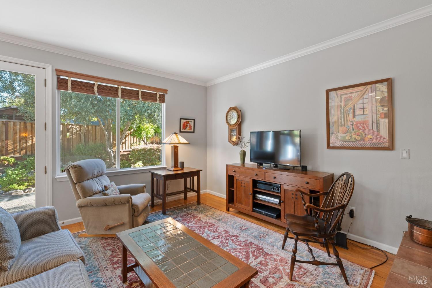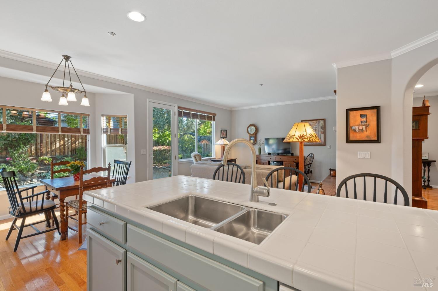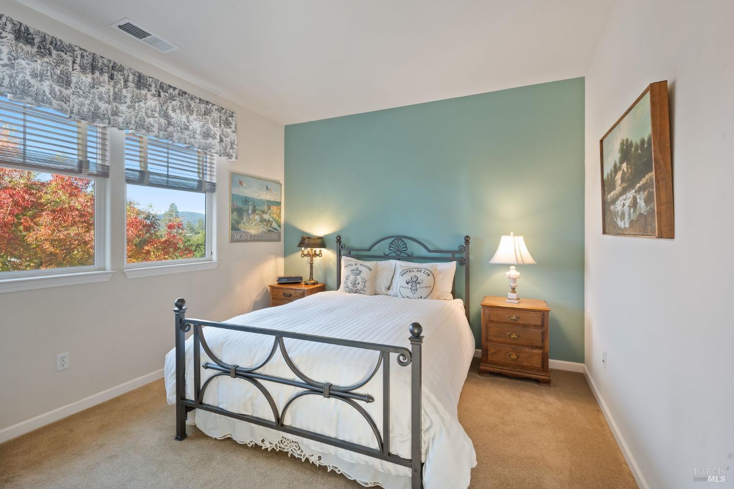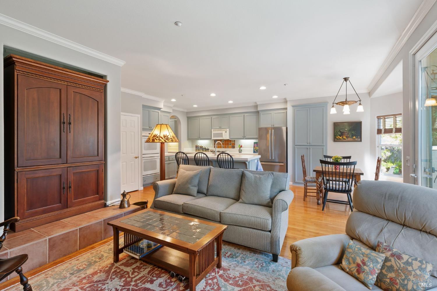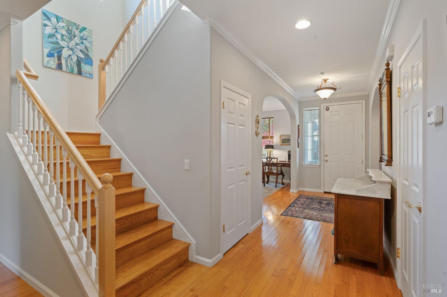 Charming 4-bedroom residence in the desirable Piedmont Terrace. Upon entering, you'll be welcomed by an open and inviting floor plan with hardwood flooring, and crown moulding. Entertain in the formal dining and living areas, or gather in the spacious kitchen, featuring an island, butler's pantry w/ sink, ample storage, and a delightful breakfast nook. Seamlessly connected to the kitchen is the den area, creating an inviting living space, enhanced by a cozy fireplace and access to the outdoors. The primary bedroom, located on the main floor, offers a retreat with access to the backyard. Pamper yourself in the spa-like bathroom, showcasing a sunken tub, walk-in shower, and a generously-sized walk-in closet. Upstairs are three additional bedrooms, including an en-suite, and a well-appointed full bath. One of the bedrooms is well-suited to serve as an ideal home office. The thoughtful design extends to the professionally landscaped grounds, featuring drought-tolerant plants, uplighting, and space for a potential pool. Situated on the rear side of the detached two-car garage, there is a covered space serving as a perfect potting shed. This property's prime location provides access to all the amenities that Healdsburg has to offer.