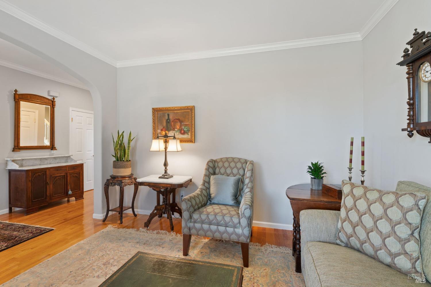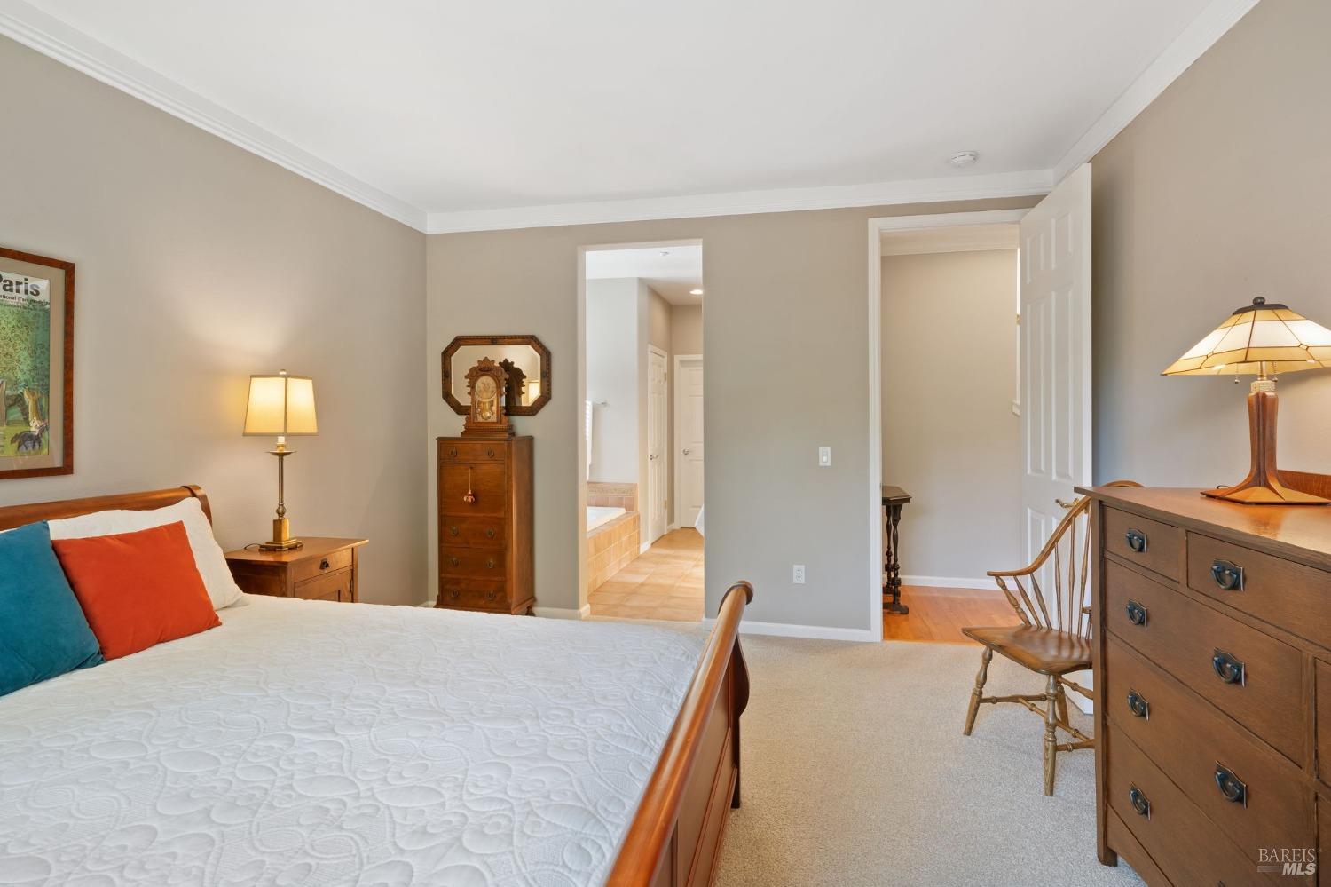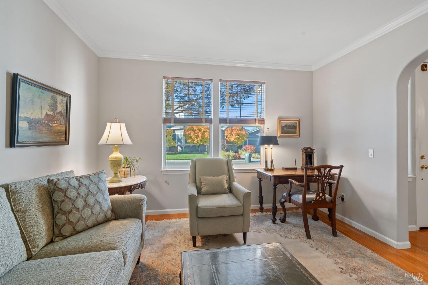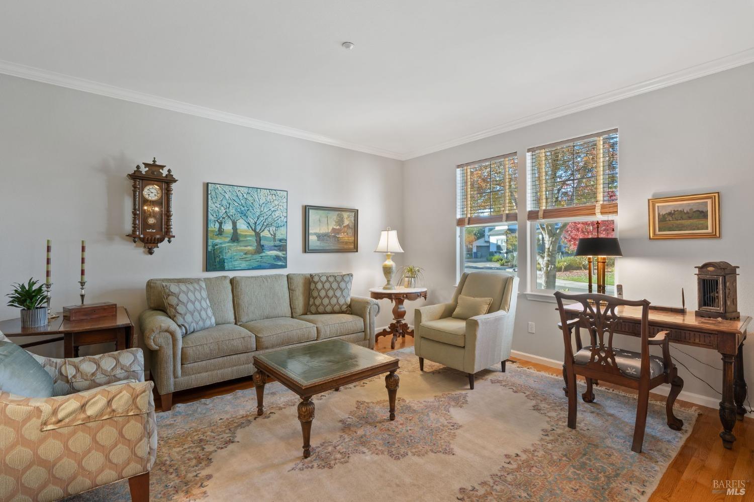 Charming 4-bedroom residence in the desirable Piedmont Terrace. Upon entering, you'll be welcomed by an open and inviting floor plan with hardwood flooring, and crown moulding. Entertain in the formal dining and living areas, or gather in the spacious kitchen, featuring an island, butler's pantry w/ sink, ample storage, and a delightful breakfast nook. Seamlessly connected to the kitchen is the den area, creating an inviting living space, enhanced by a cozy fireplace and access to the outdoors. The primary bedroom, located on the main floor, offers a retreat with access to the backyard. Pamper yourself in the spa-like bathroom, showcasing a sunken tub, walk-in shower, and a generously-sized walk-in closet. Upstairs are three additional bedrooms, including an en-suite, and a well-appointed full bath. One of the bedrooms is well-suited to serve as an ideal home office. The thoughtful design extends to the professionally landscaped grounds, featuring drought-tolerant plants, uplighting, and space for a potential pool. Situated on the rear side of the detached two-car garage, there is a covered space serving as a perfect potting shed. This property's prime location provides access to all the amenities that Healdsburg has to offer.