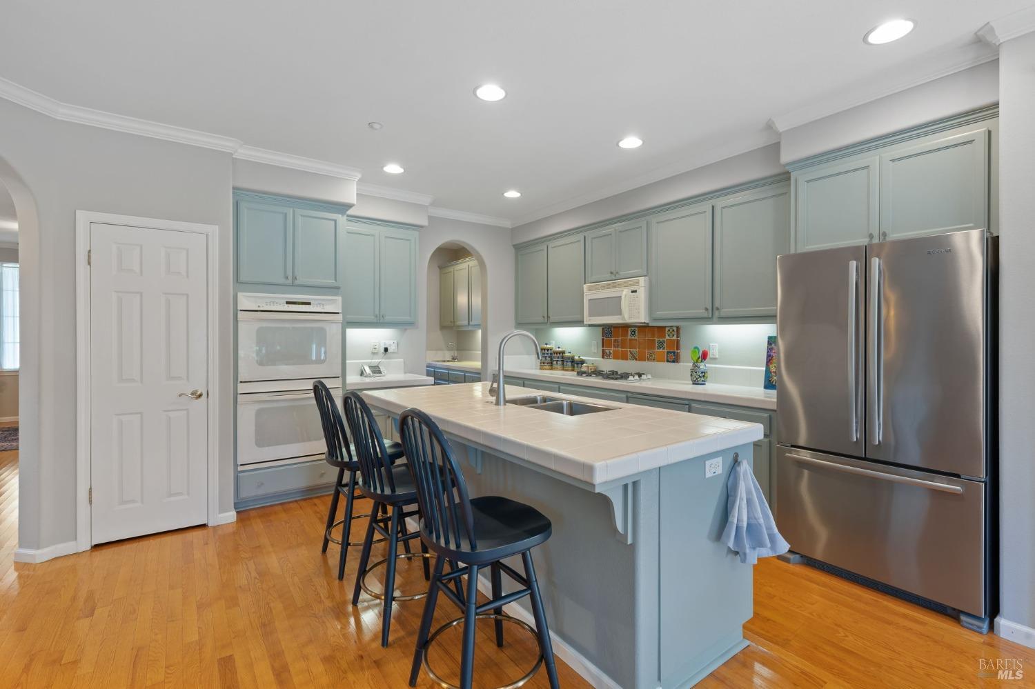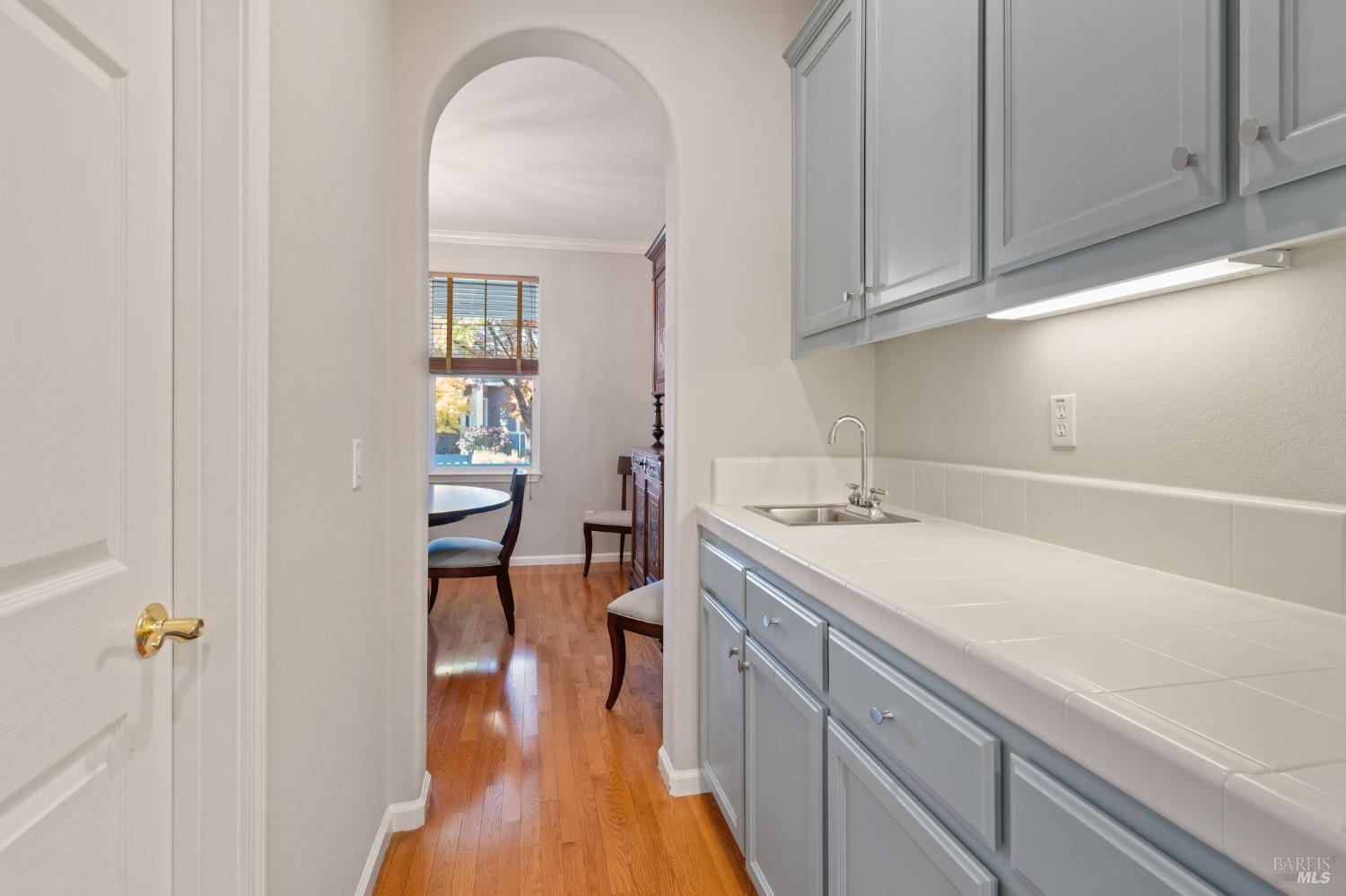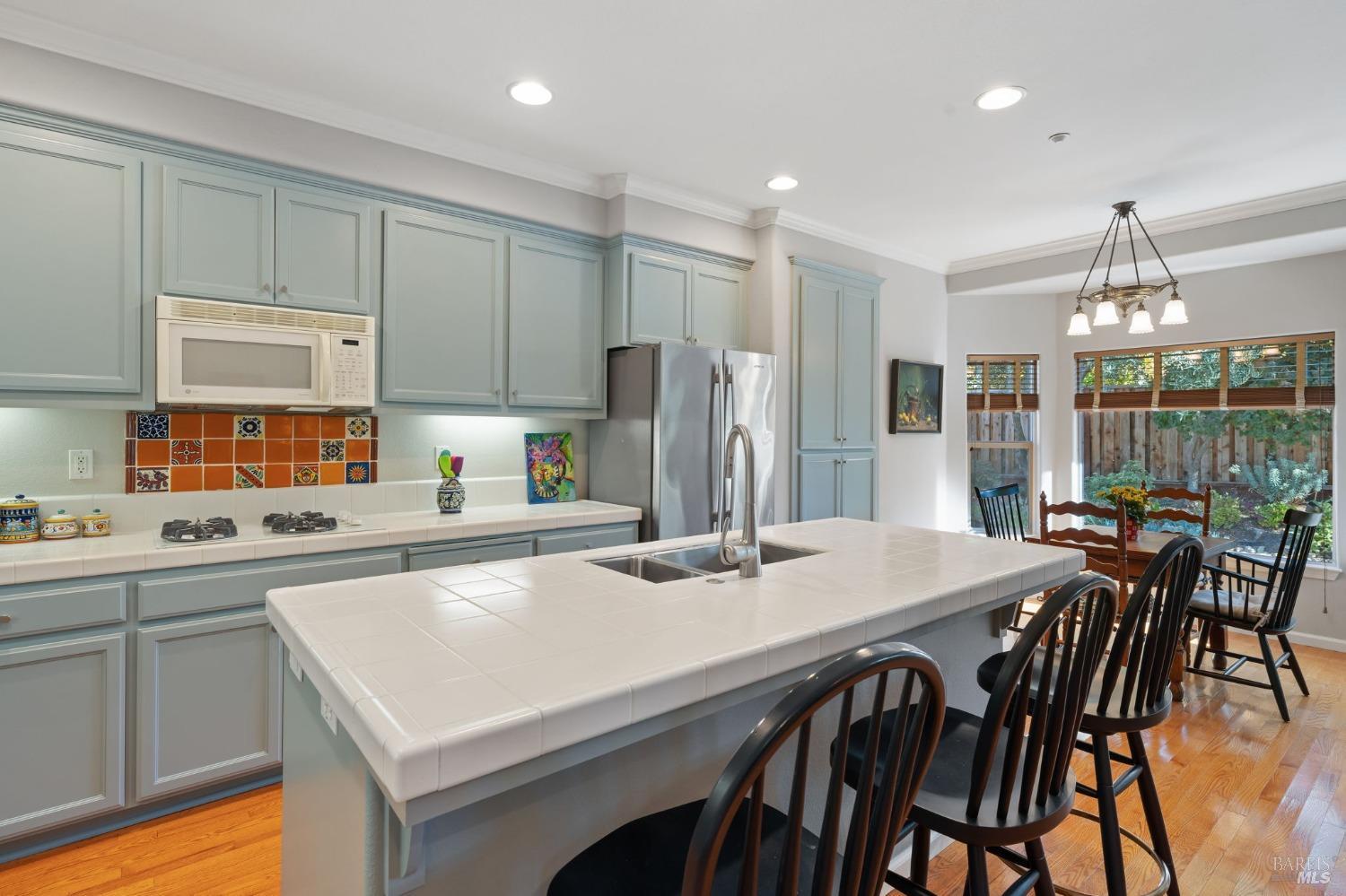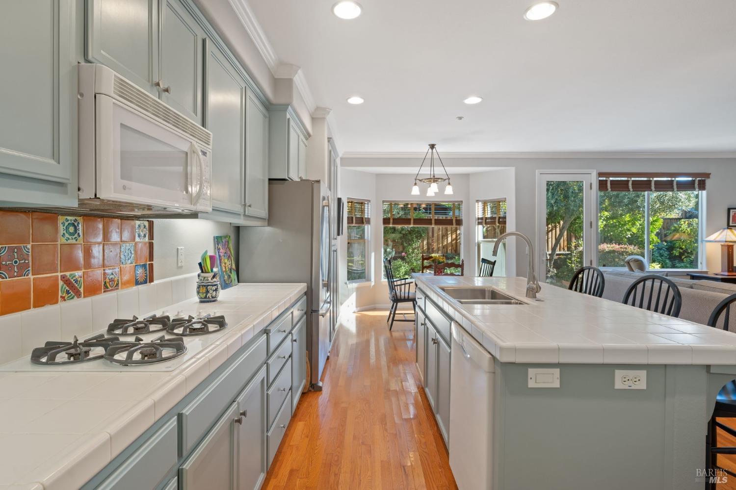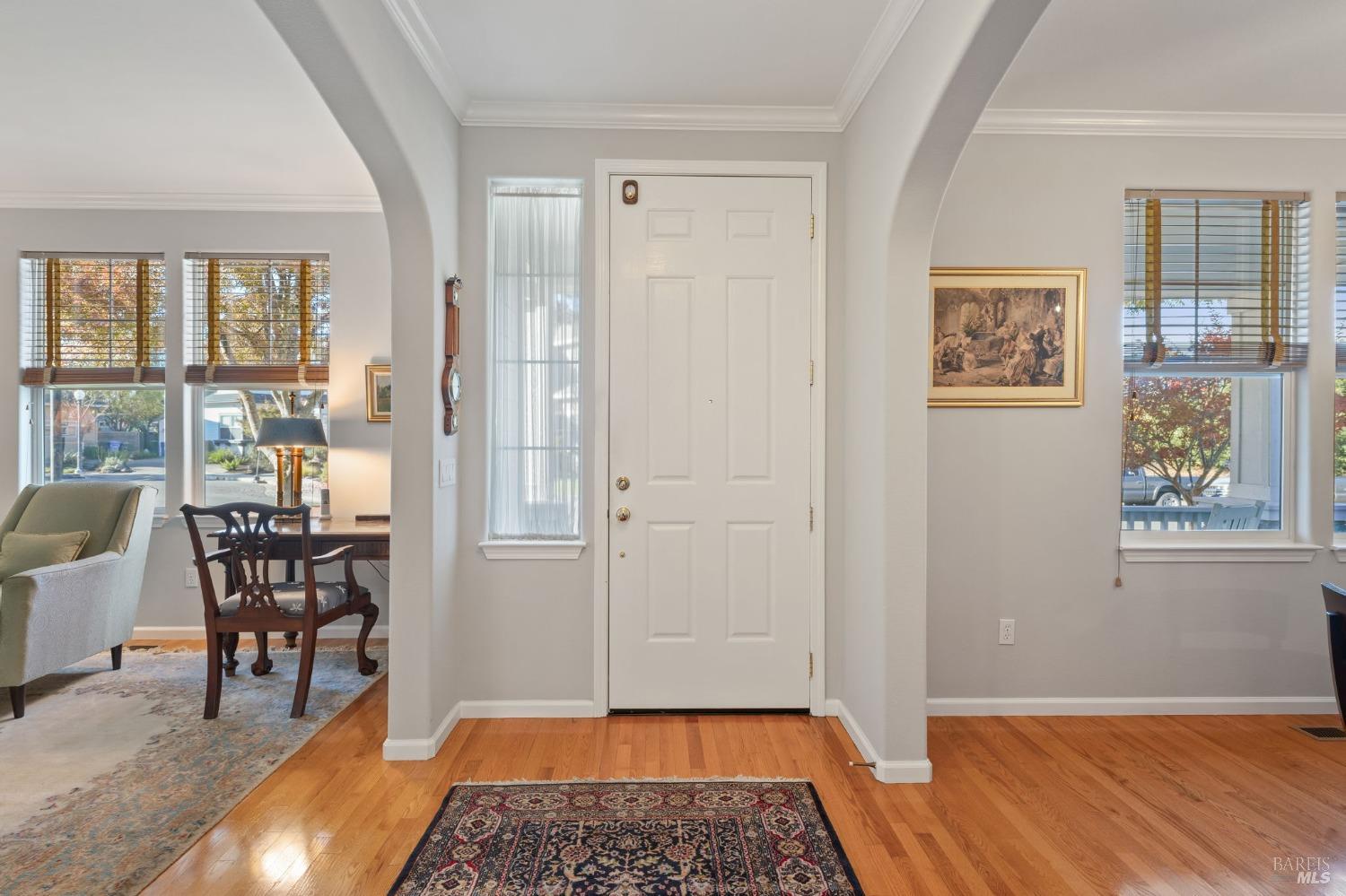 Charming 4-bedroom residence in the desirable Piedmont Terrace. Upon entering, you'll be welcomed by an open and inviting floor plan with hardwood flooring, and crown moulding. Entertain in the formal dining and living areas, or gather in the spacious kitchen, featuring an island, butler's pantry w/ sink, ample storage, and a delightful breakfast nook. Seamlessly connected to the kitchen is the den area, creating an inviting living space, enhanced by a cozy fireplace and access to the outdoors. The primary bedroom, located on the main floor, offers a retreat with access to the backyard. Pamper yourself in the spa-like bathroom, showcasing a sunken tub, walk-in shower, and a generously-sized walk-in closet. Upstairs are three additional bedrooms, including an en-suite, and a well-appointed full bath. One of the bedrooms is well-suited to serve as an ideal home office. The thoughtful design extends to the professionally landscaped grounds, featuring drought-tolerant plants, uplighting, and space for a potential pool. Situated on the rear side of the detached two-car garage, there is a covered space serving as a perfect potting shed. This property's prime location provides access to all the amenities that Healdsburg has to offer.